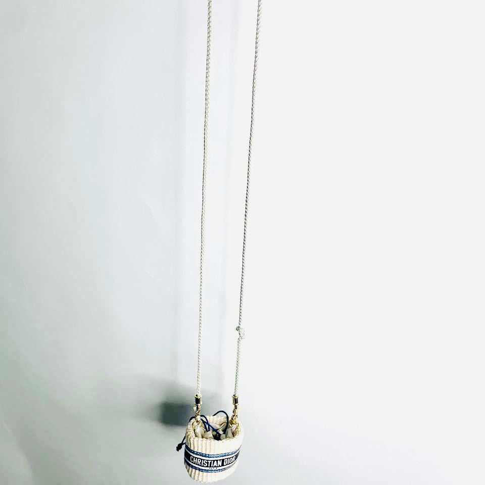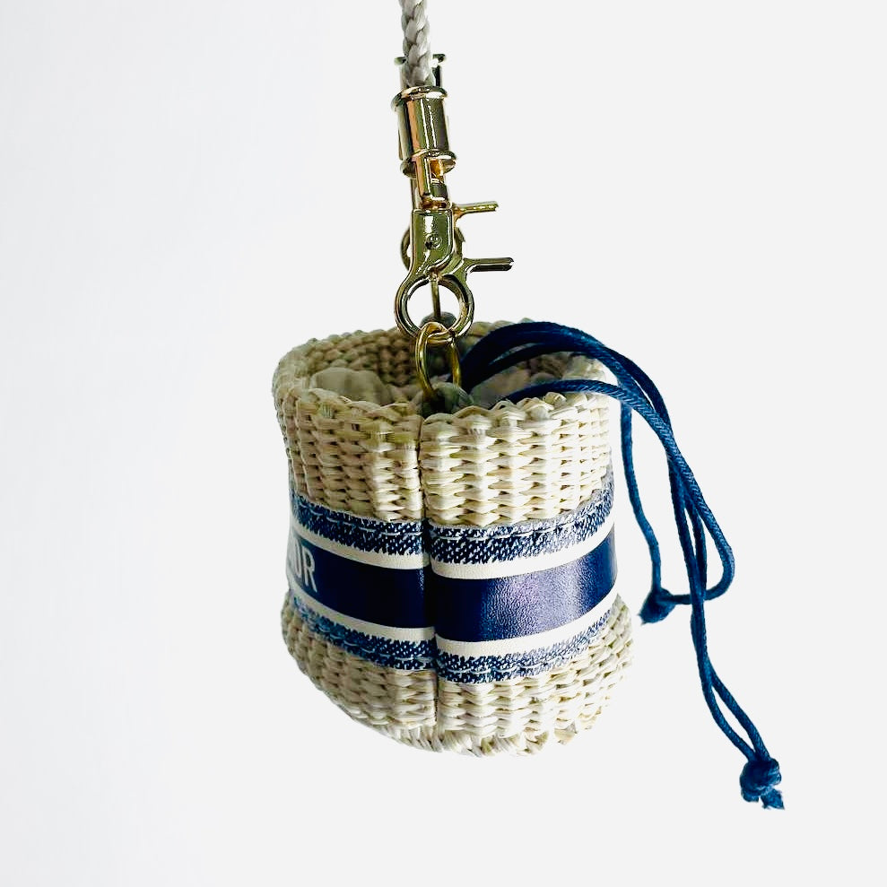Christian Dior CD Beauty Navy Blue GHW 2-Way Monogram Logo Mini Straw Raffia Basket Drawstring Shoulder Sling Bag