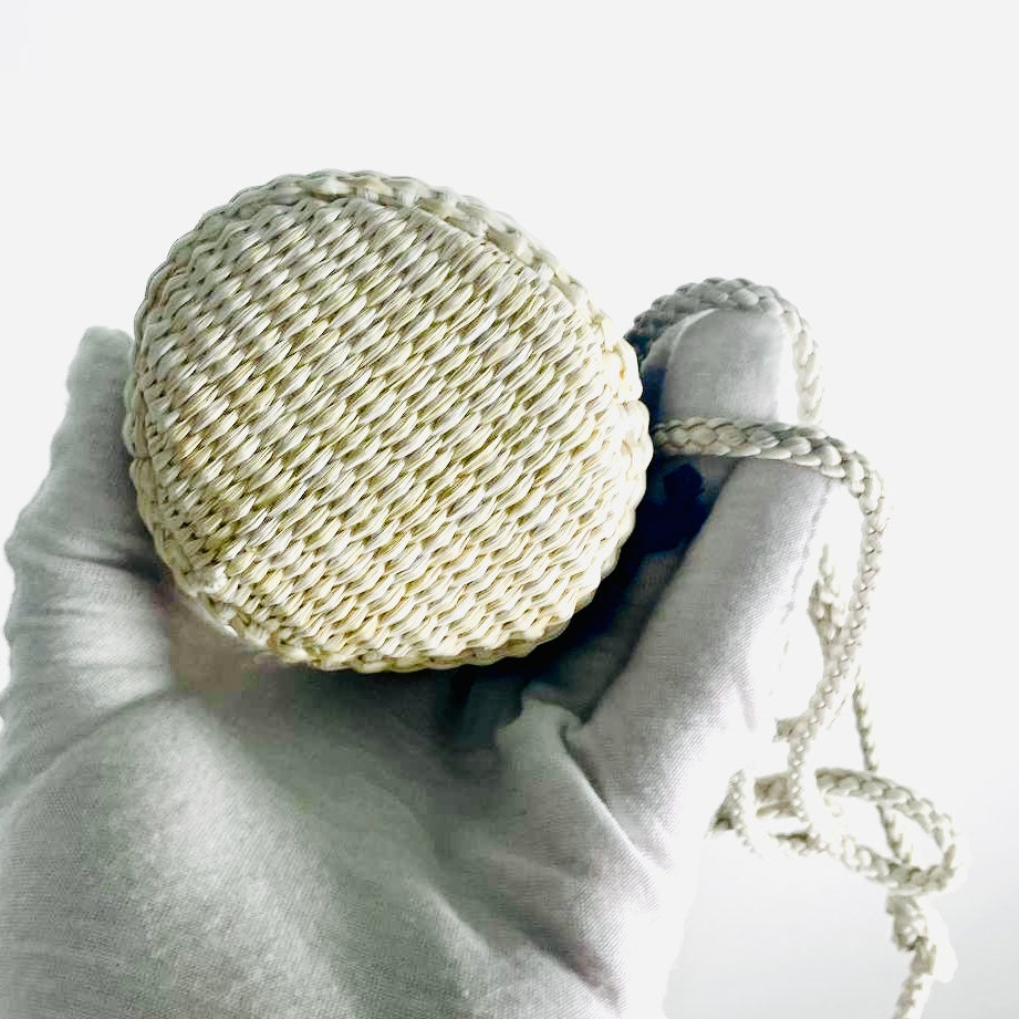 New, kept unused. This has a detachable strap, drawstring closure and central compartment. This measures 7x7x7cm.