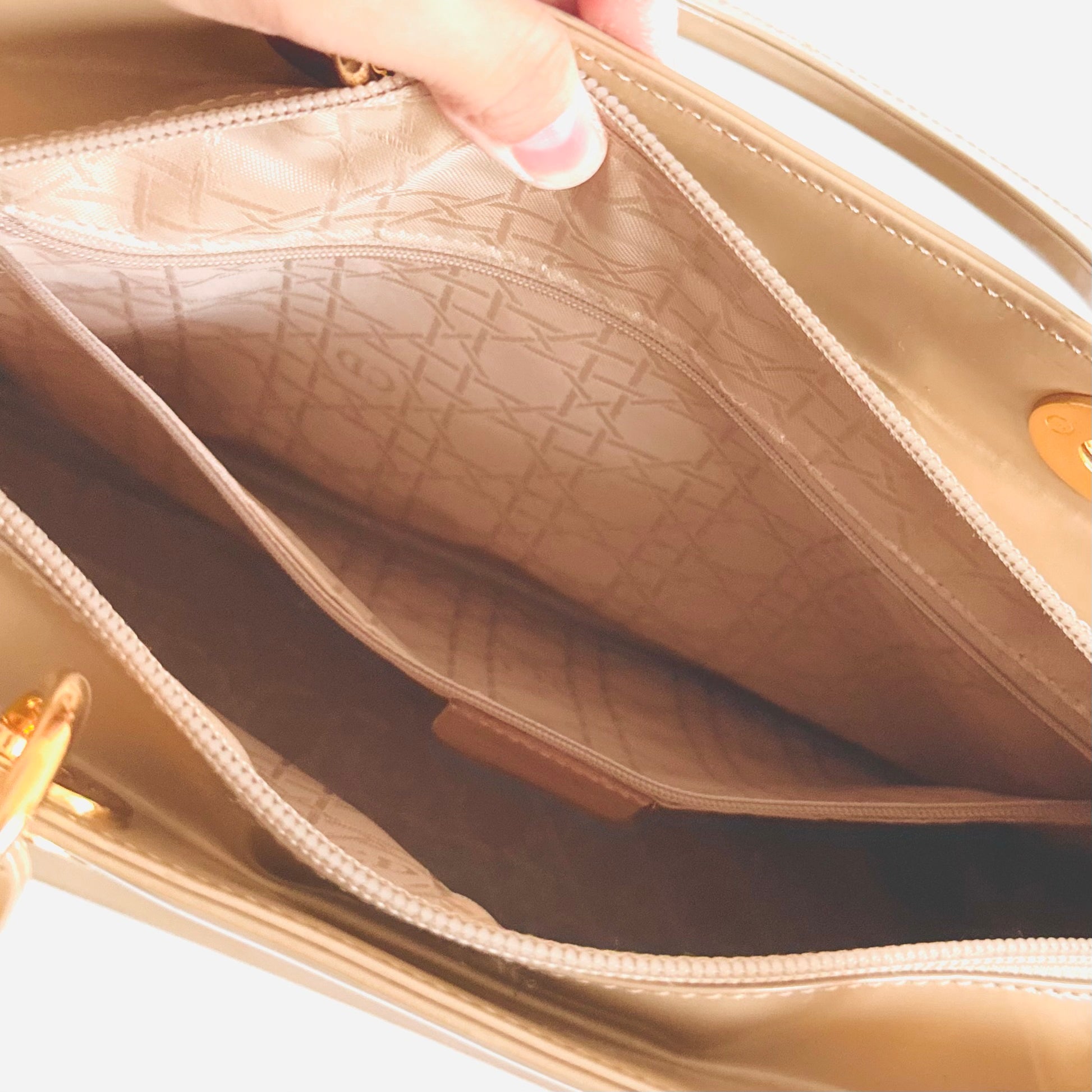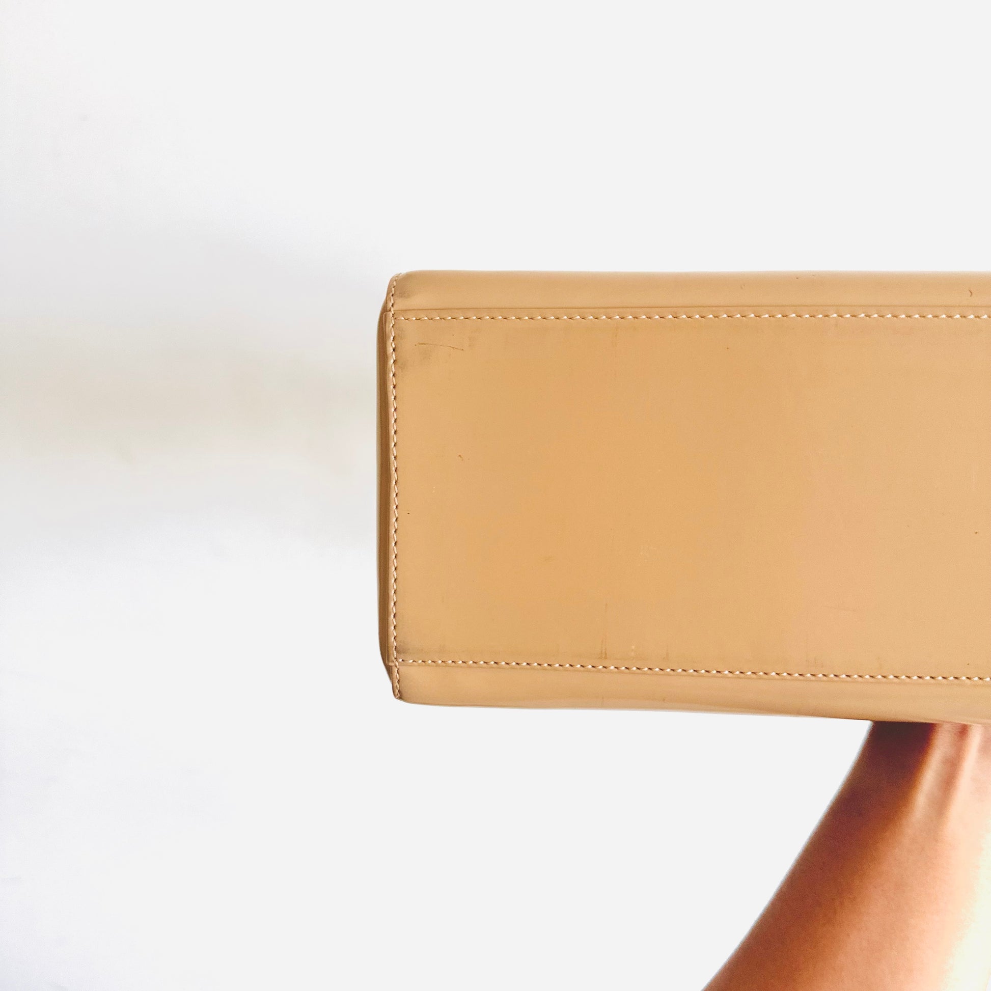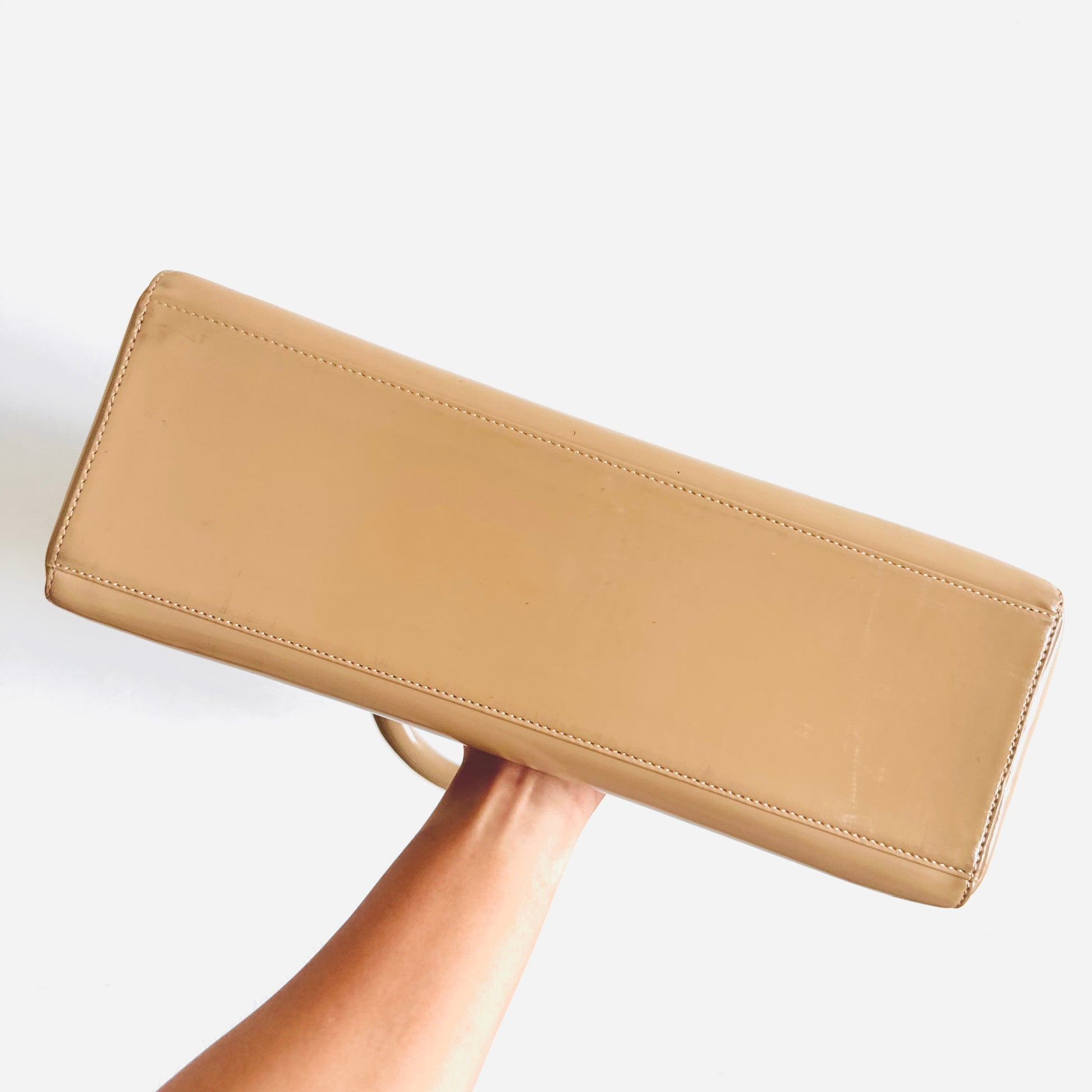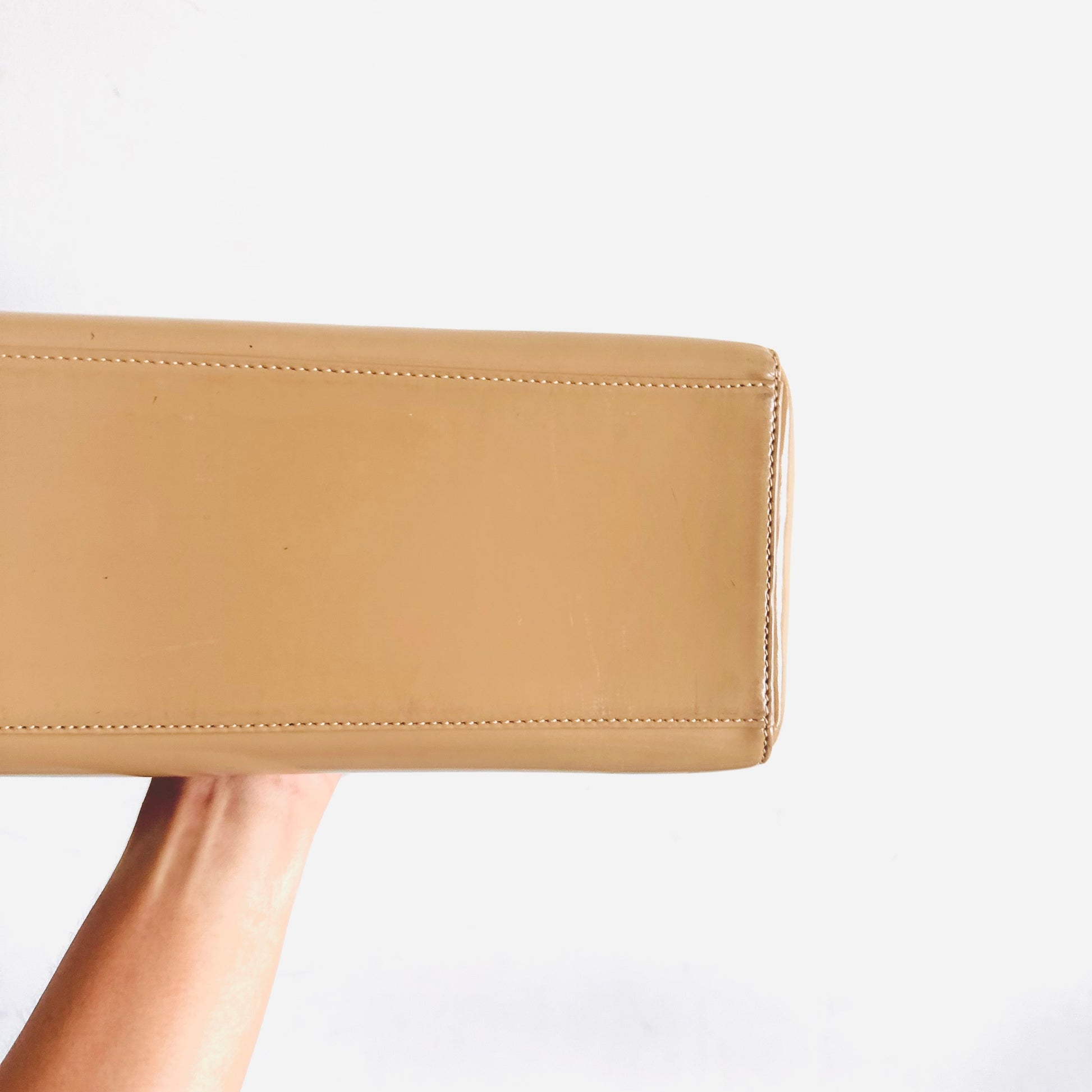 Christian Dior CD Beige GHW Large Lady Dior Patent Leather Shoulder Sling Top Handle Vintage Bag