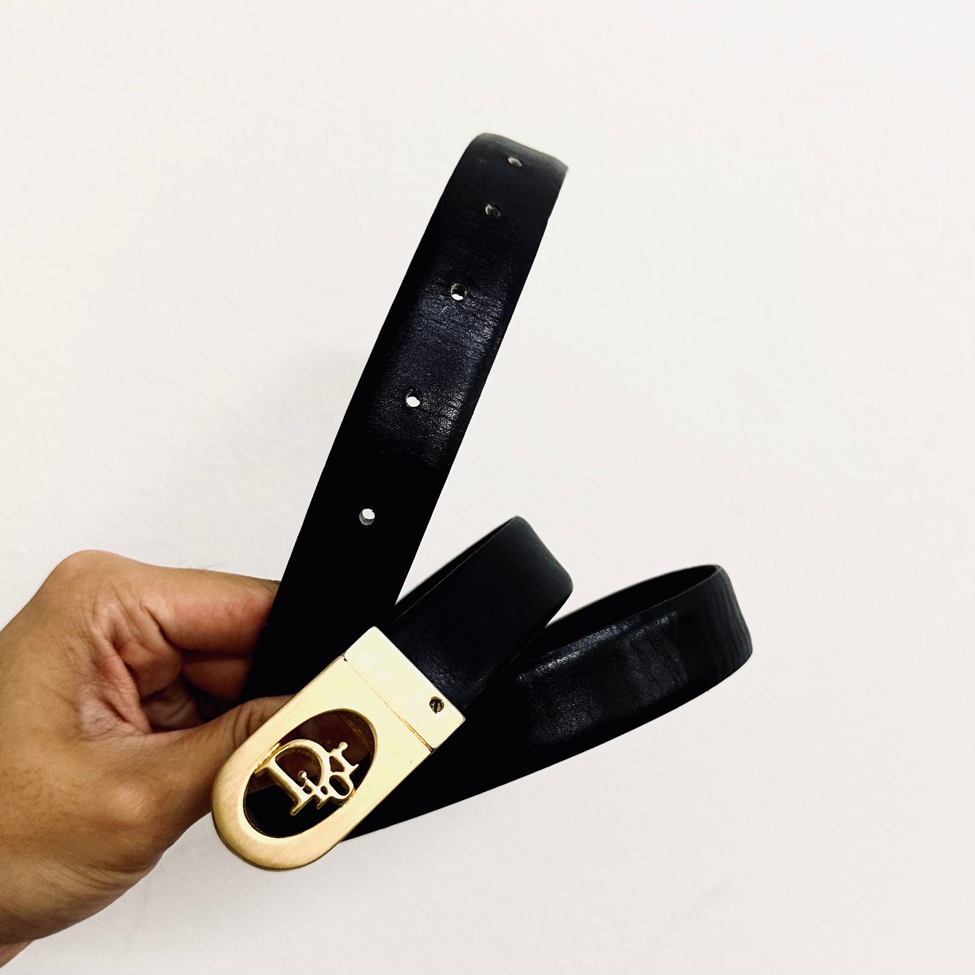 Christian Dior CD Black GHW Giant Buckle Logo Smooth Leather Iconic Belt