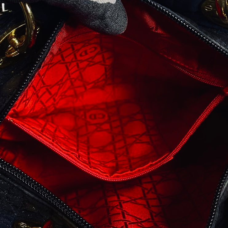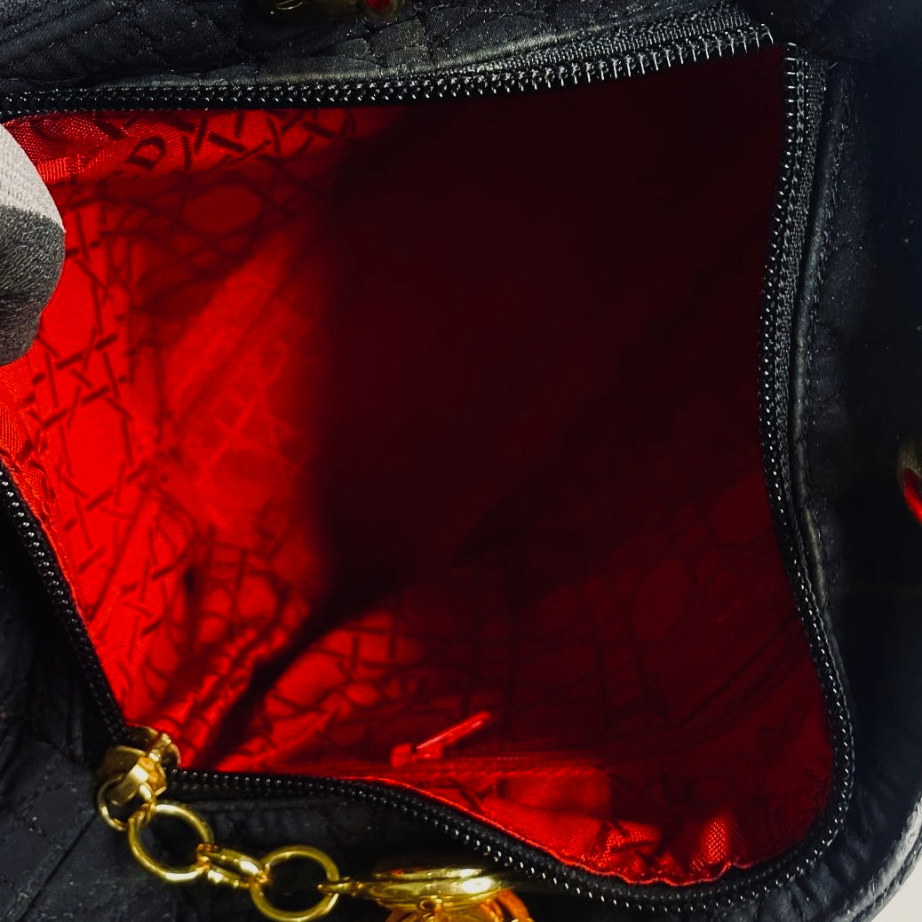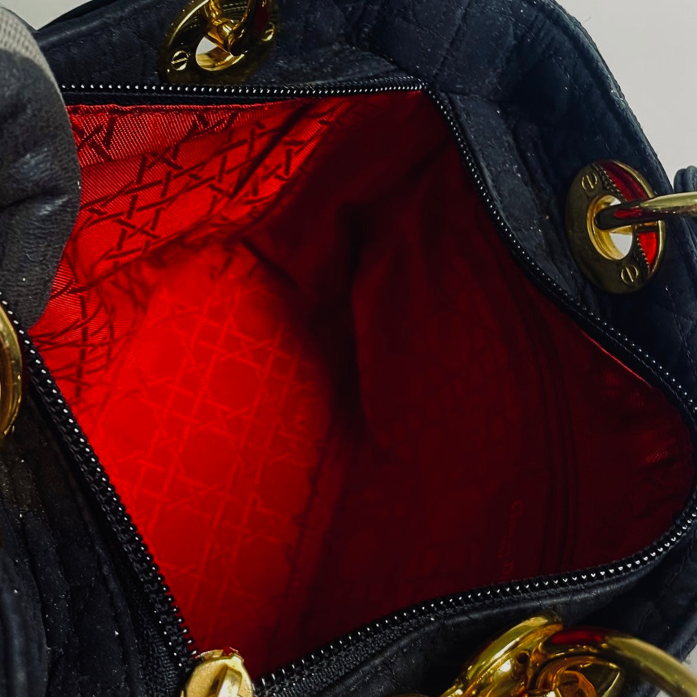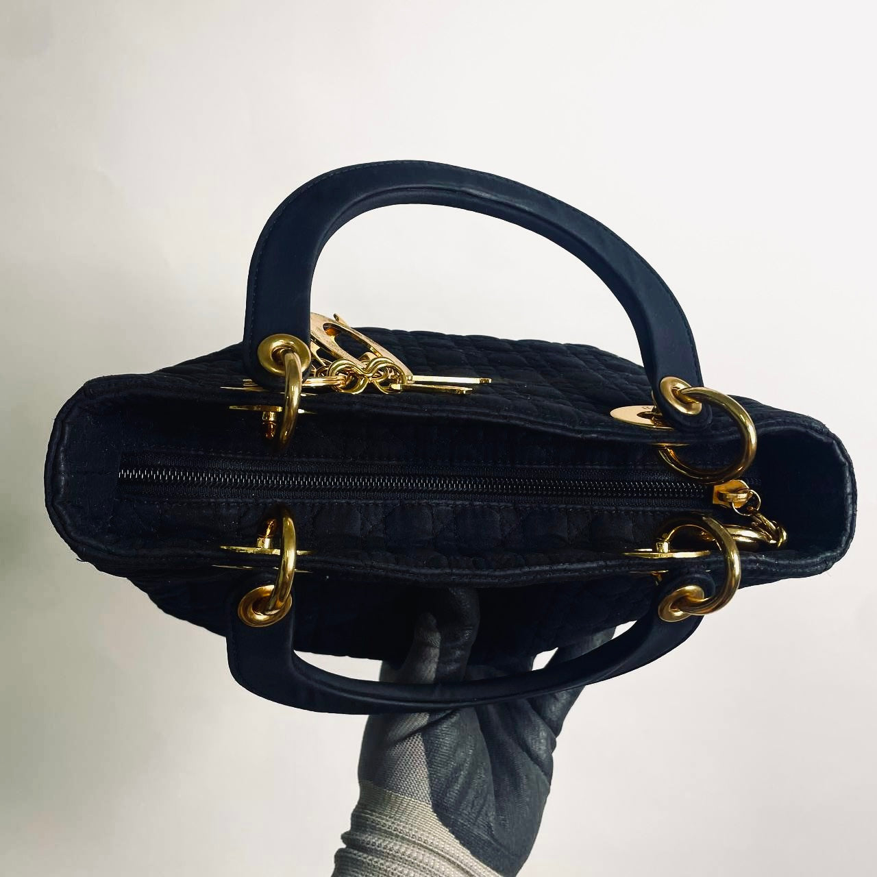 Christian Dior CD Black GHW Lady Dior Medium Cannage Quilted Nylon Top Handle Bag