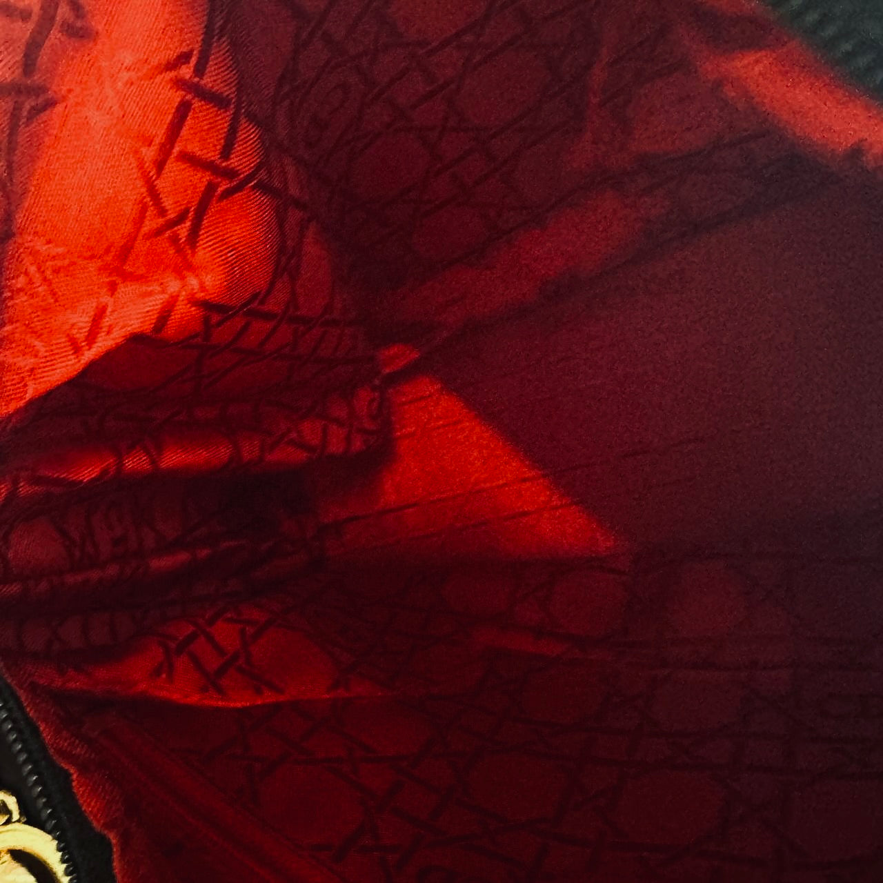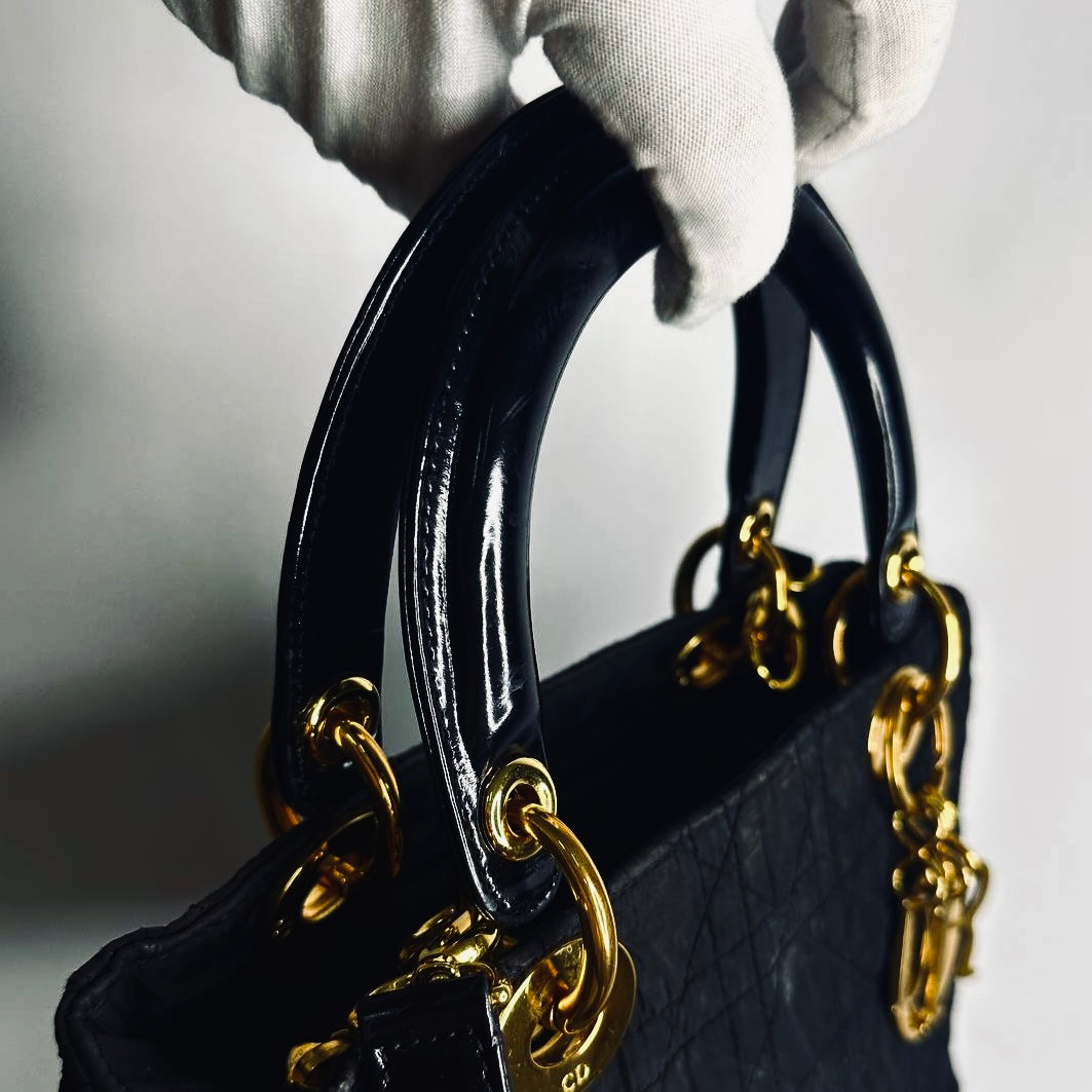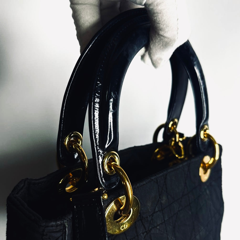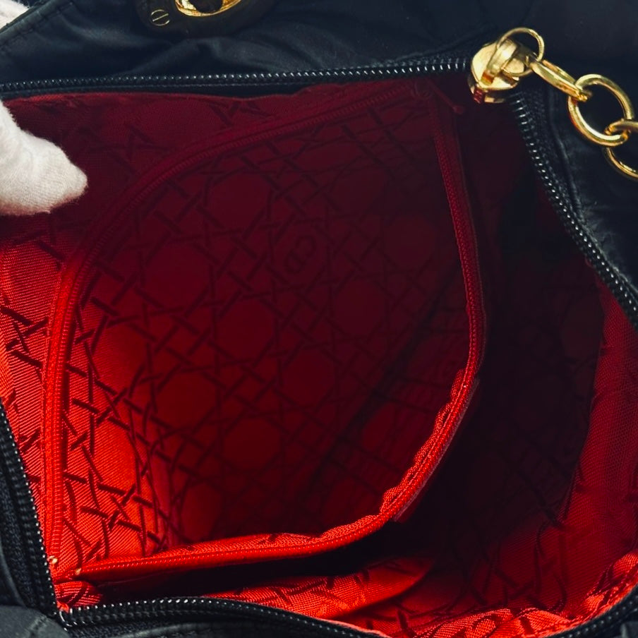 Christian Dior CD Black GHW Medium Lady Dior Cannage Quilted Nylon Monogram Logo 2-Way Top Handle Shoulder Sling Bag