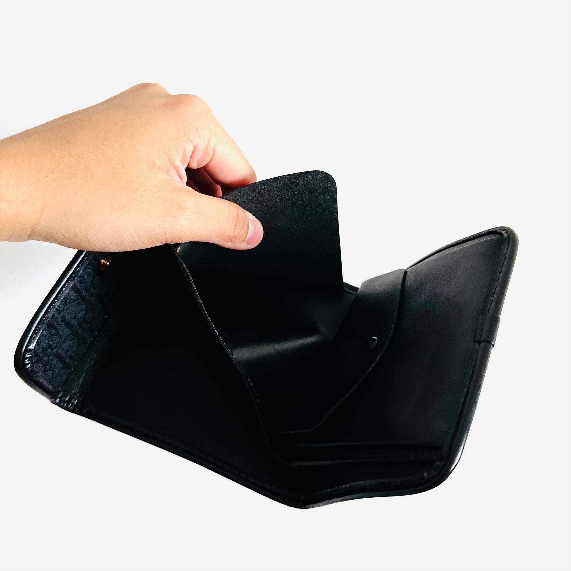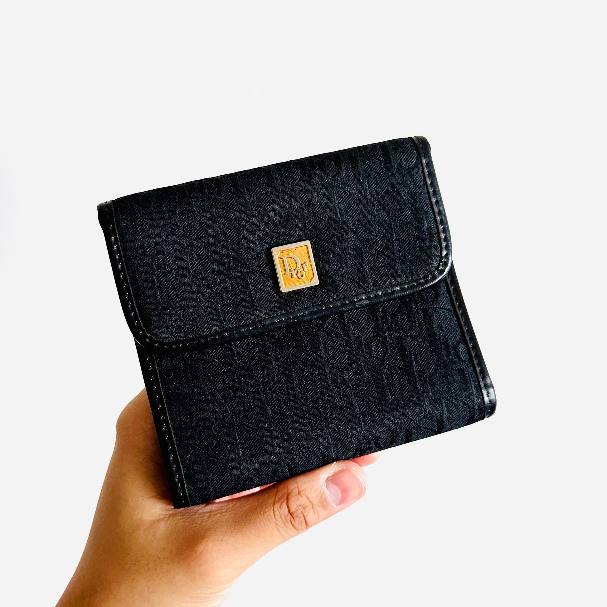 Christian Dior CD Black GHW Oblique Monogram Logo Flap Vintage Trifold Compact Wallet