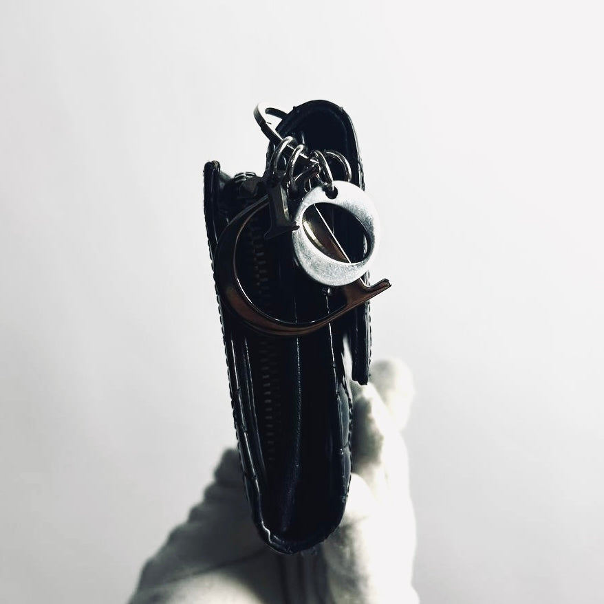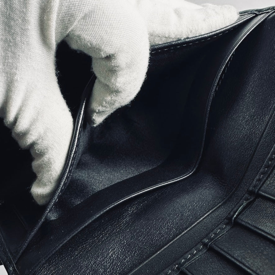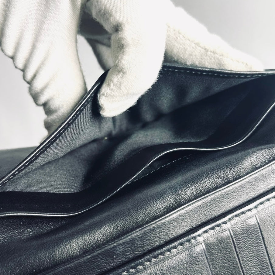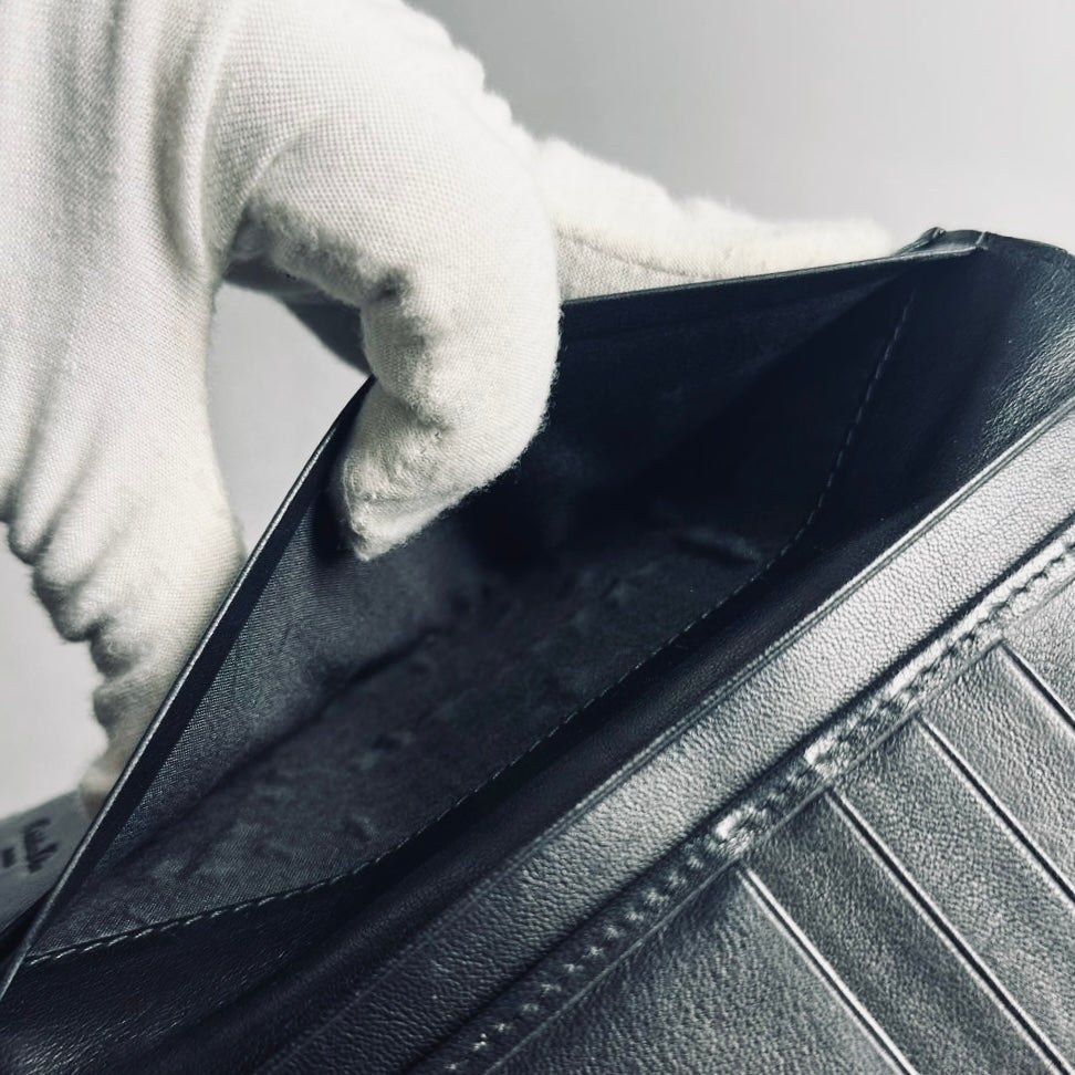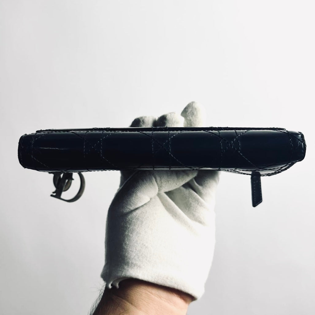 Christian Dior CD Black Lady Dior Cannage Quilted Patent Logo Monogram Flap Long Trifold Wallet