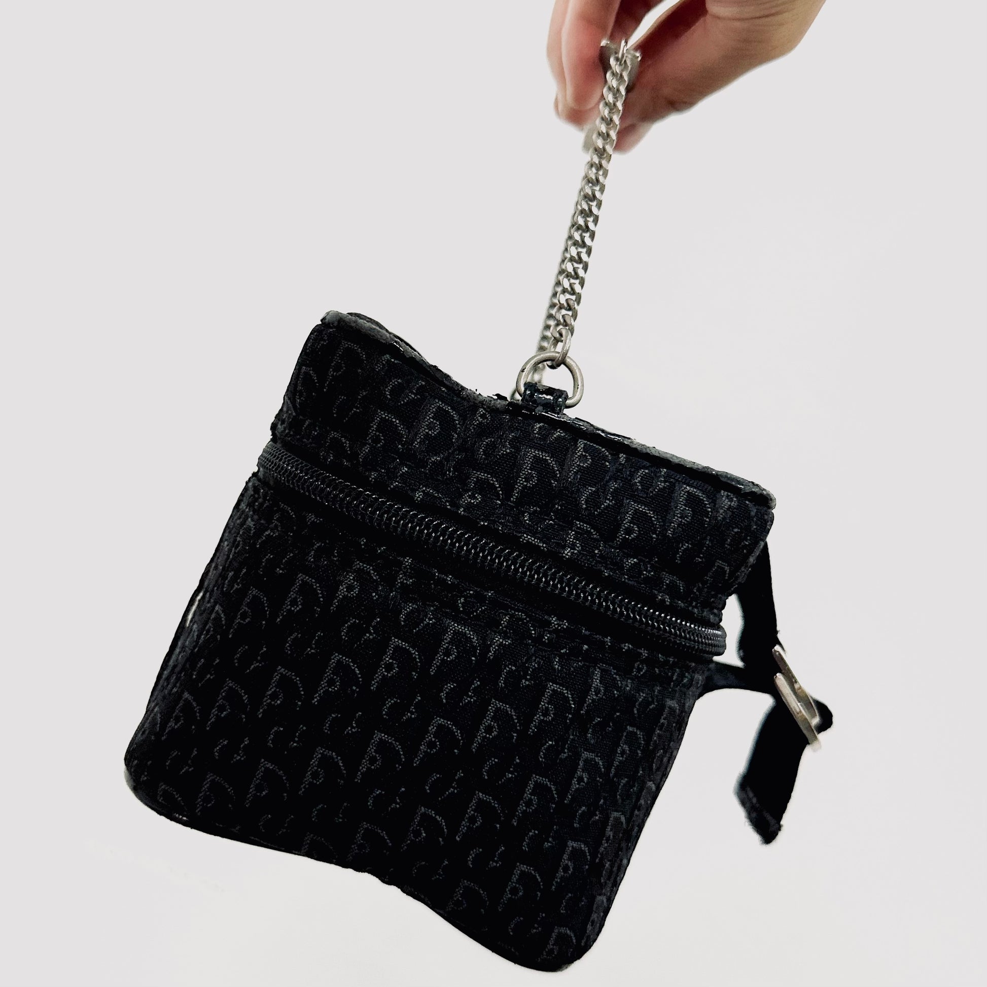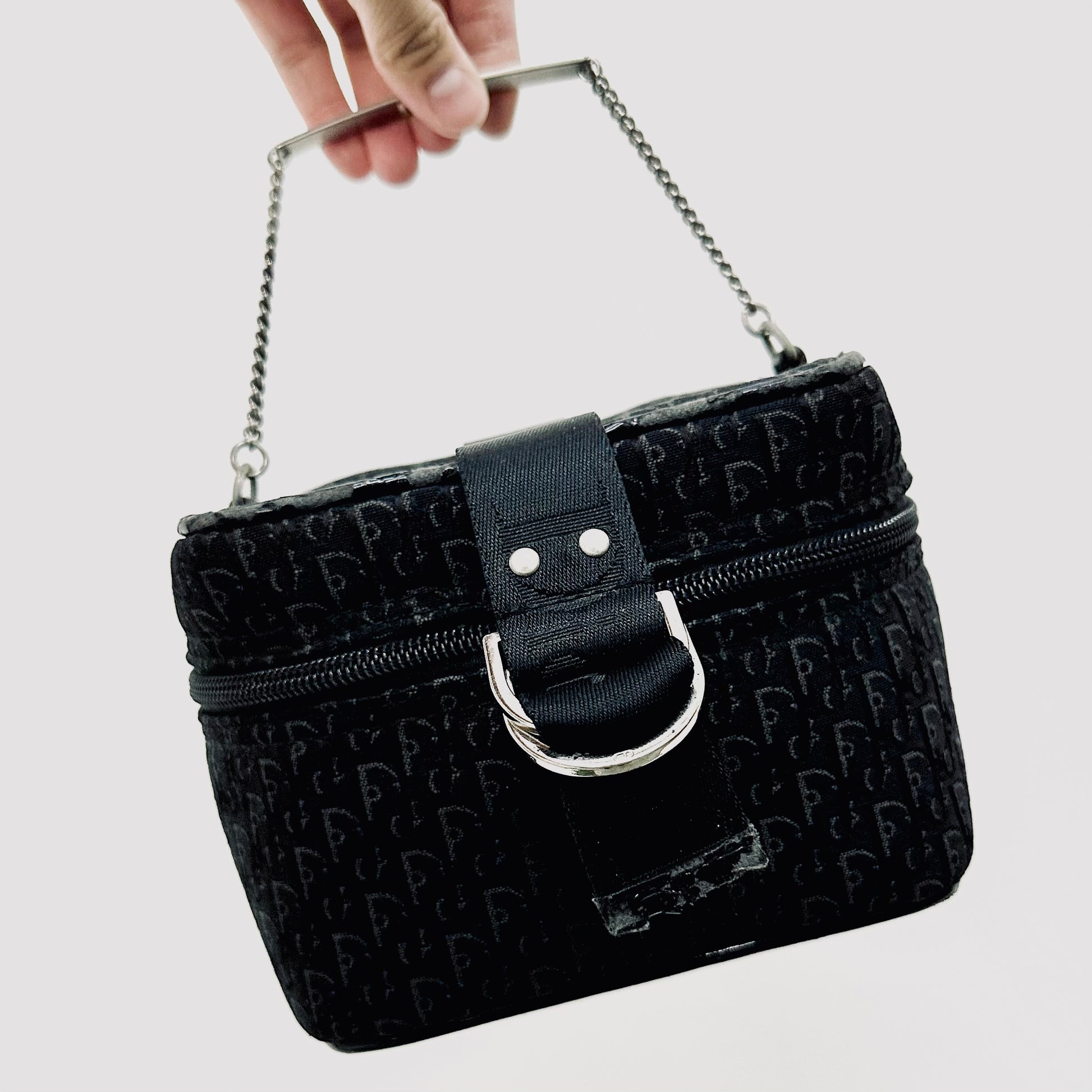 Christian Dior CD Black Oblique Monogram Logo Mini Vanity Case Top Handle Bag