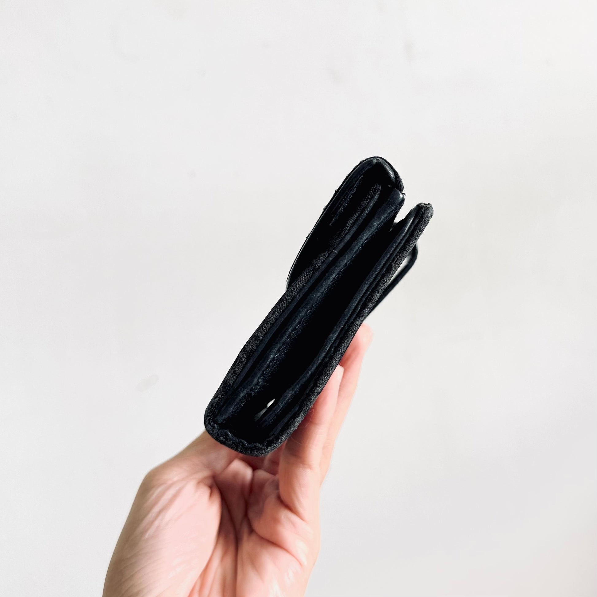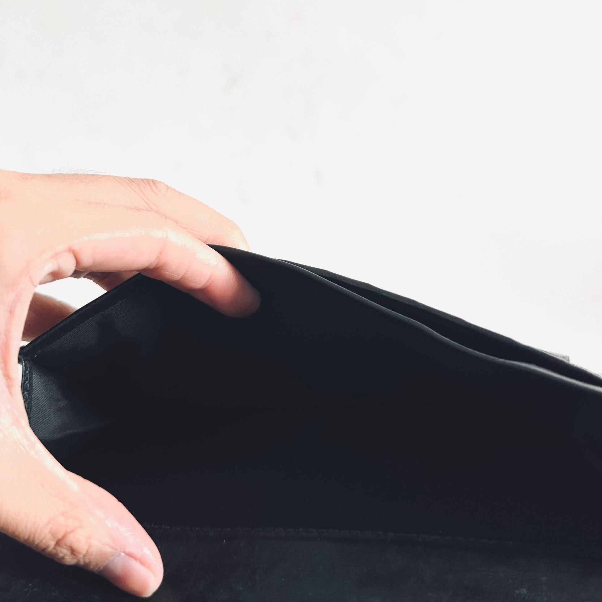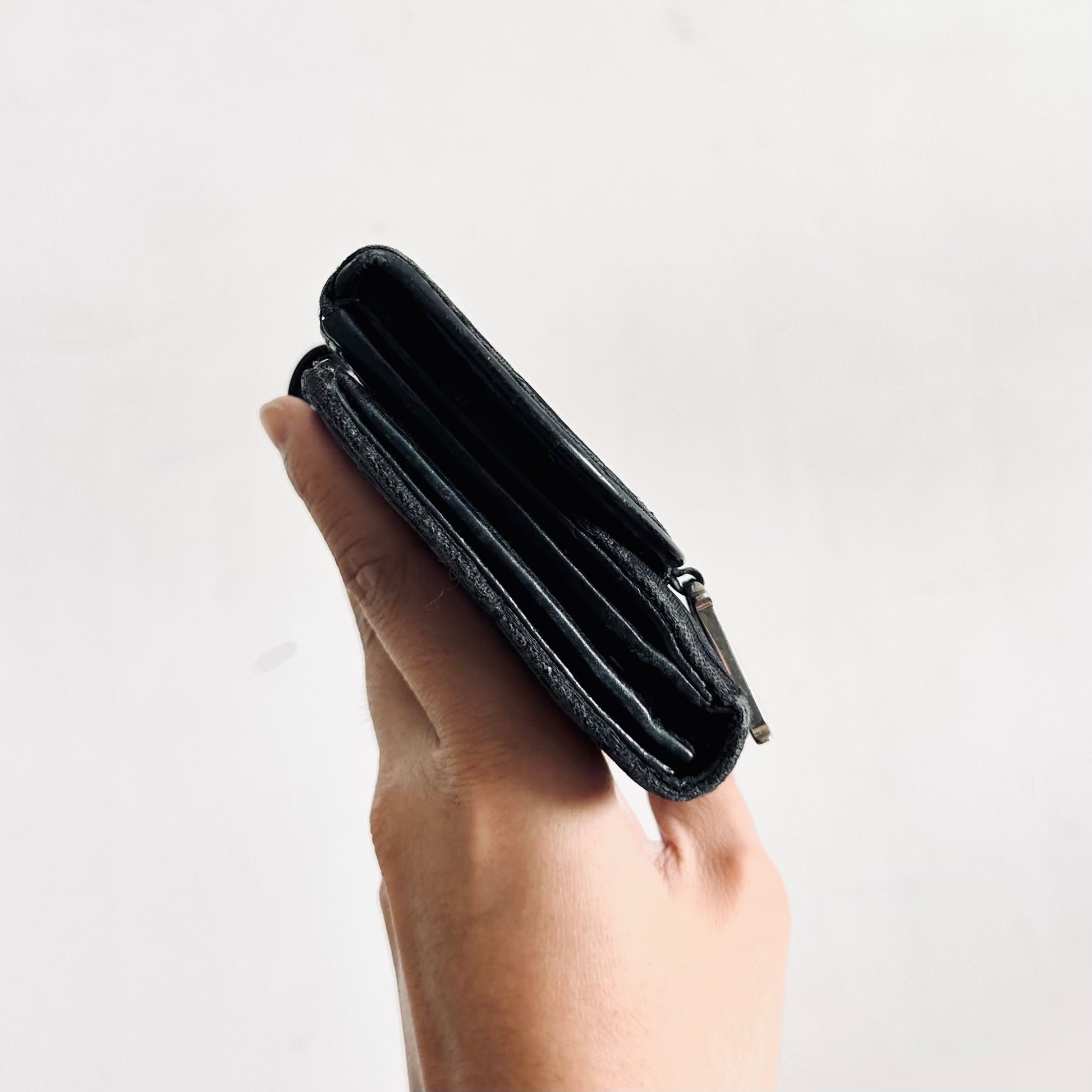 Preloved 9.3/10. This has flap button closures, coin pocket, card slots and notes compartments. This measures 17x9x2cm.