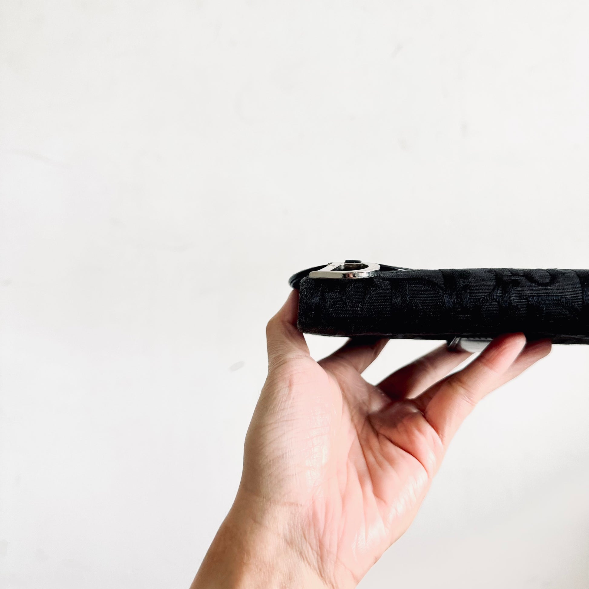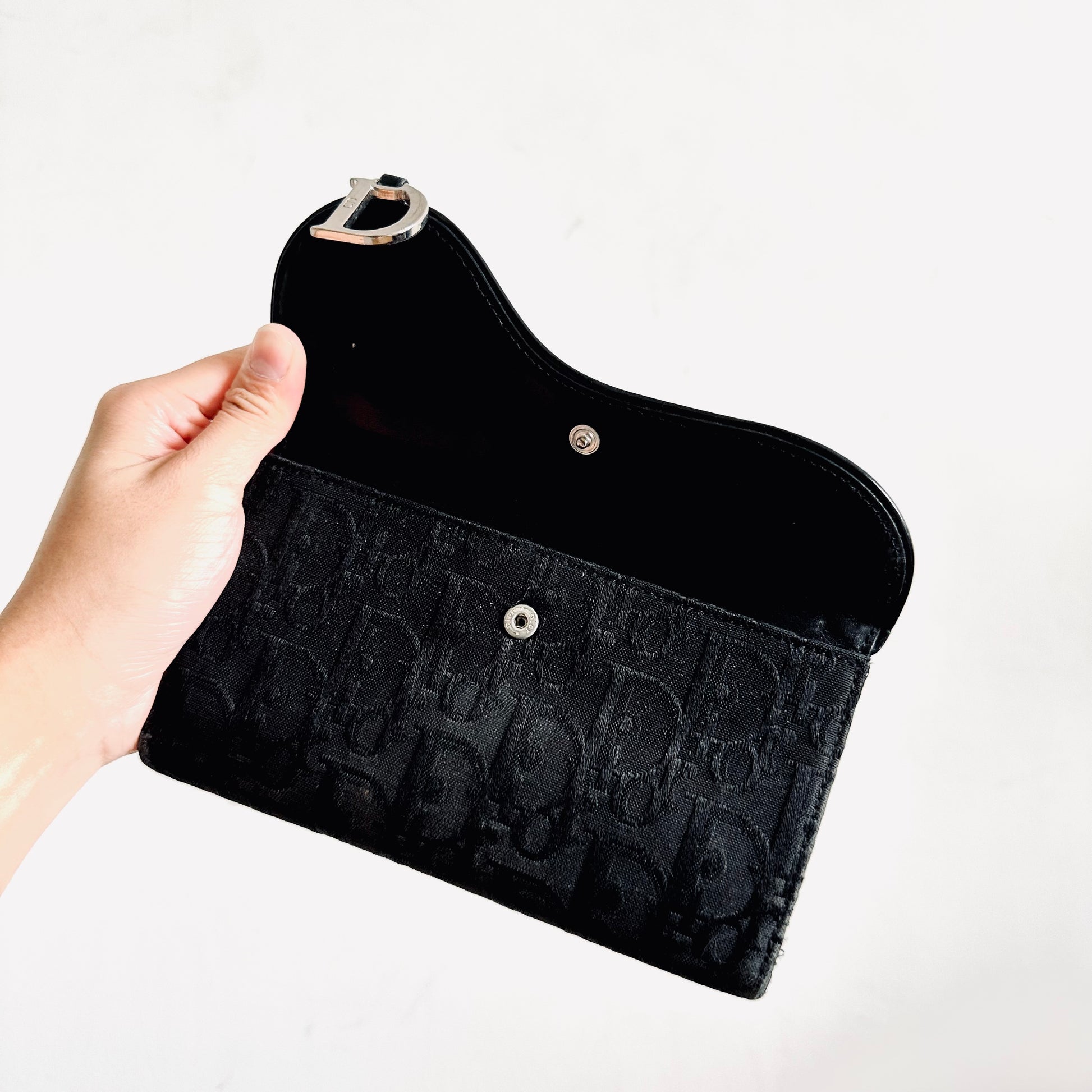 Christian Dior CD Black Oblique Monogram Logo Saddle Flap Bifold Long Wallet