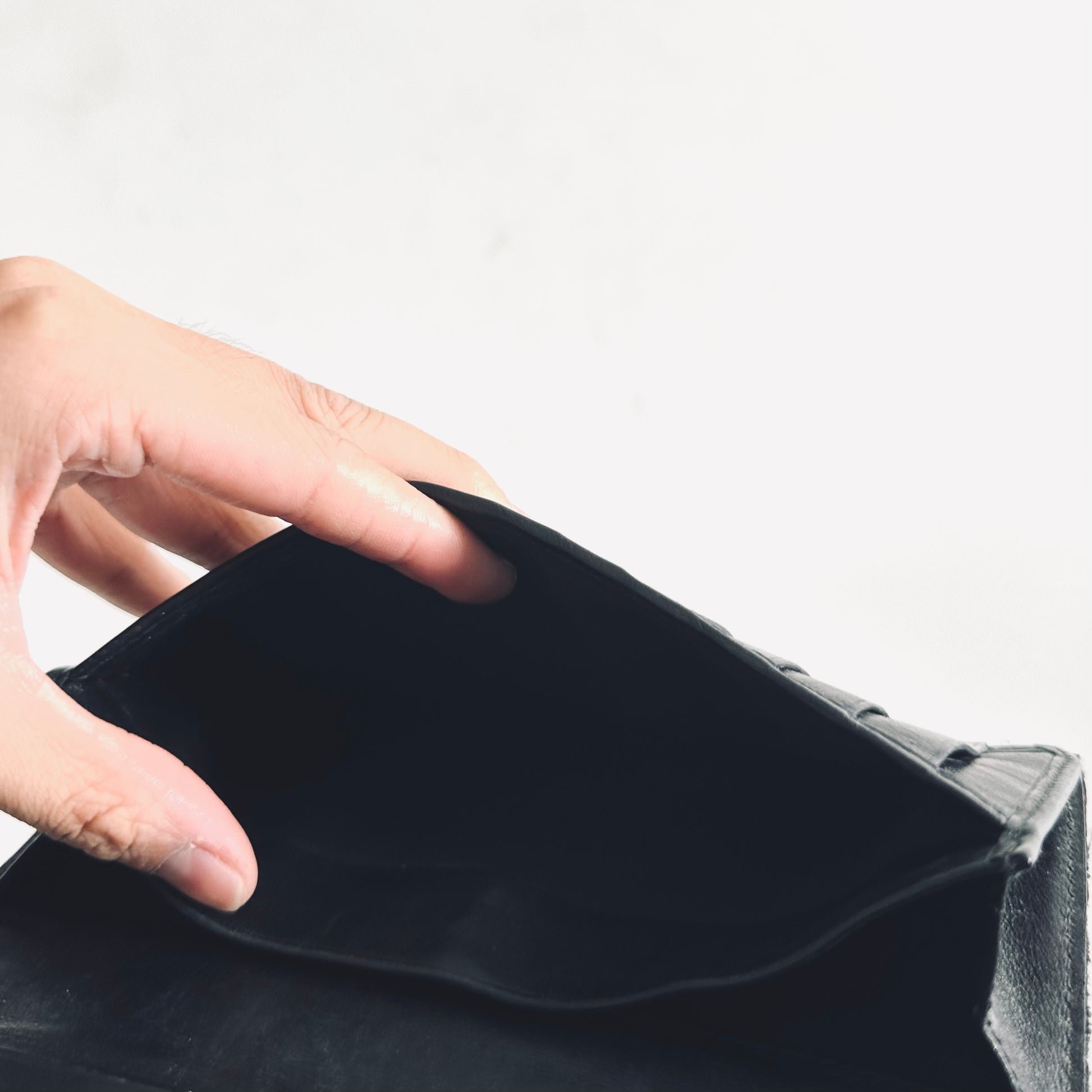 This has flap button closures, coin pocket, card slots and notes compartments. This measures 17x9x2cm. This comes with clearly engraved hardware, front logo, interior stamping and serial number.