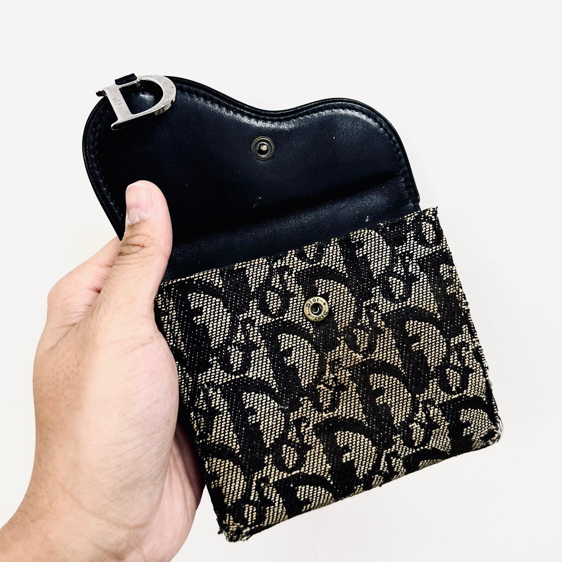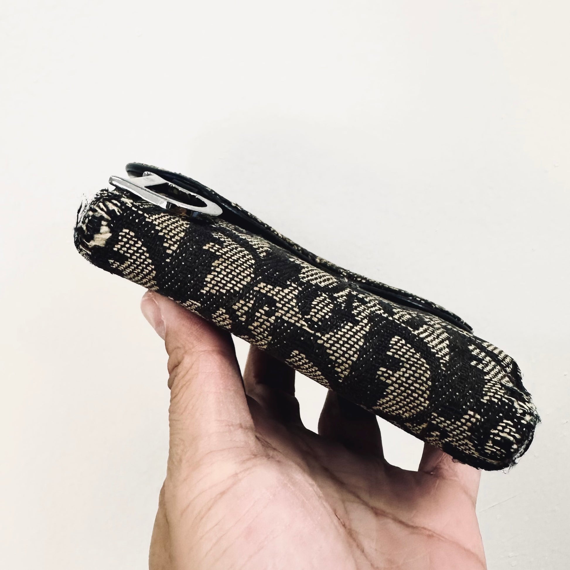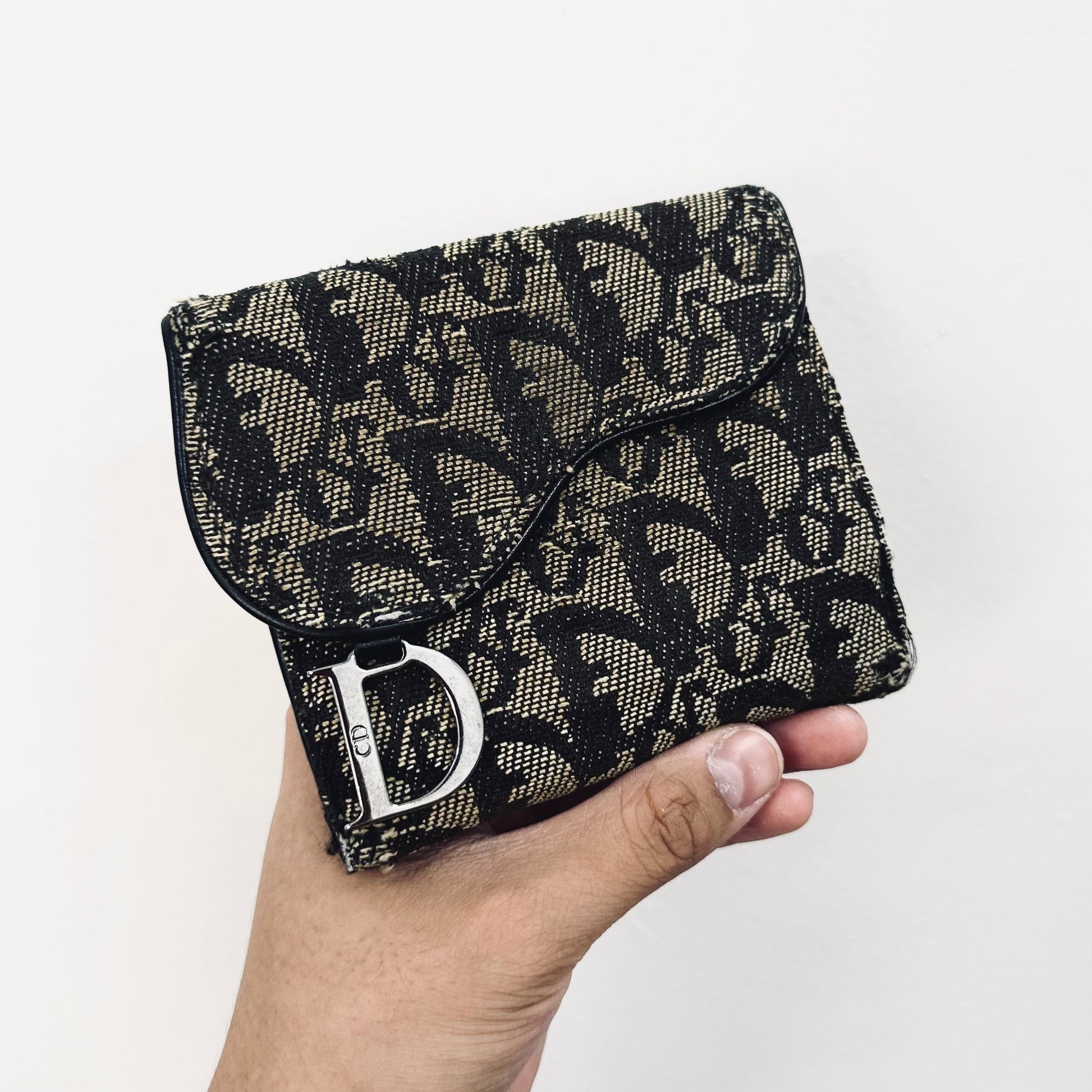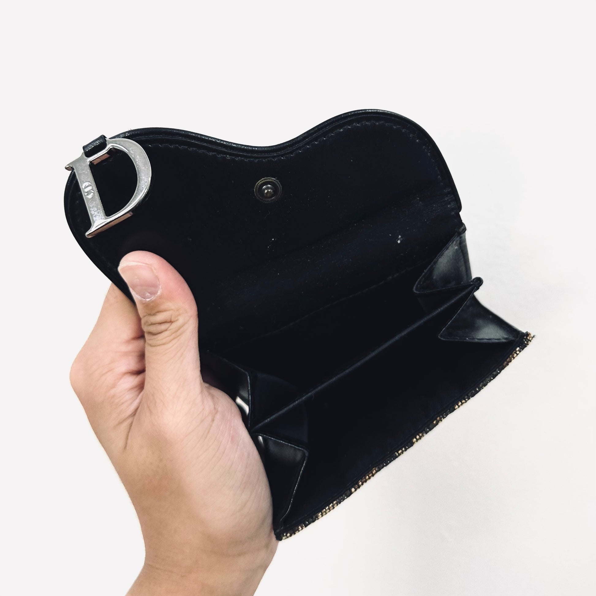 Christian Dior CD Black Saddle Lotus Oblique Monogram Logo Flap Bifold Compact Wallet