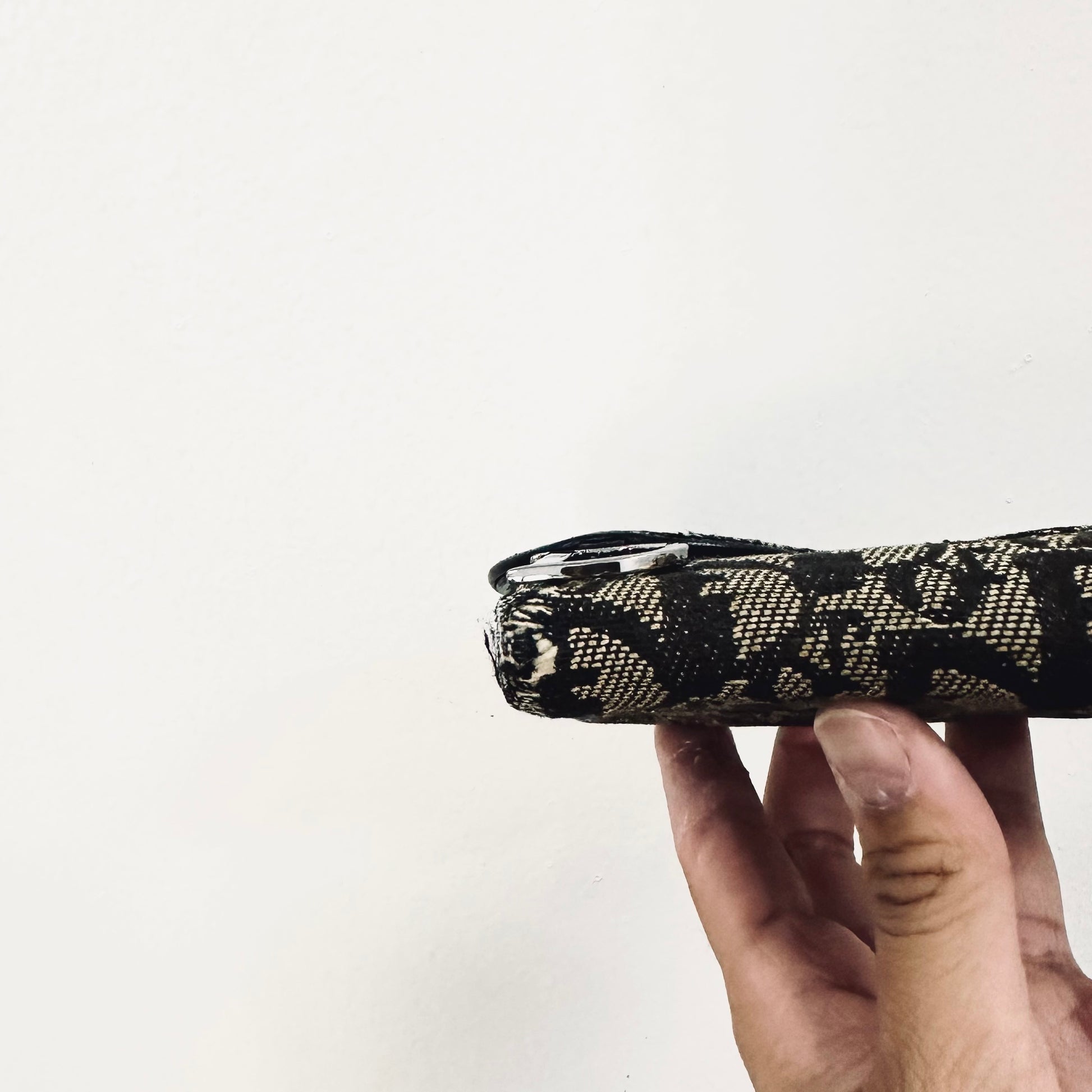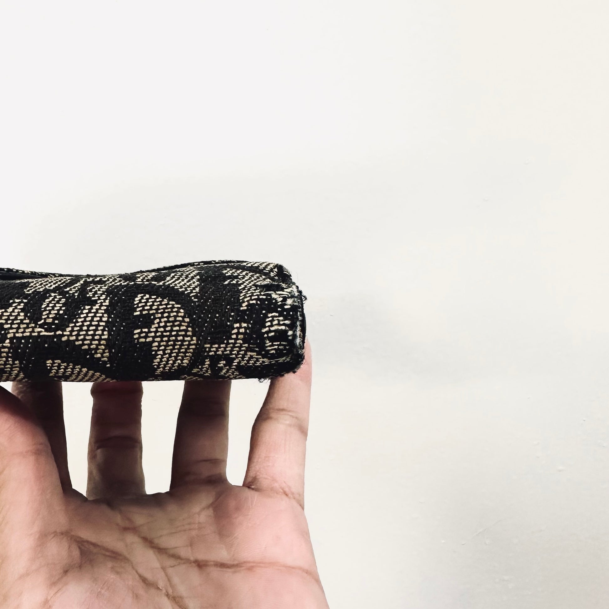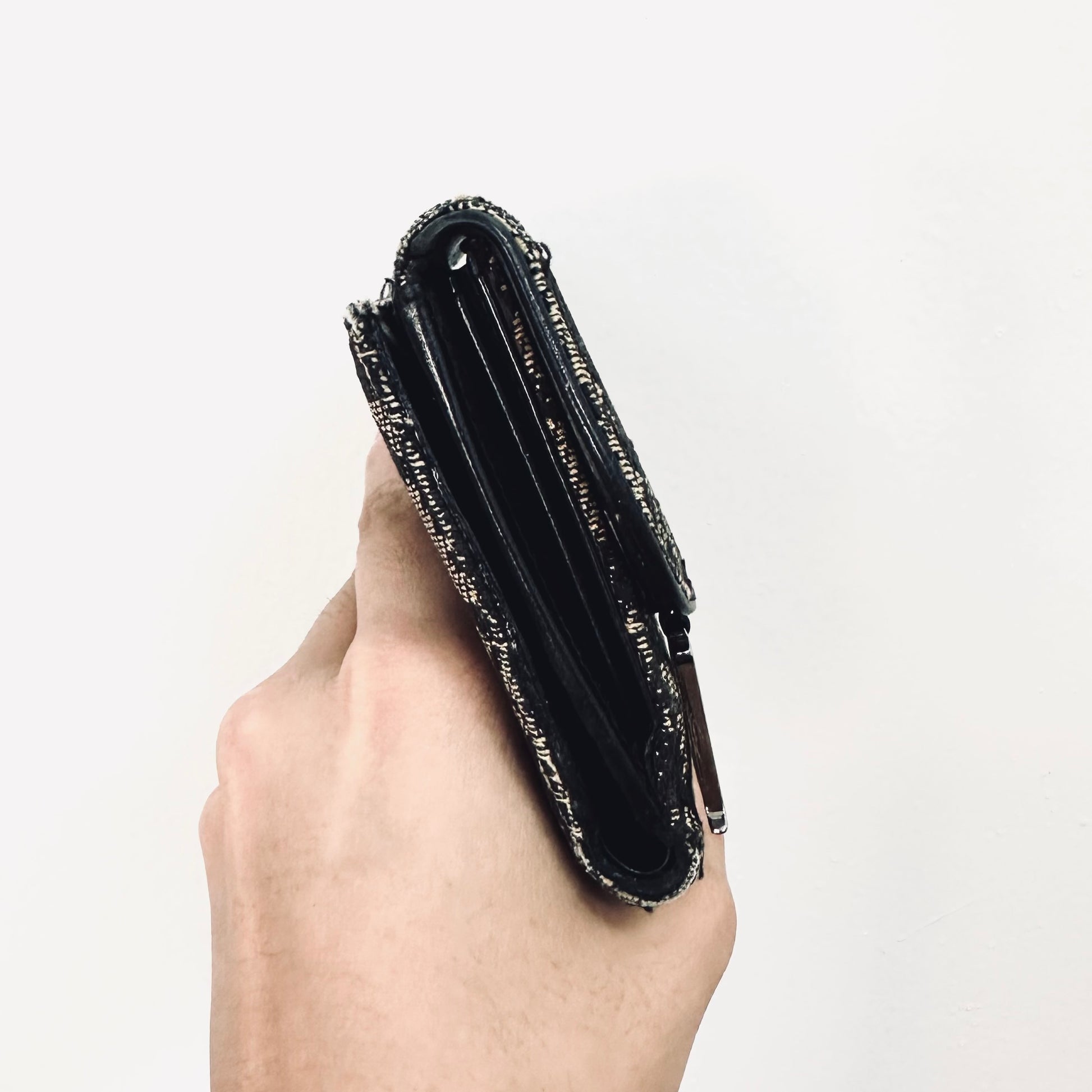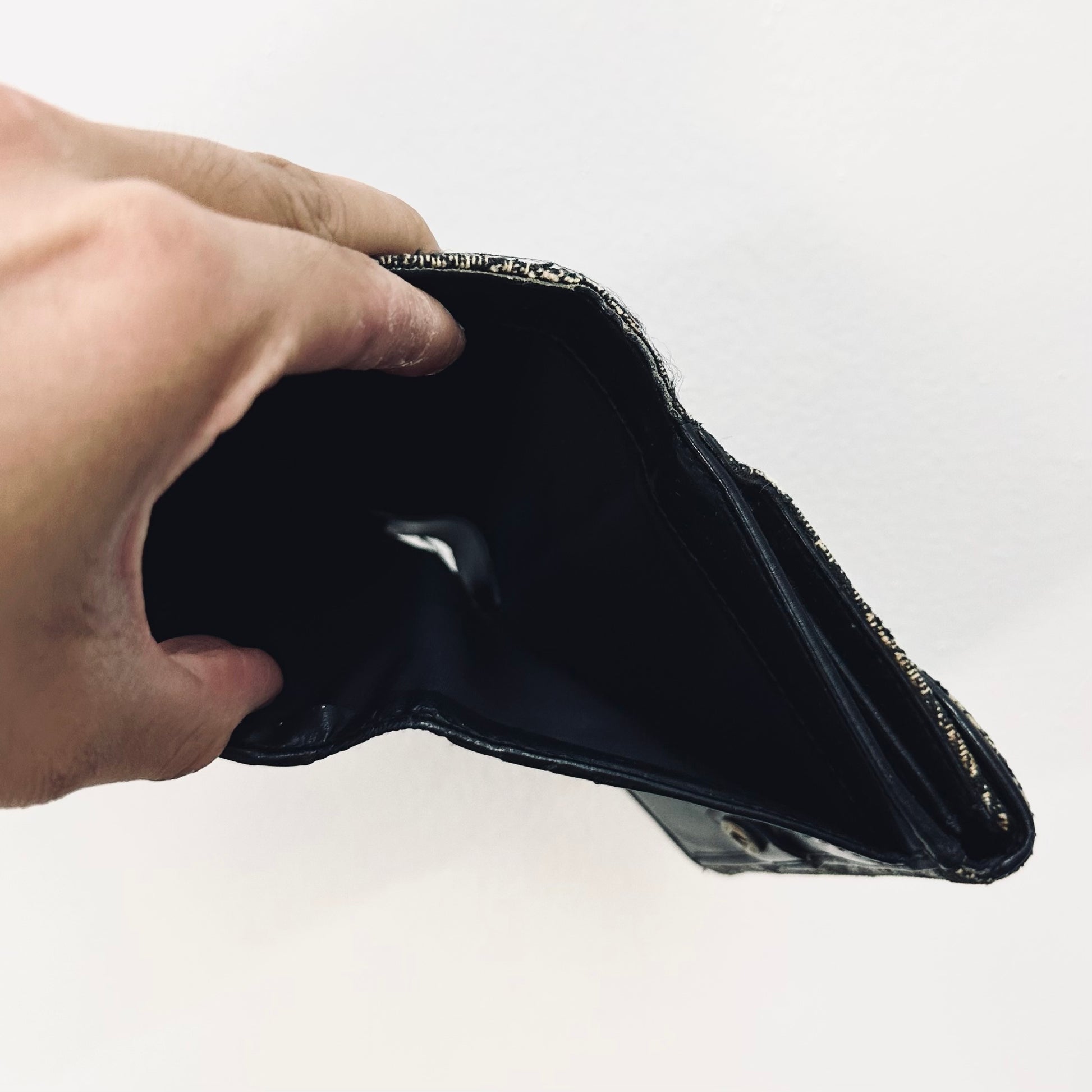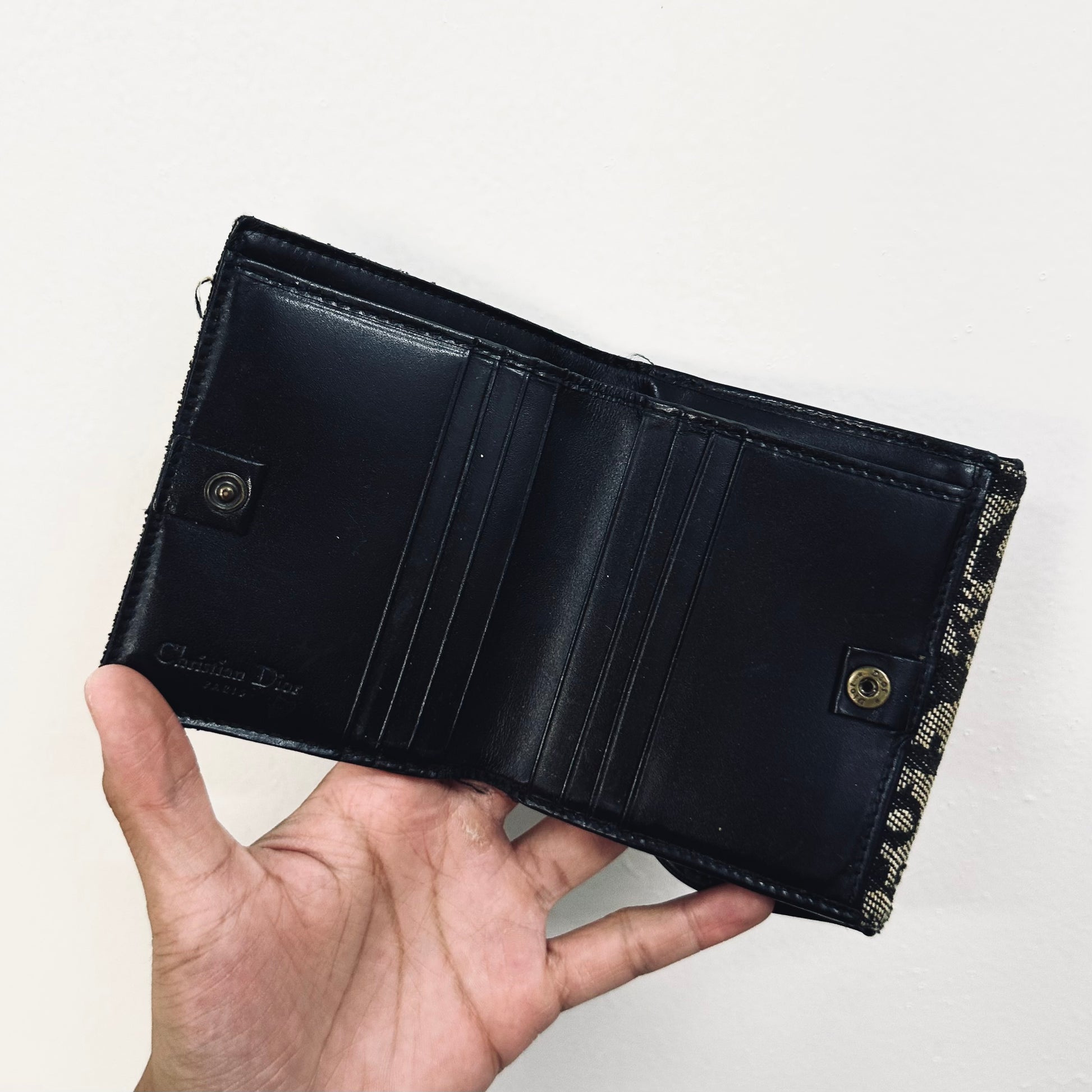 Christian Dior CD Black Saddle Lotus Oblique Monogram Logo Flap Bifold Compact Wallet