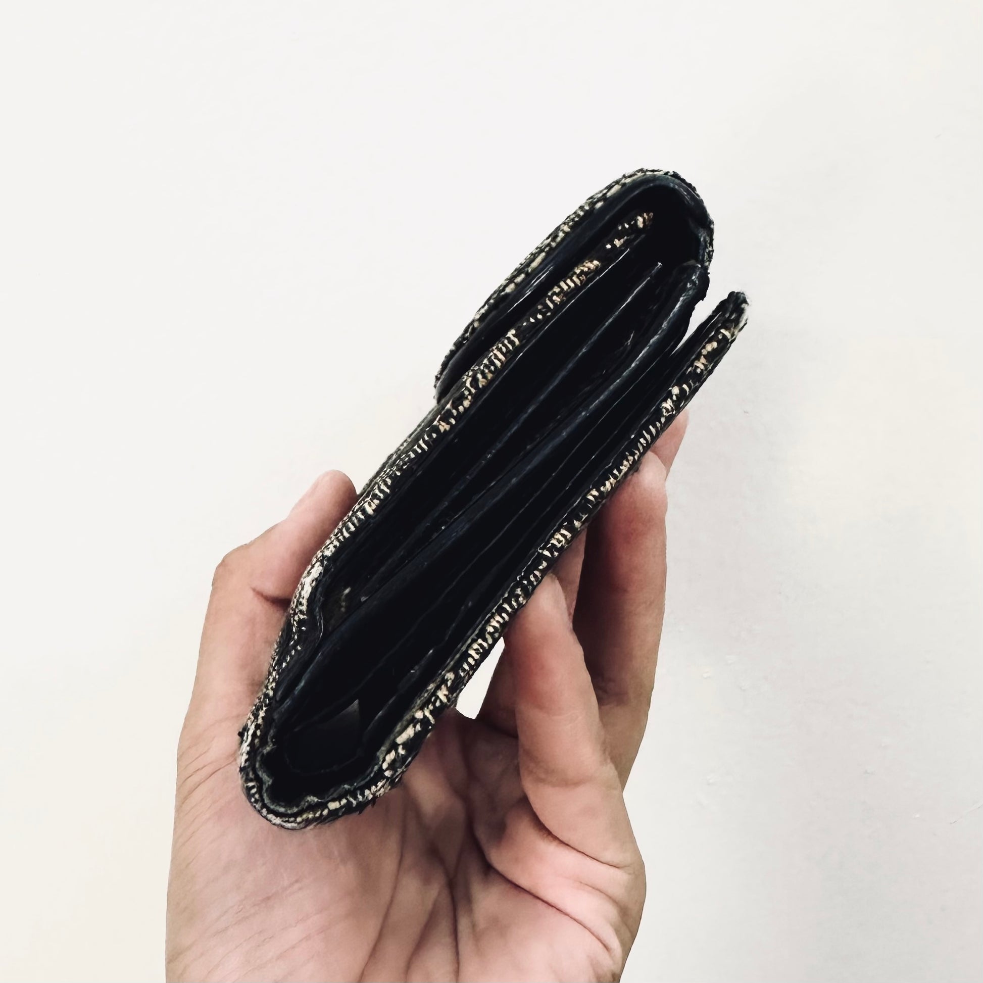Preloved 9.4/10. This has a snap button closure divided coin purse, button closure, notes compartment, card slots and slip pockets. This measures 10.5x9x2cm.