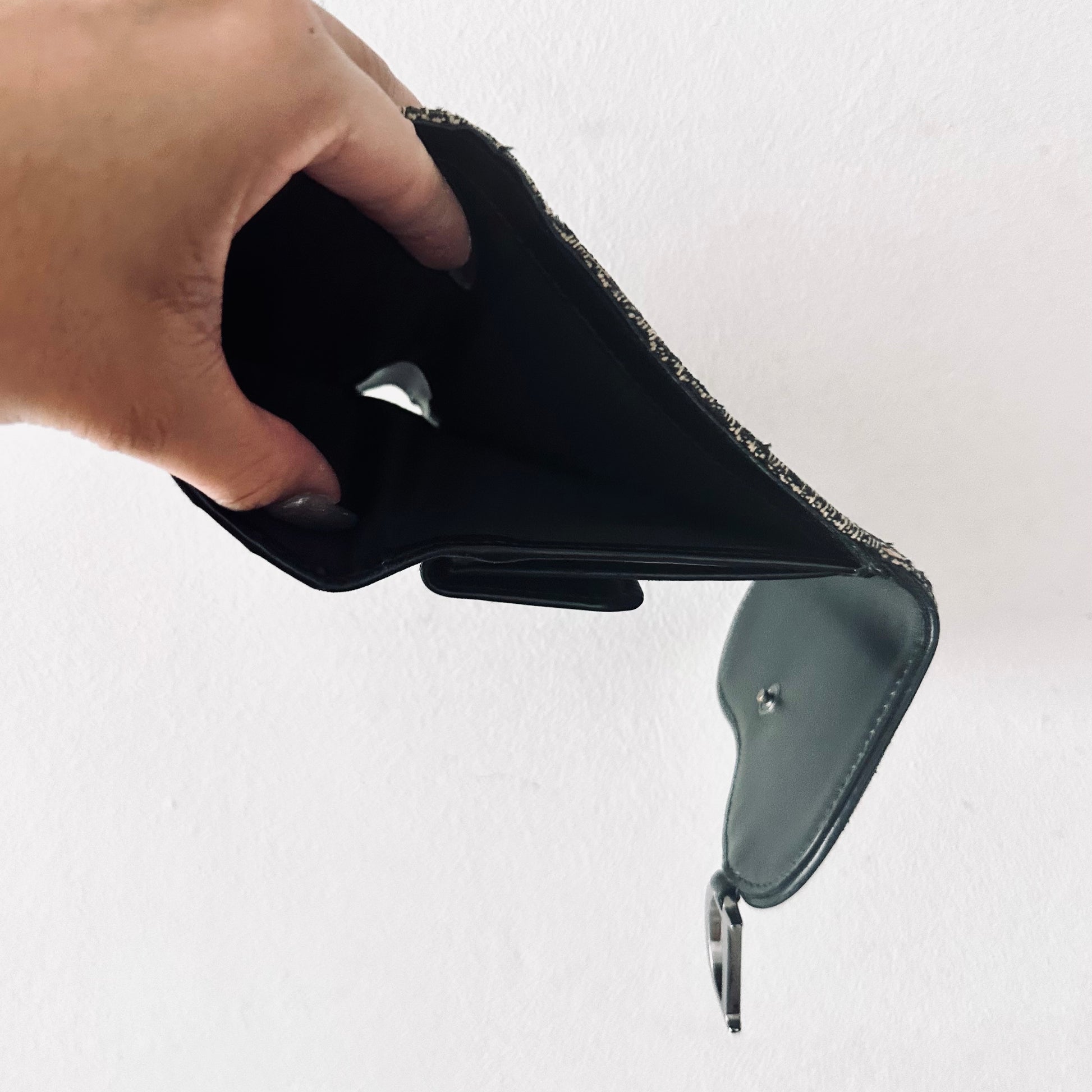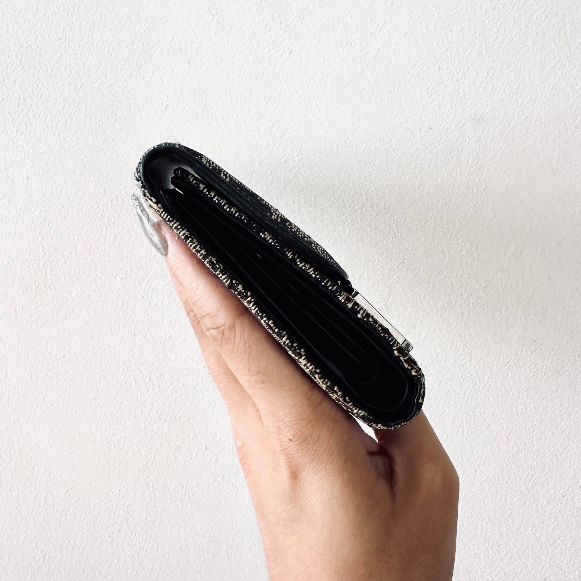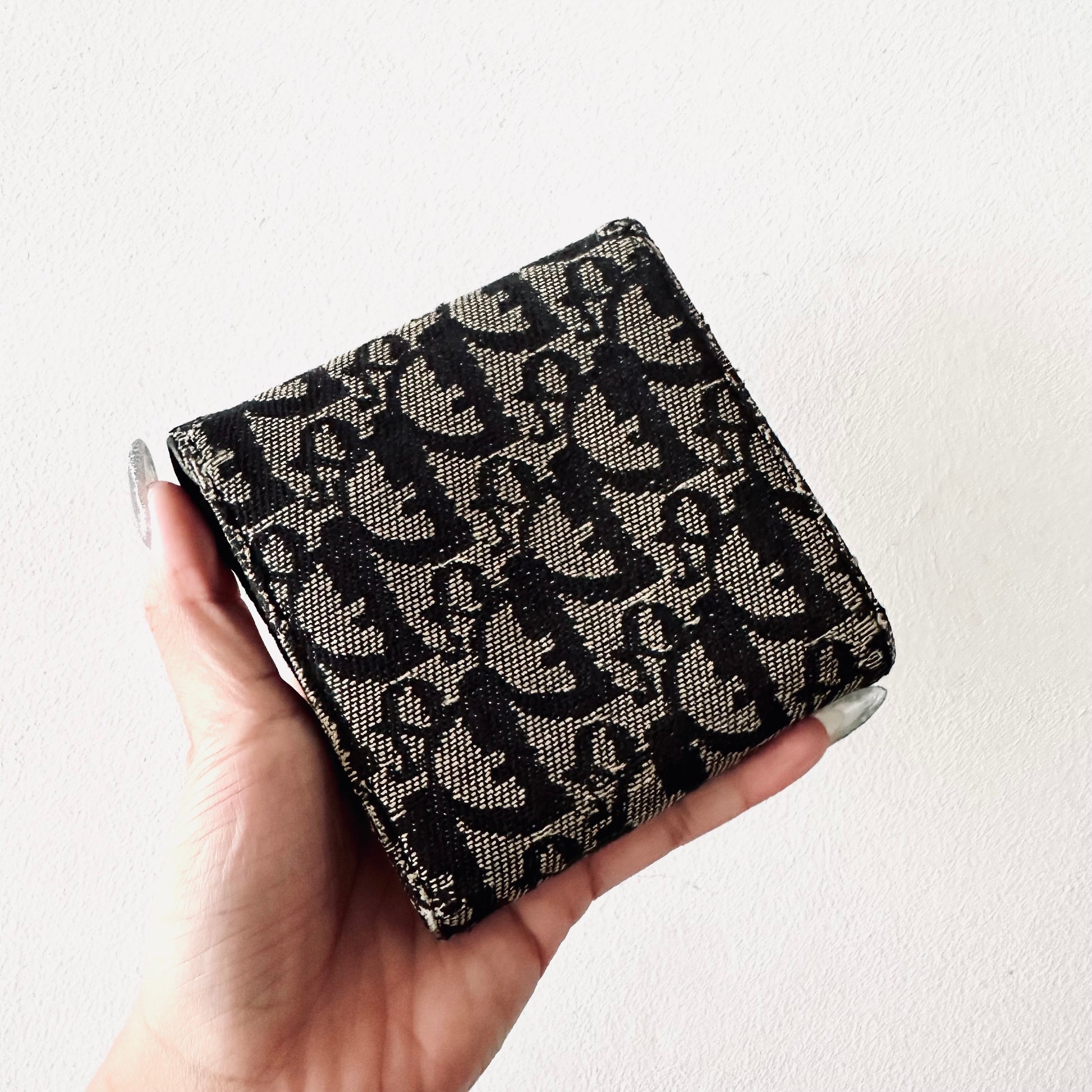 Christian Dior CD Black Saddle Lotus Oblique Monogram Logo Flap Trifold Compact Wallet