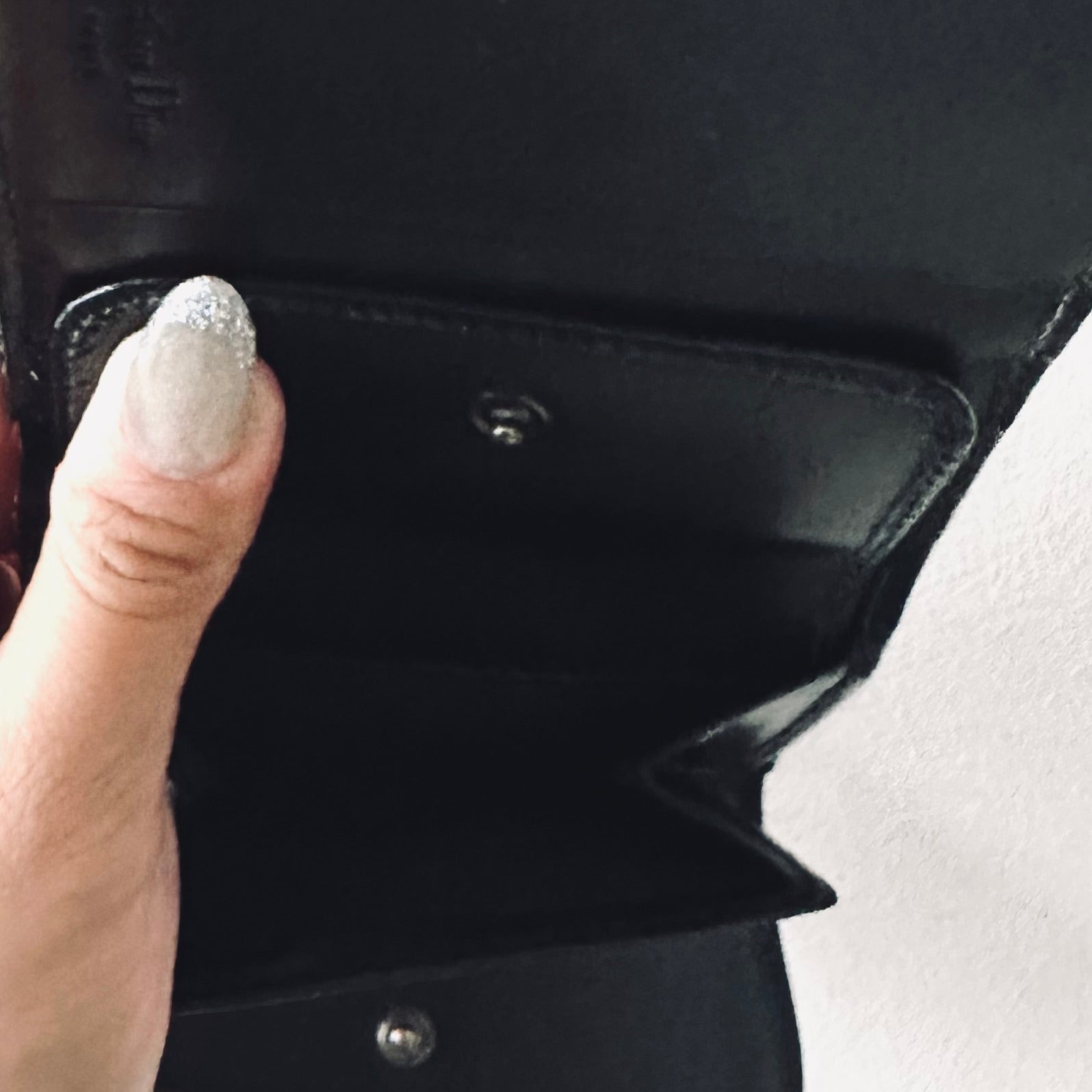 Preloved 9.4/10. This has a snap button closure, flap coin purse, notes compartment, card slots and slip pockets. This measures 10.5x9x2cm.
