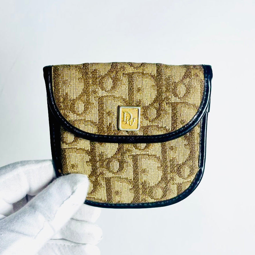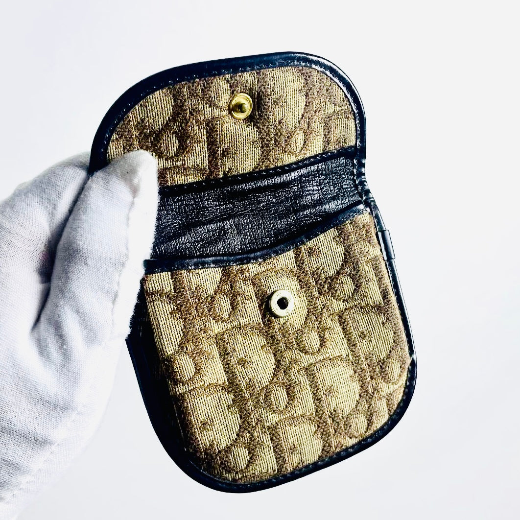 Christian Dior CD Brown GHW Oblique Monogram Logo Flap Coin Pouch Case Wallet