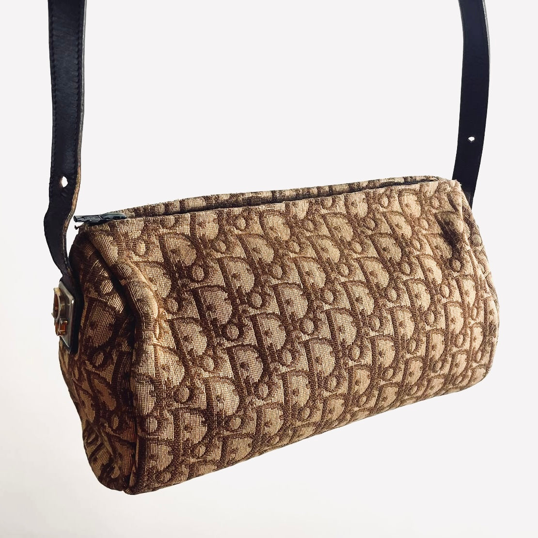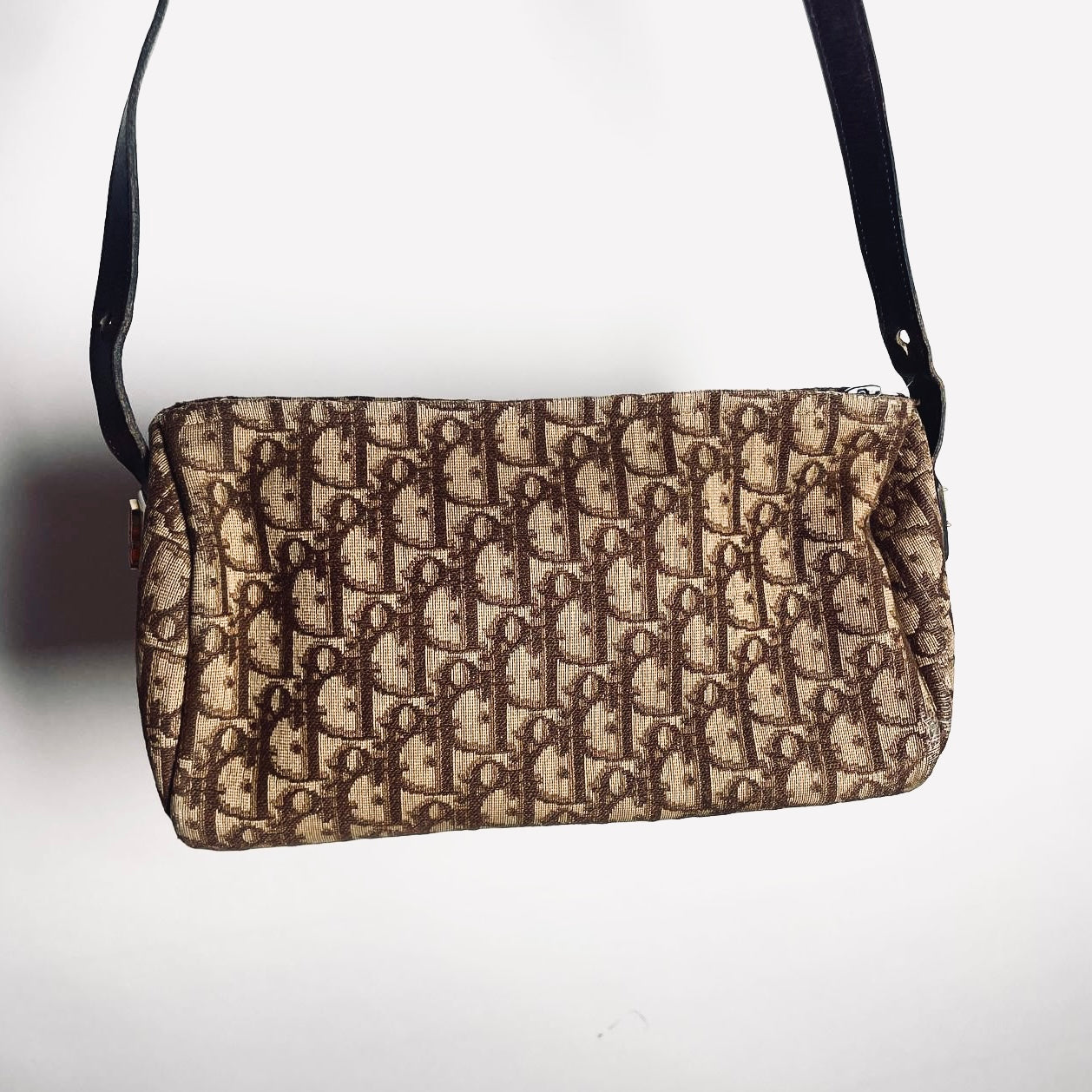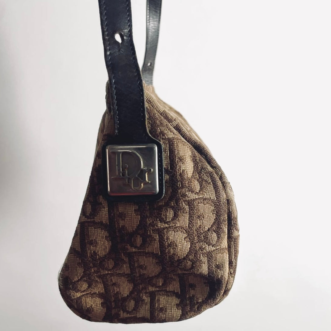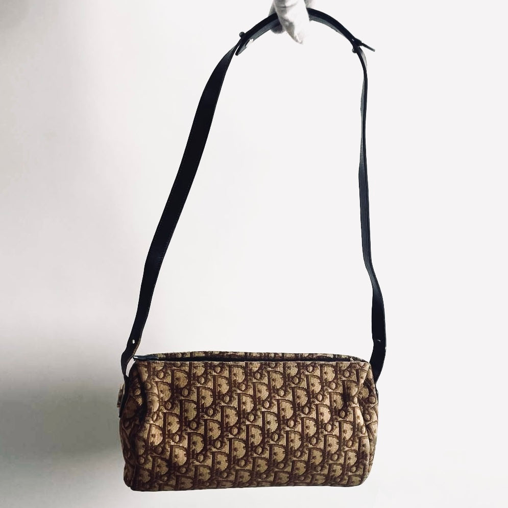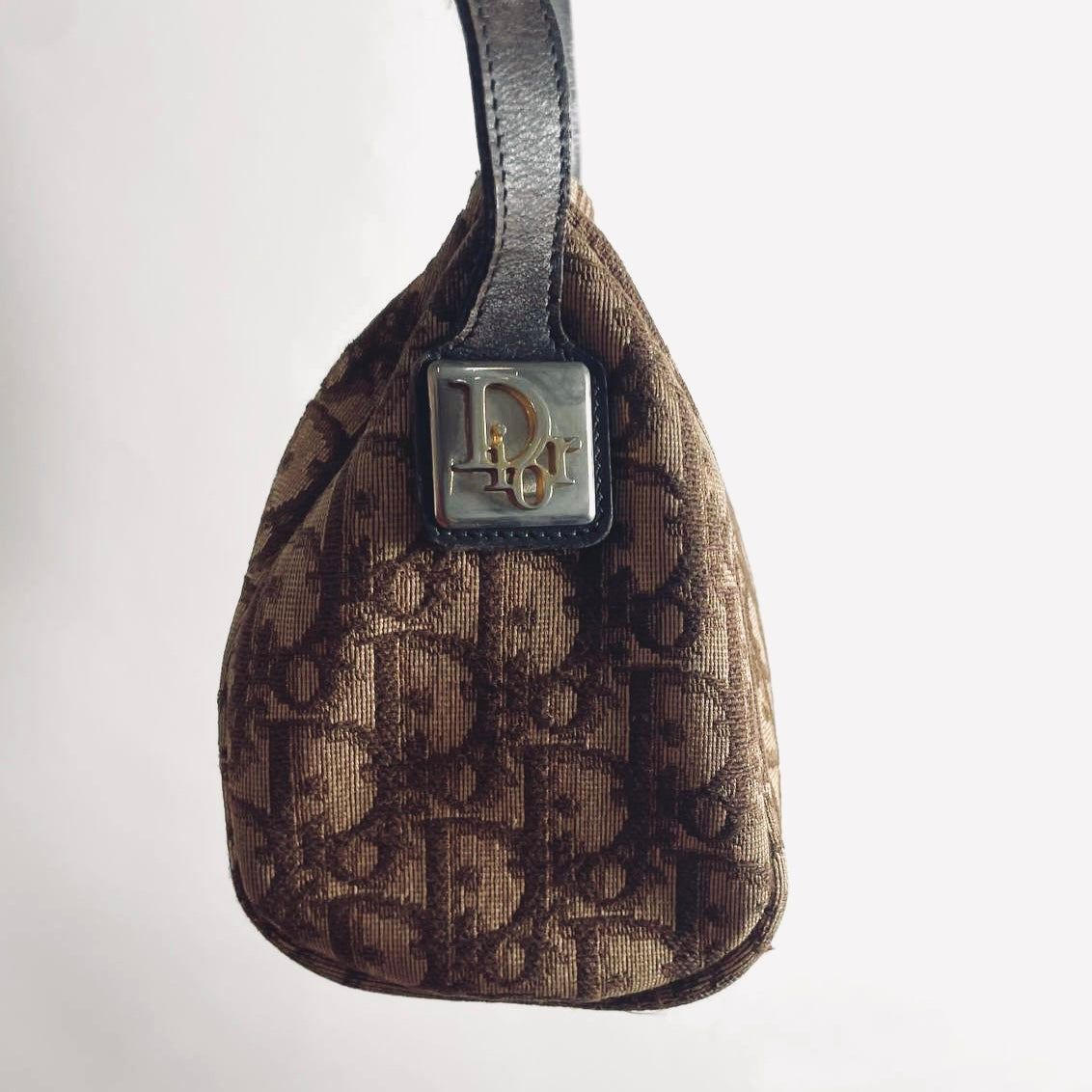 Christian Dior CD Brown GHW Oblique Monogram Logo Vintage 2-Way Roller Papillon Shoulder Sling Bag