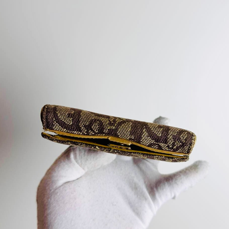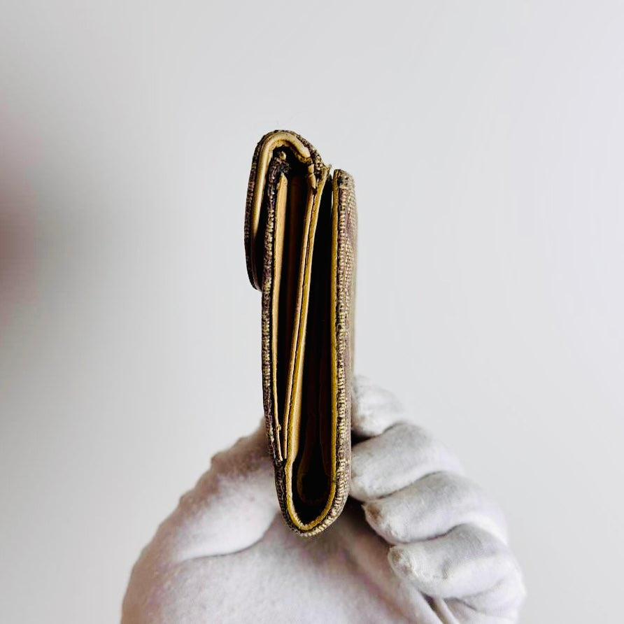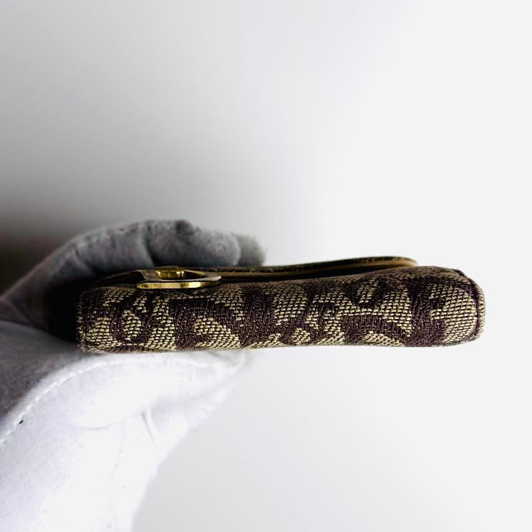 Christian Dior CD Brown GHW Saddle Lotus Oblique Monogram Logo Flap Bifold Compact Wallet