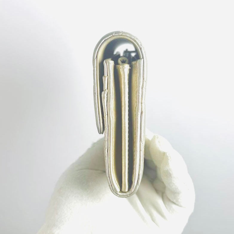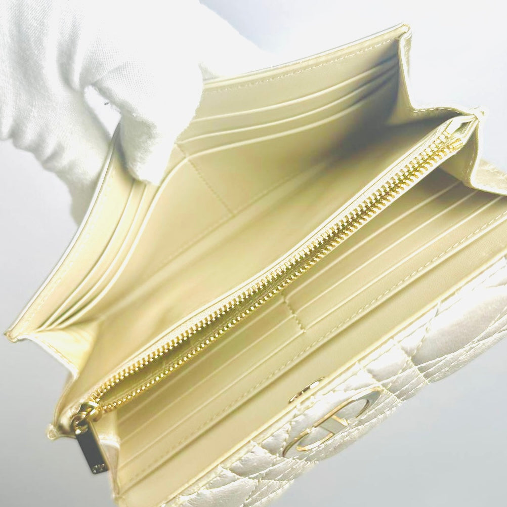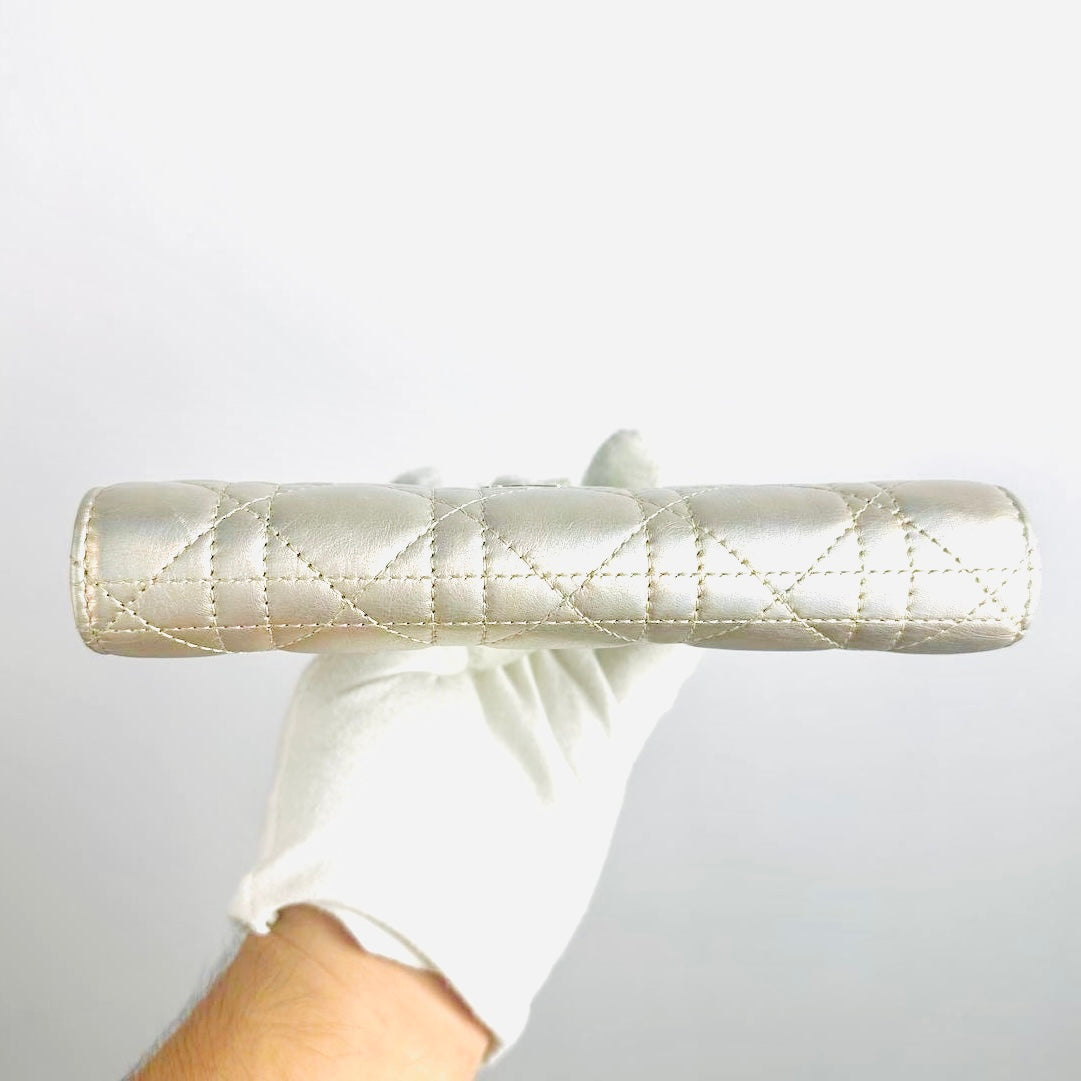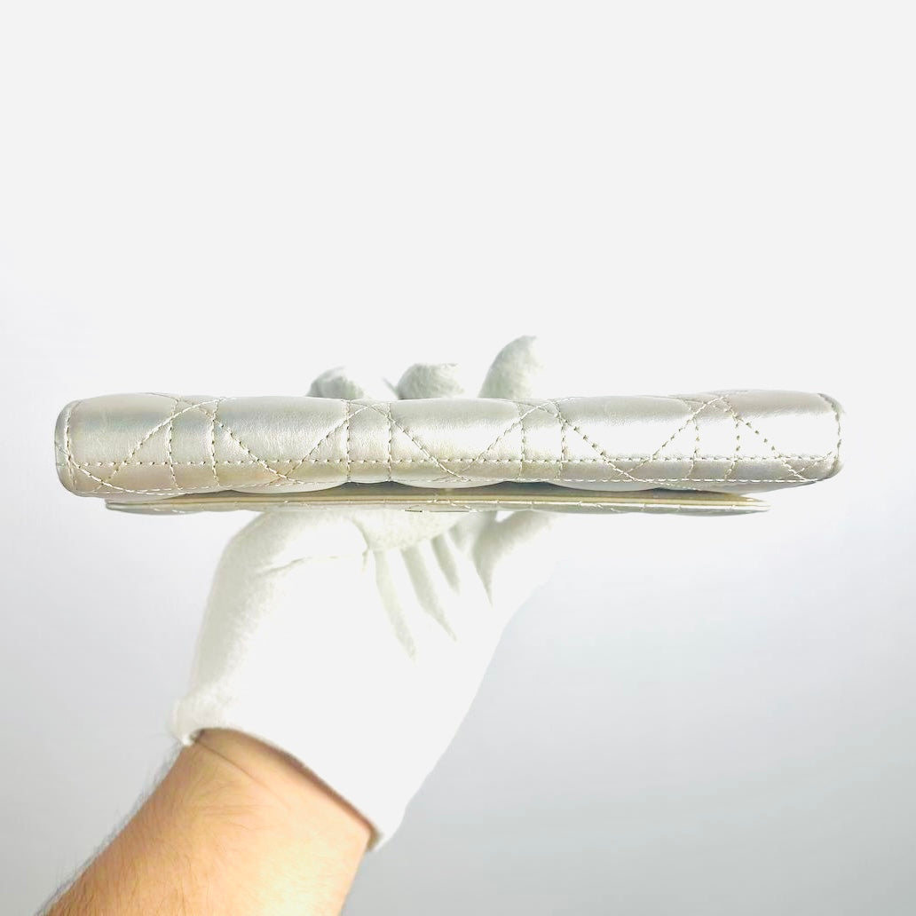 Christian Dior CD Caro 30 Montaigne Iridescent GHW Silver Quilted Cannage Supple Calfskin Monogram Logo Flap Long Wallet