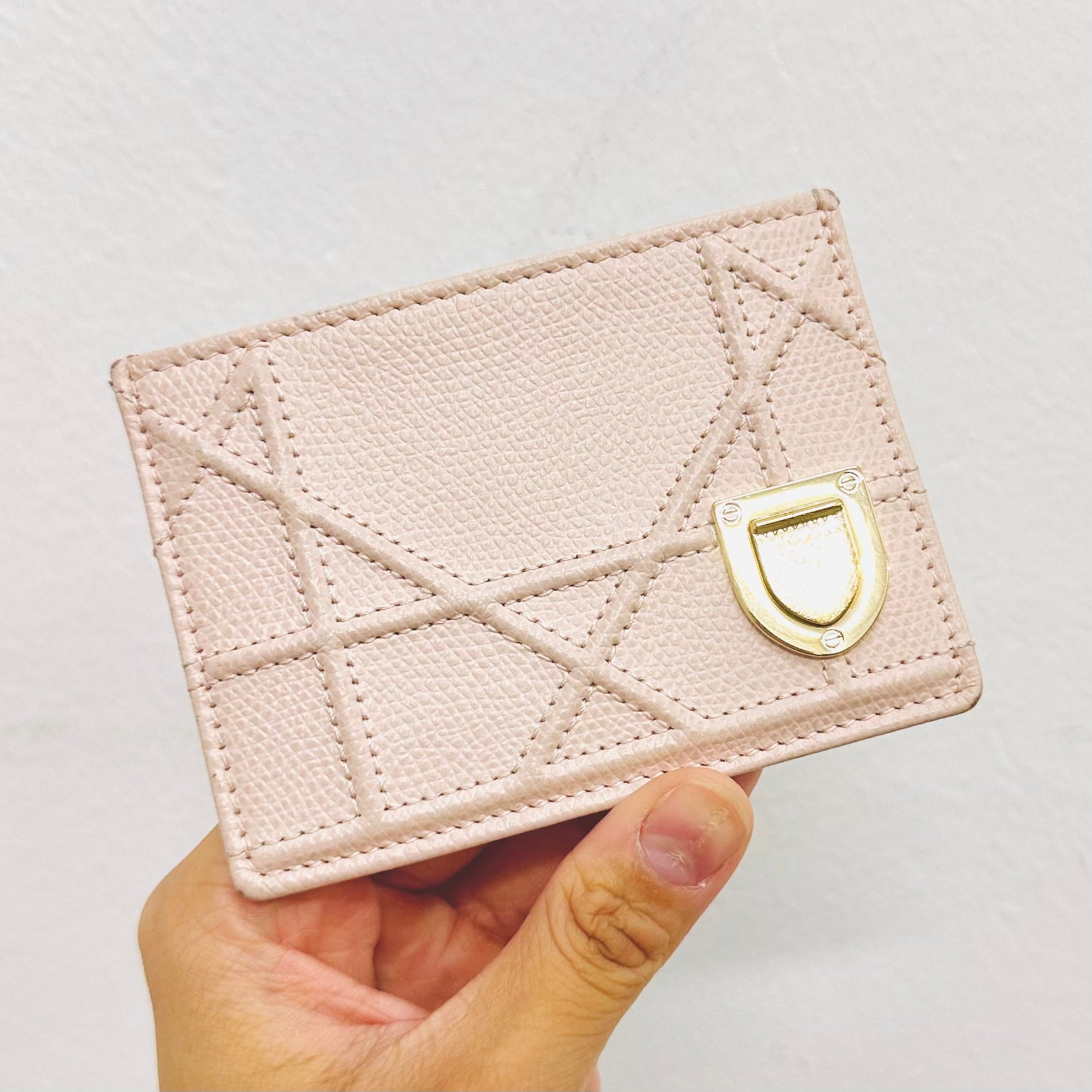 Christian Dior CD Diorama Pale Pink GHW Calfskin Monogram Logo Cardholder Card Case Wallet