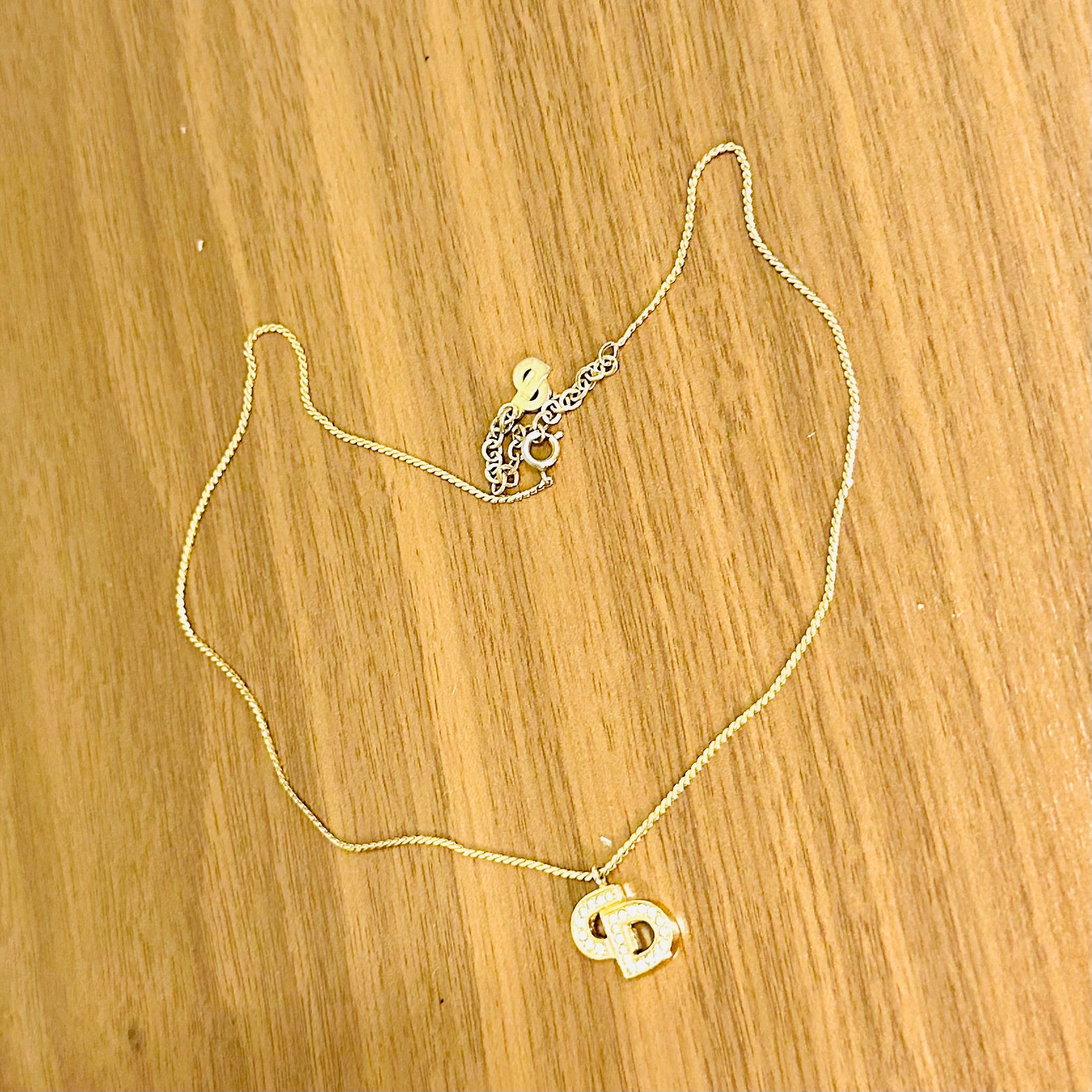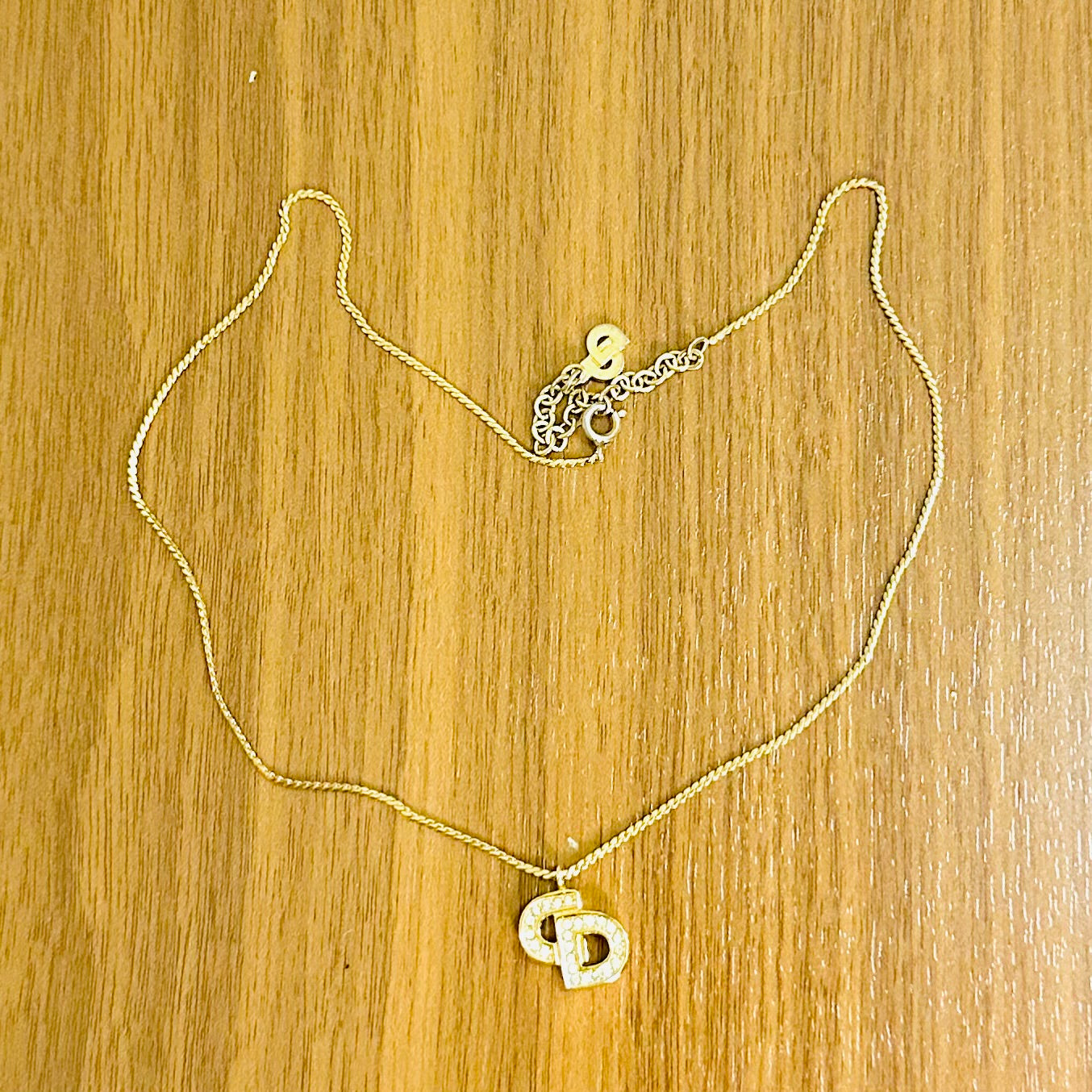 Christian Dior CD Gold & Crystals Giant Monogram Logo Signature Classic Chain Necklace
