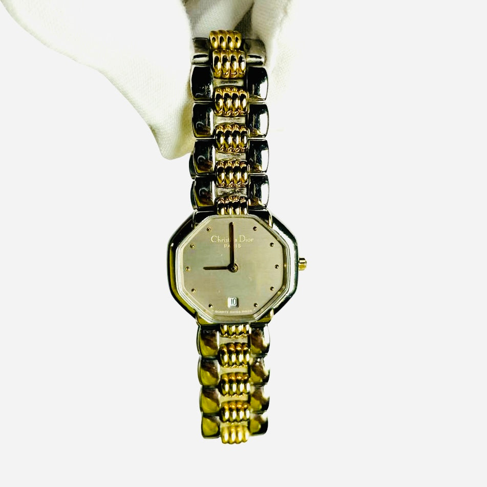 Christian Dior CD Grey Dial Monogram Logo Octagon Stainless Steel & Gold 25MM Quartz Watch