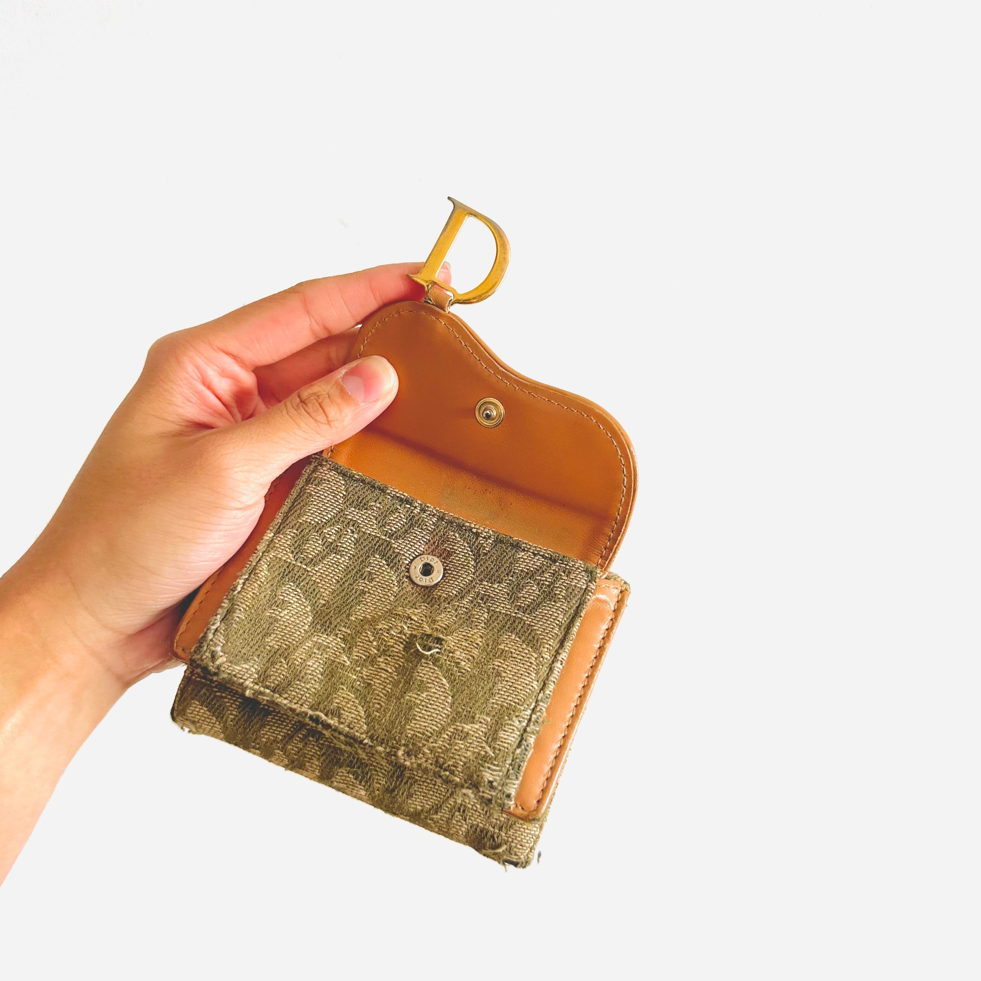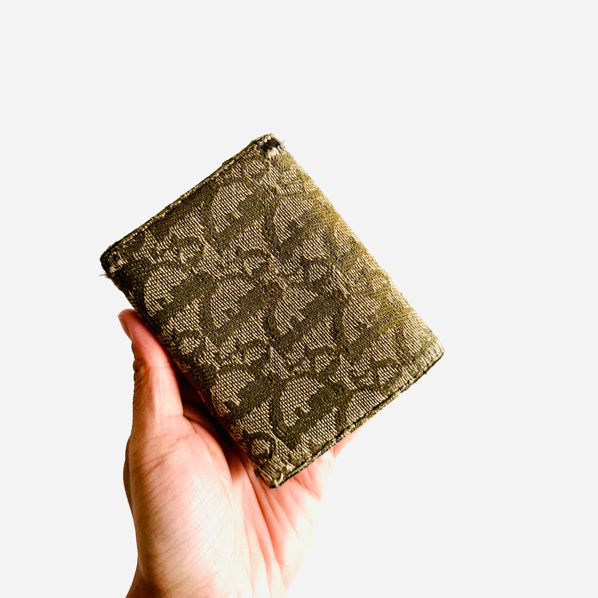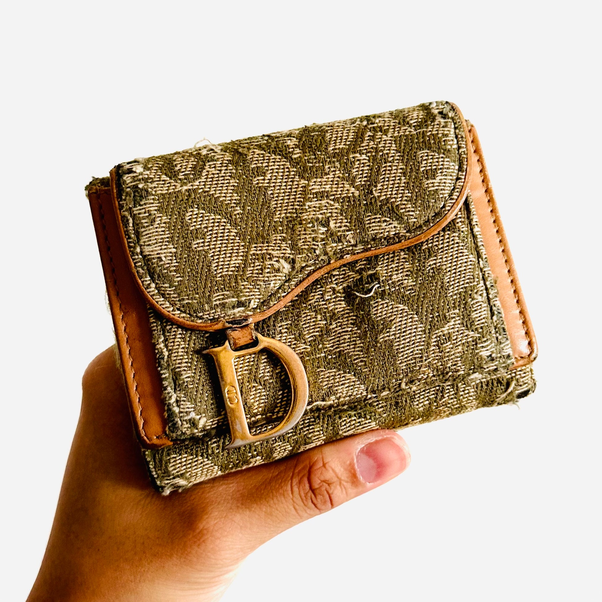 Christian Dior CD Khaki / Brown GHW Saddle Lotus Oblique Monogram Logo Flap Trifold Compact Wallet