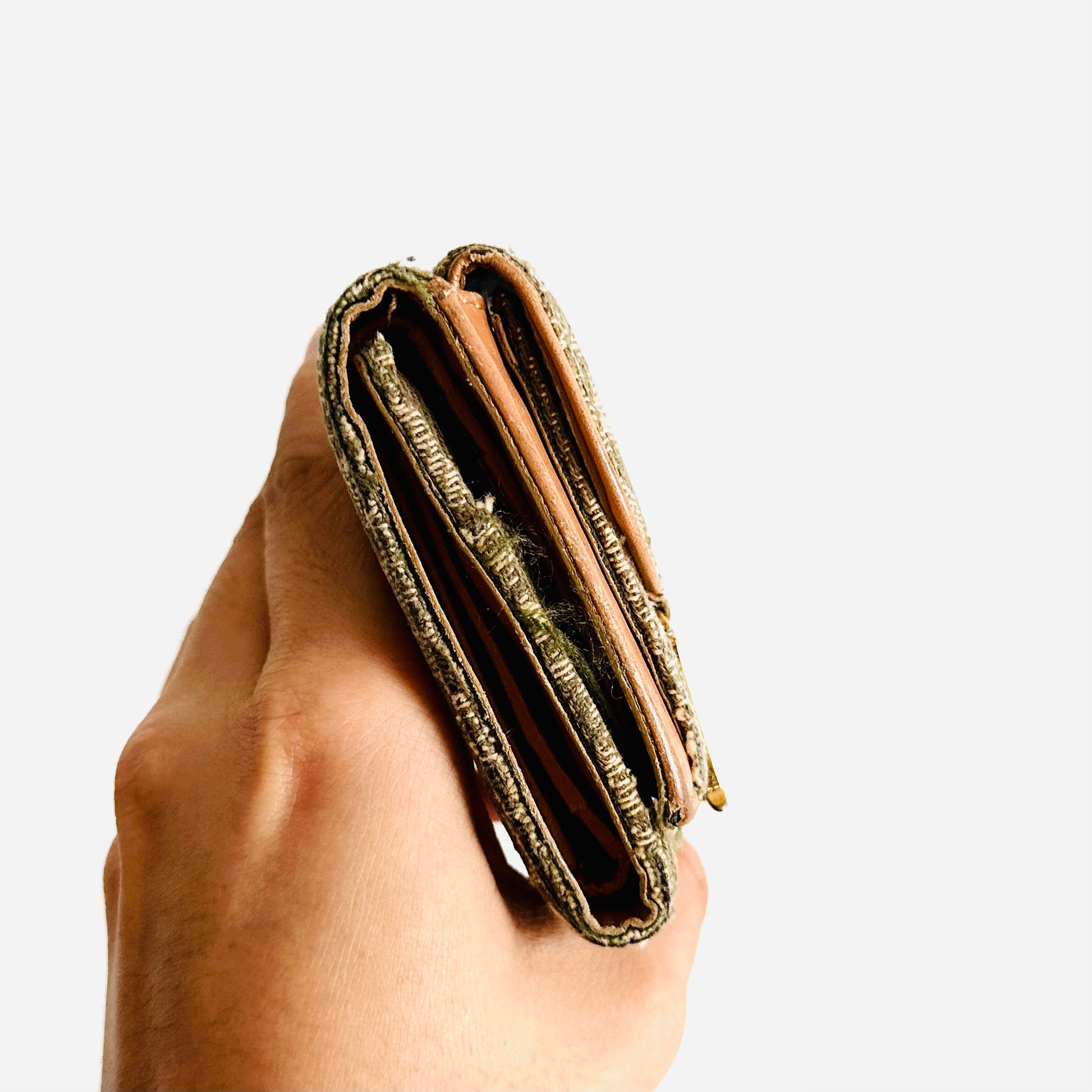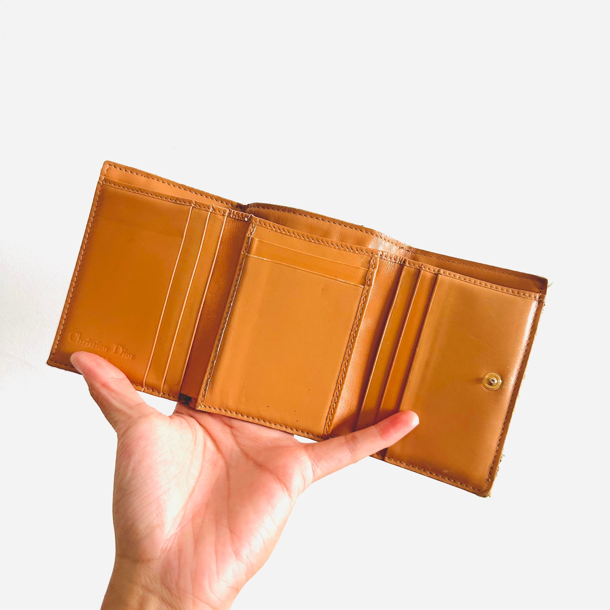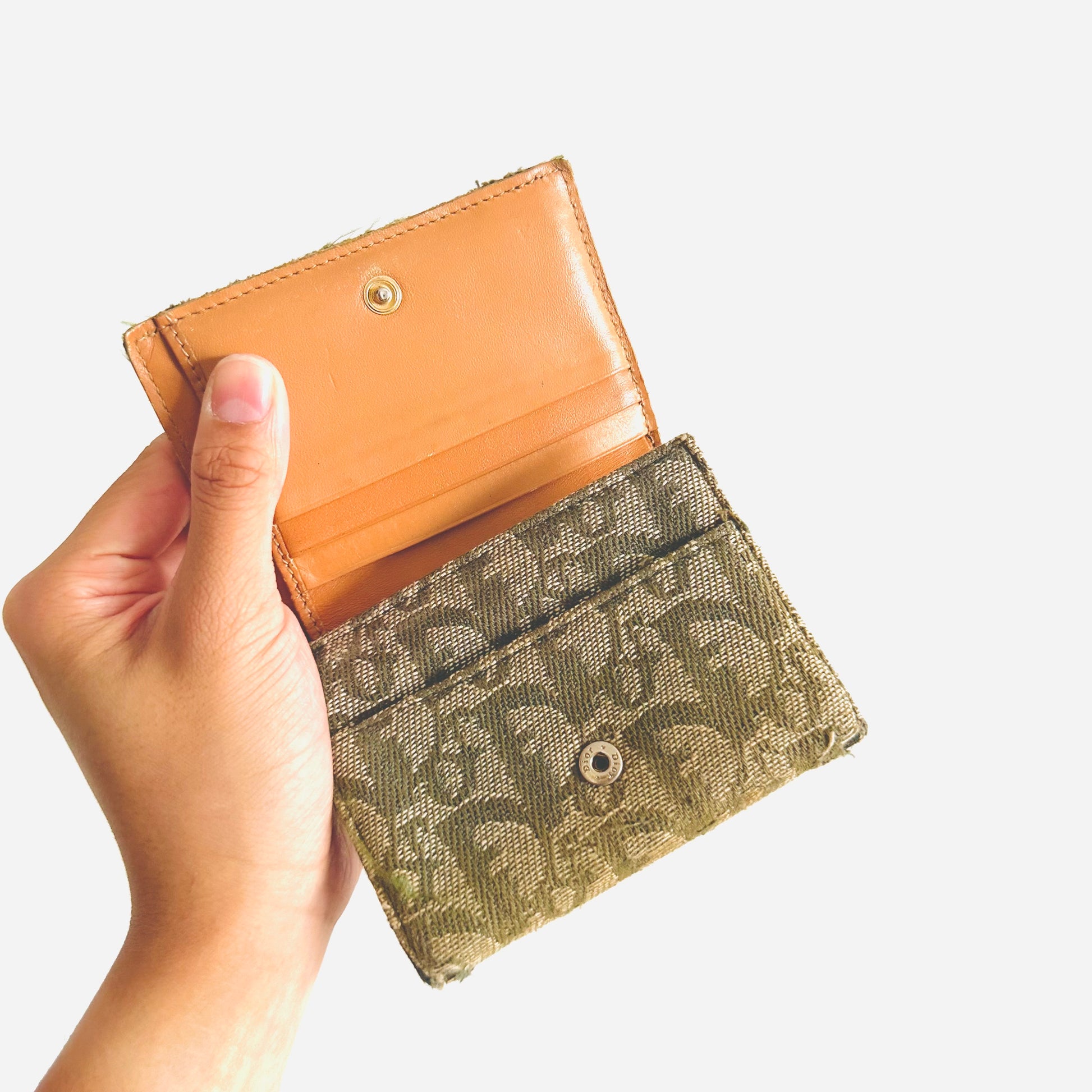 Christian Dior CD Khaki / Brown GHW Saddle Lotus Oblique Monogram Logo Flap Trifold Compact Wallet