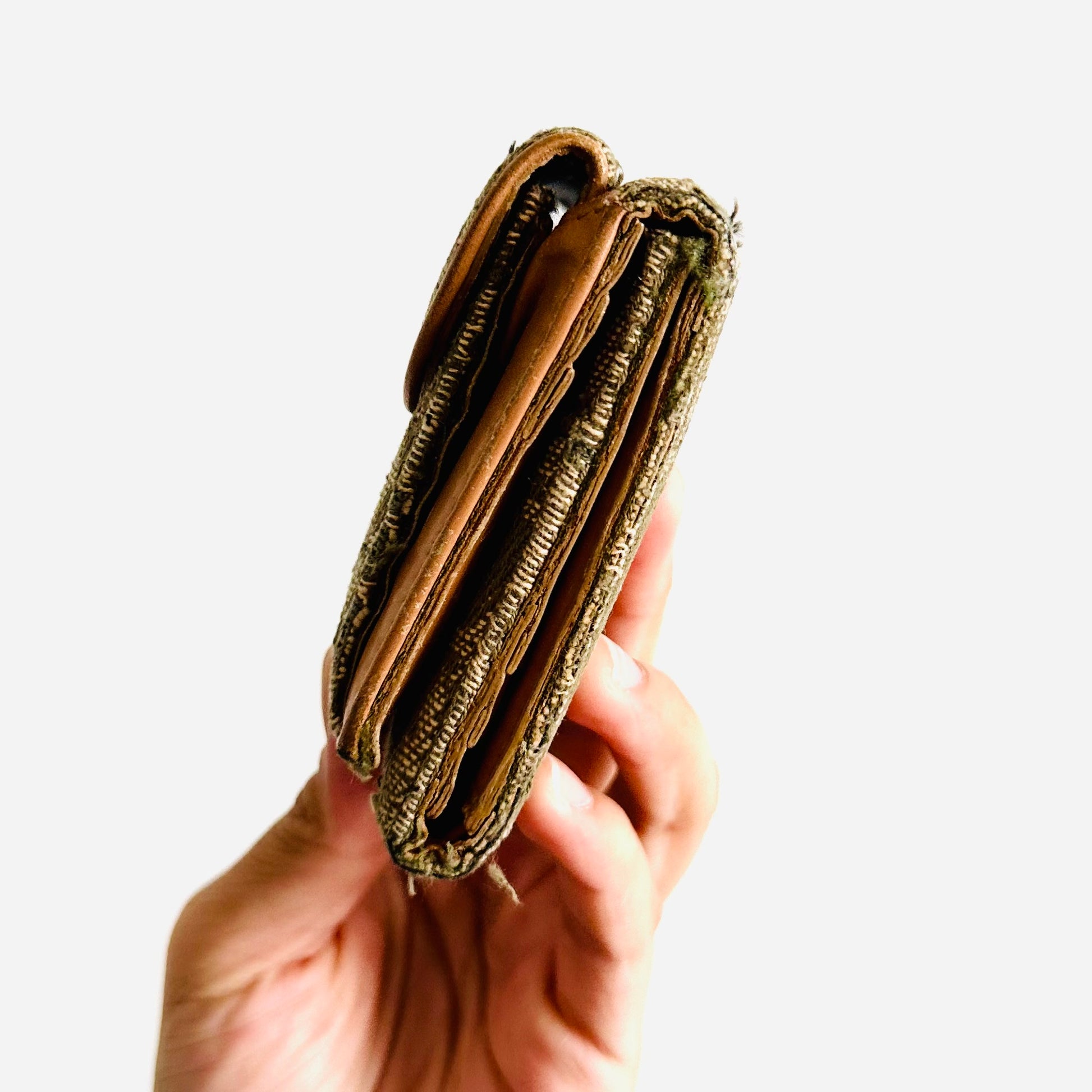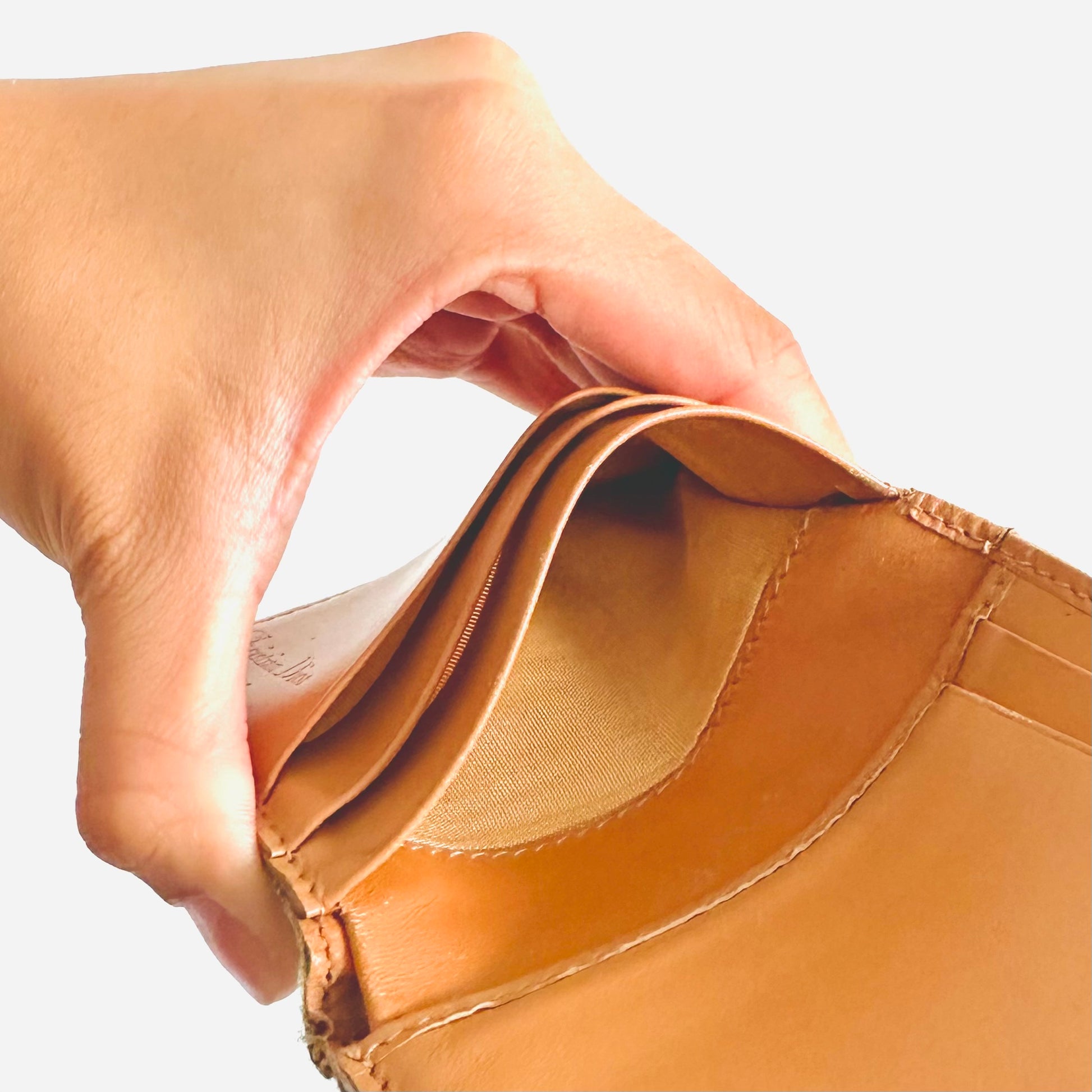 This has flap button closures, coin pocket, card slots, notes compartment and slip pockets. This measures 10.5x8x2cm. This comes with clearly engraved hardware, front logo, interior stamping and serial number.