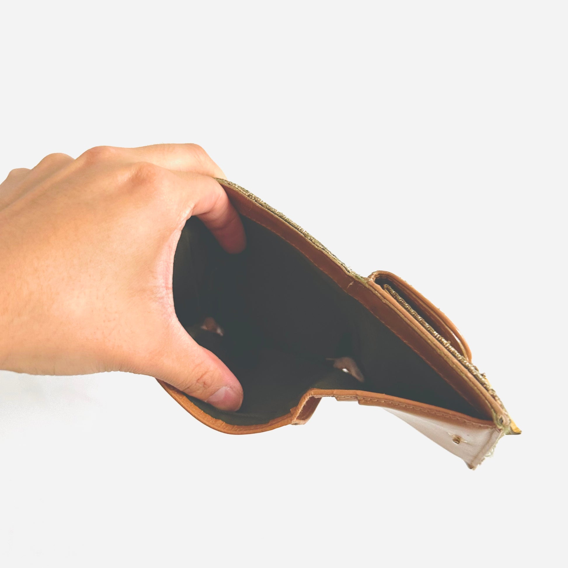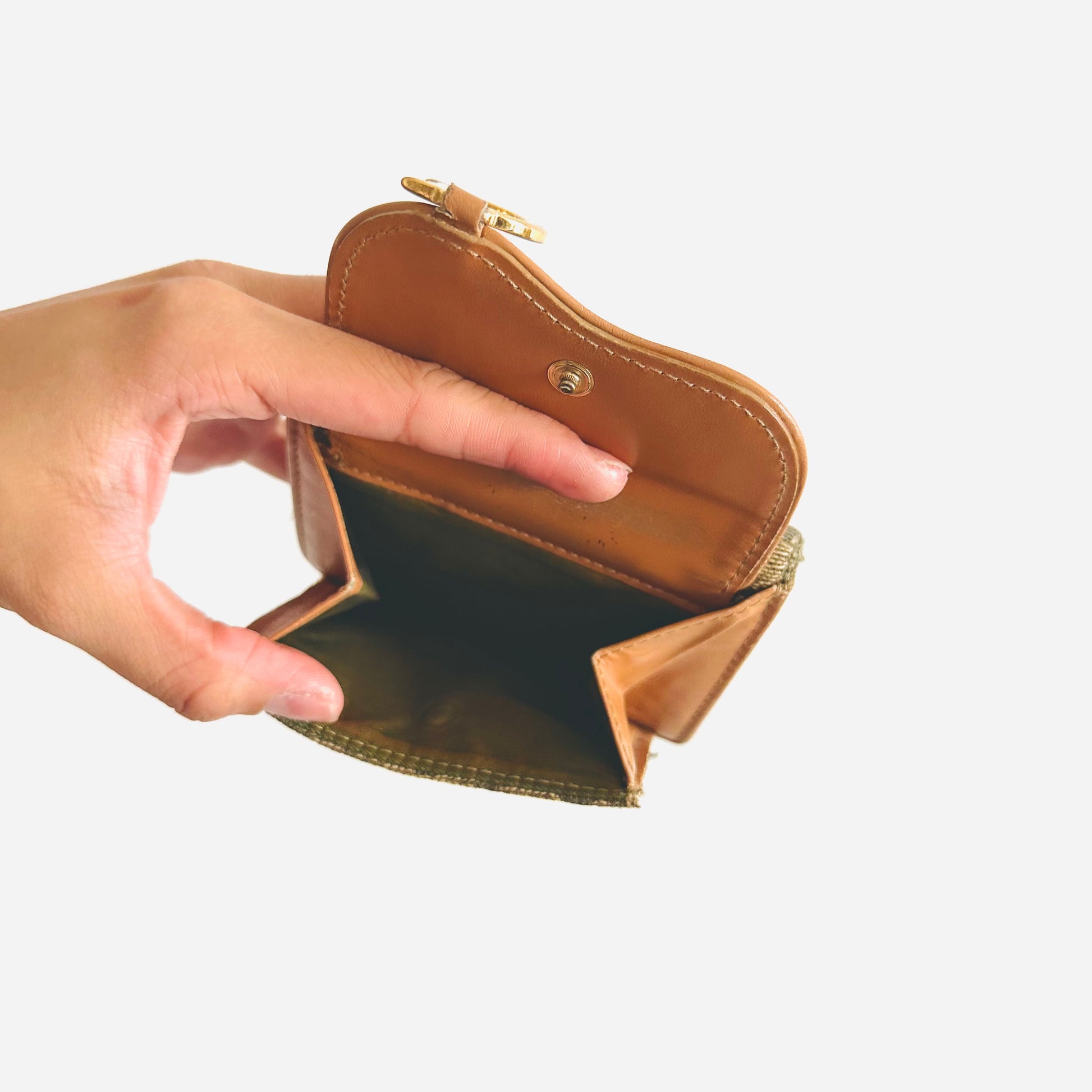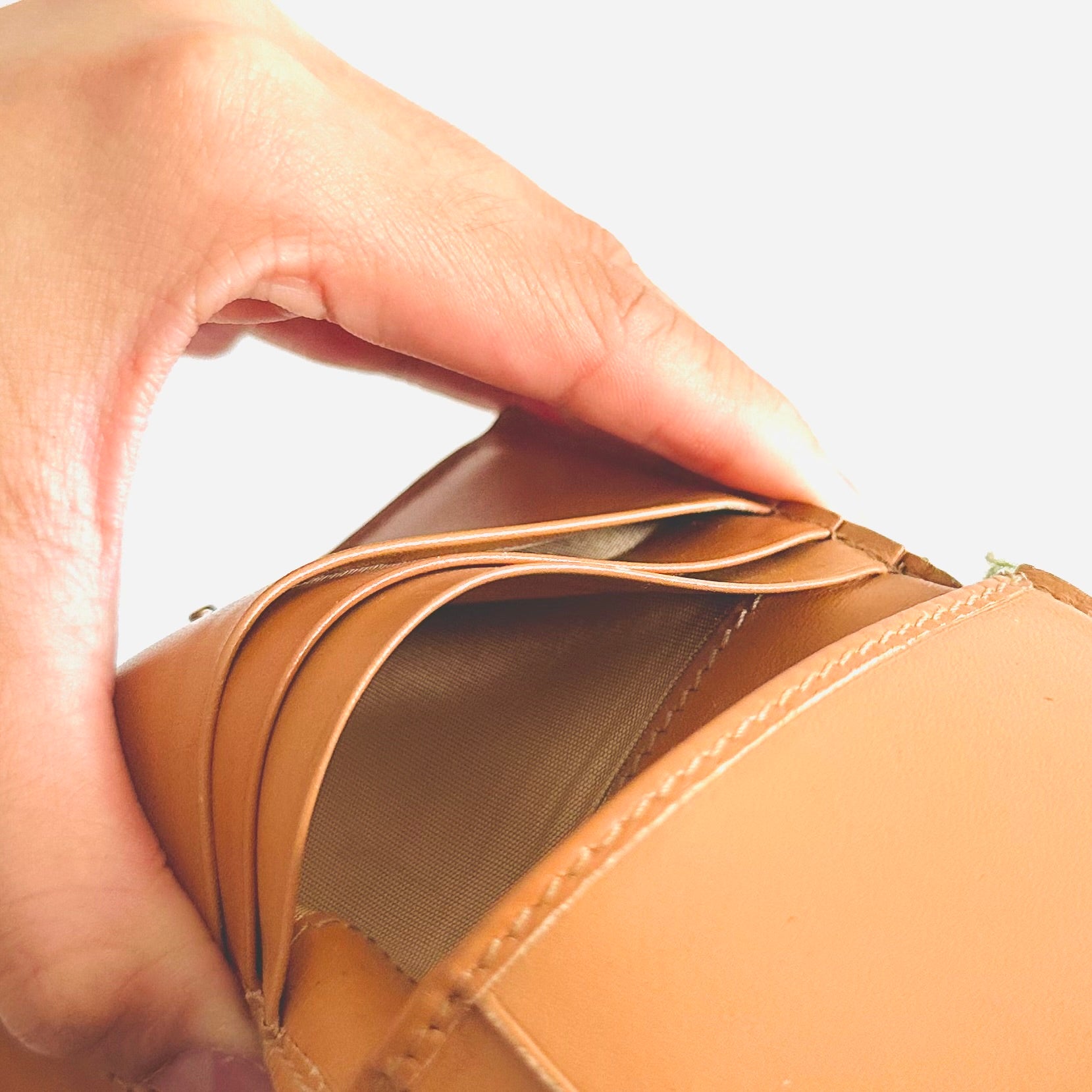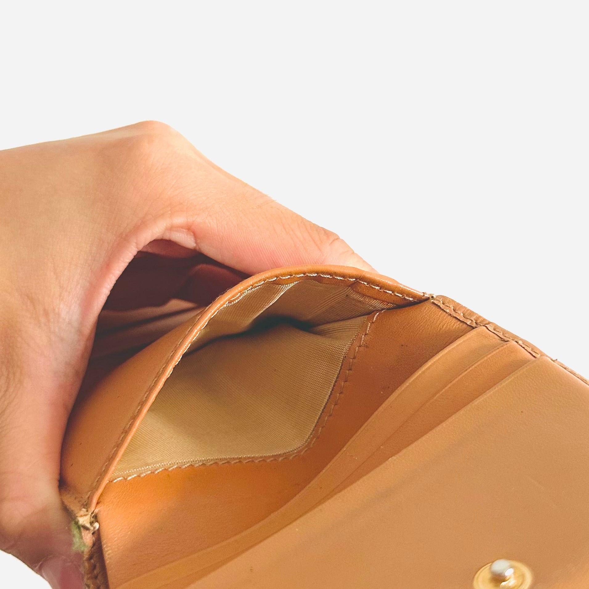 Preloved 9.3/10. This has flap button closures, coin pocket, card slots, notes compartment and slip pockets. This measures 10.5x8x2cm.
