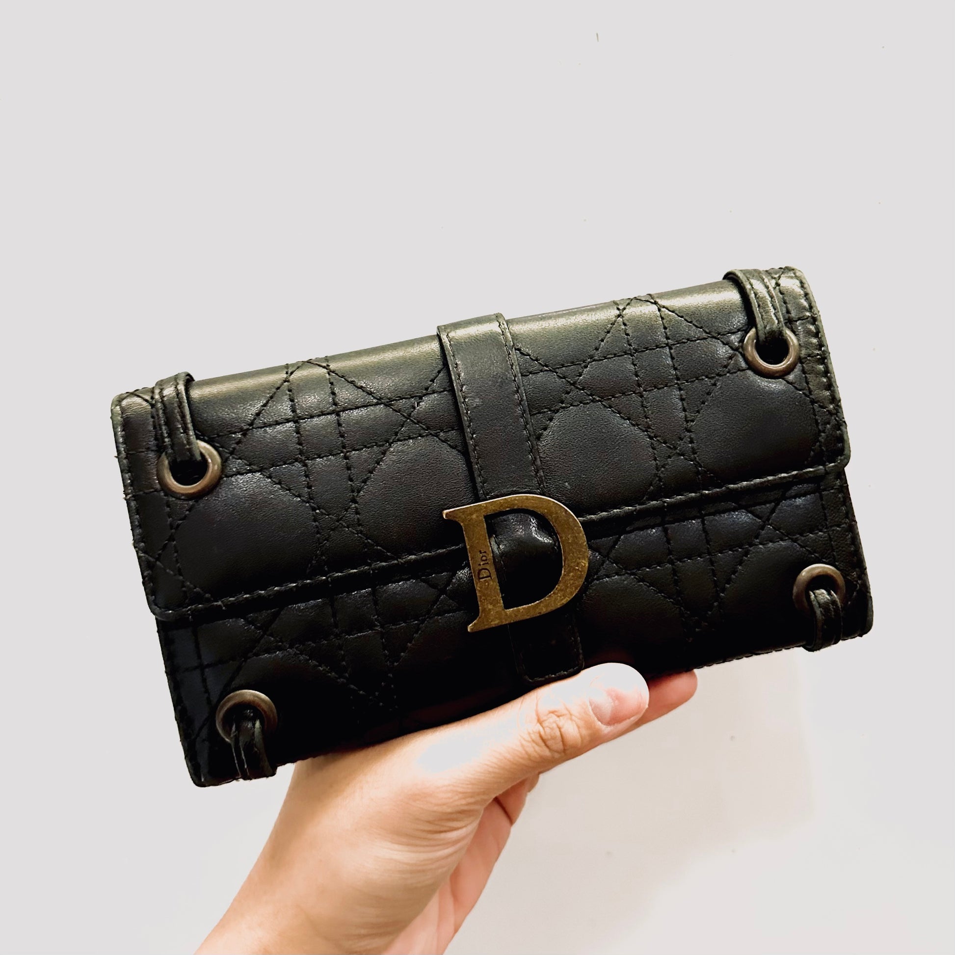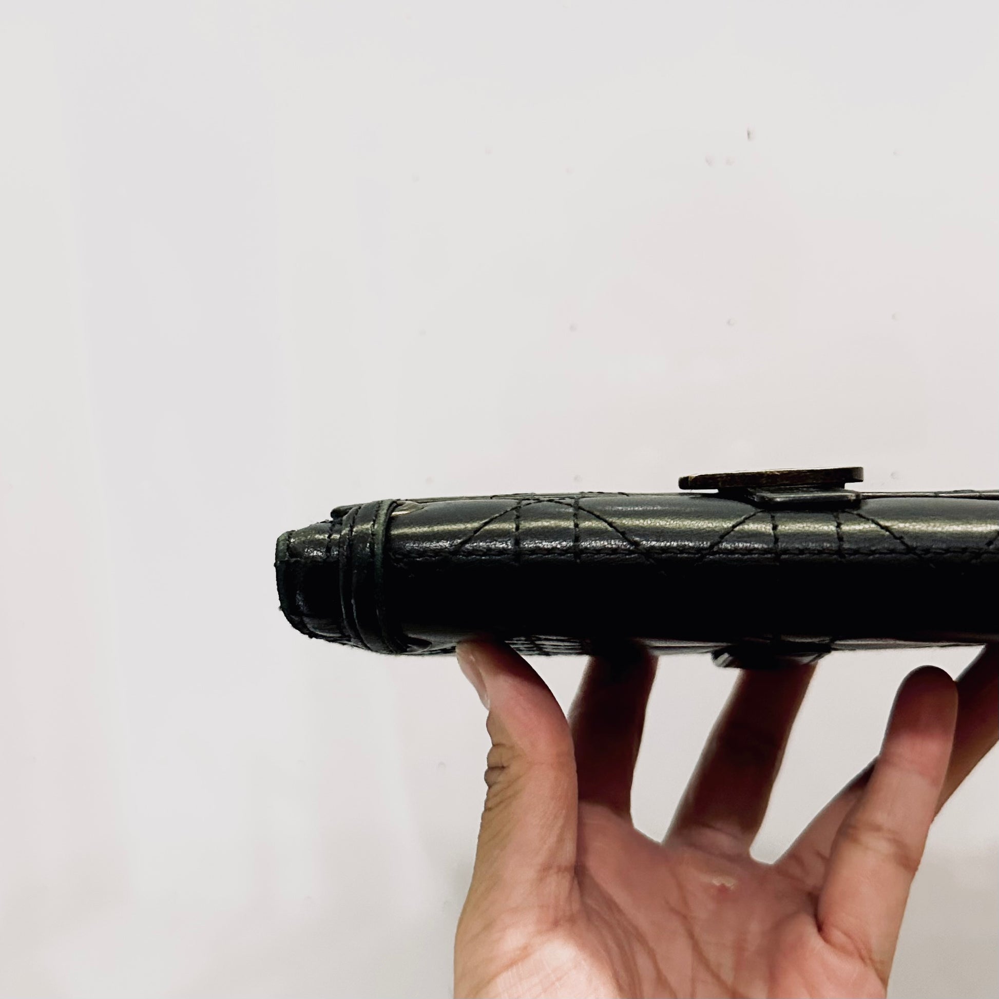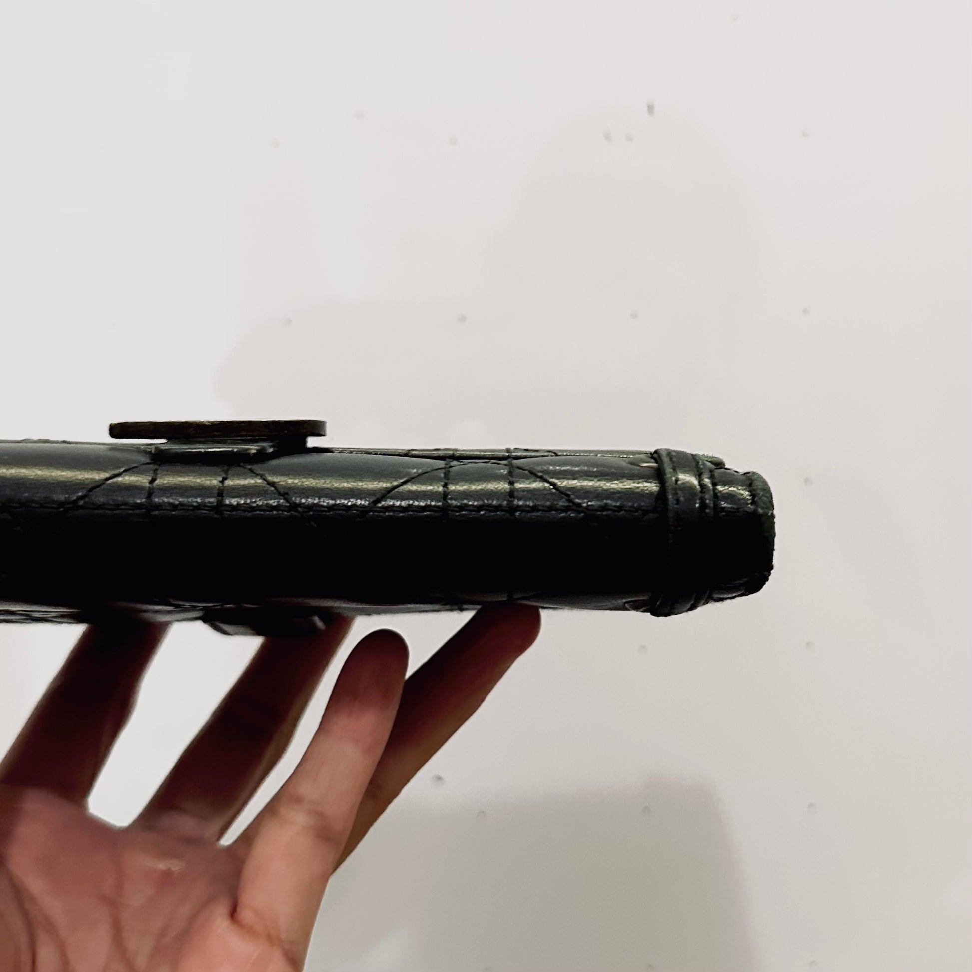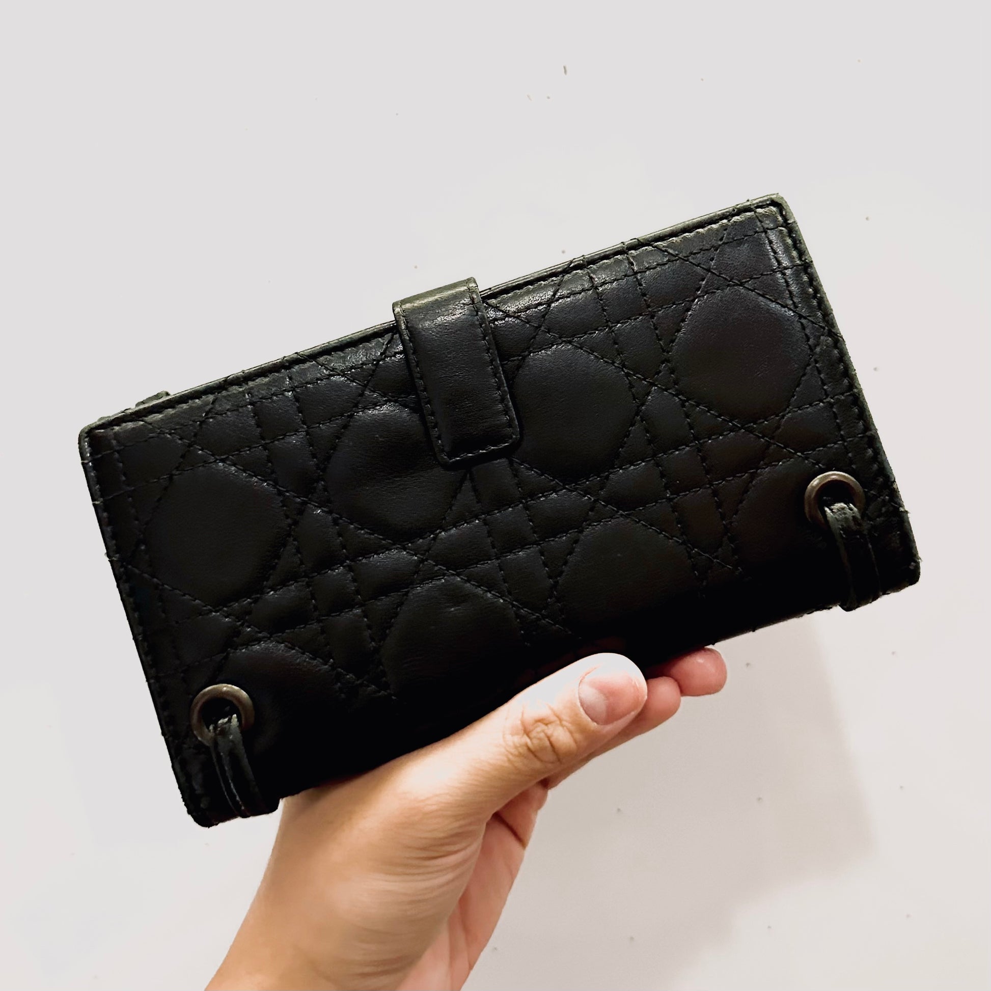 Christian Dior CD Lady Dior Black Cannage Quilted Lambskin Giant Monogram Logo Flap Bifold Long Wallet