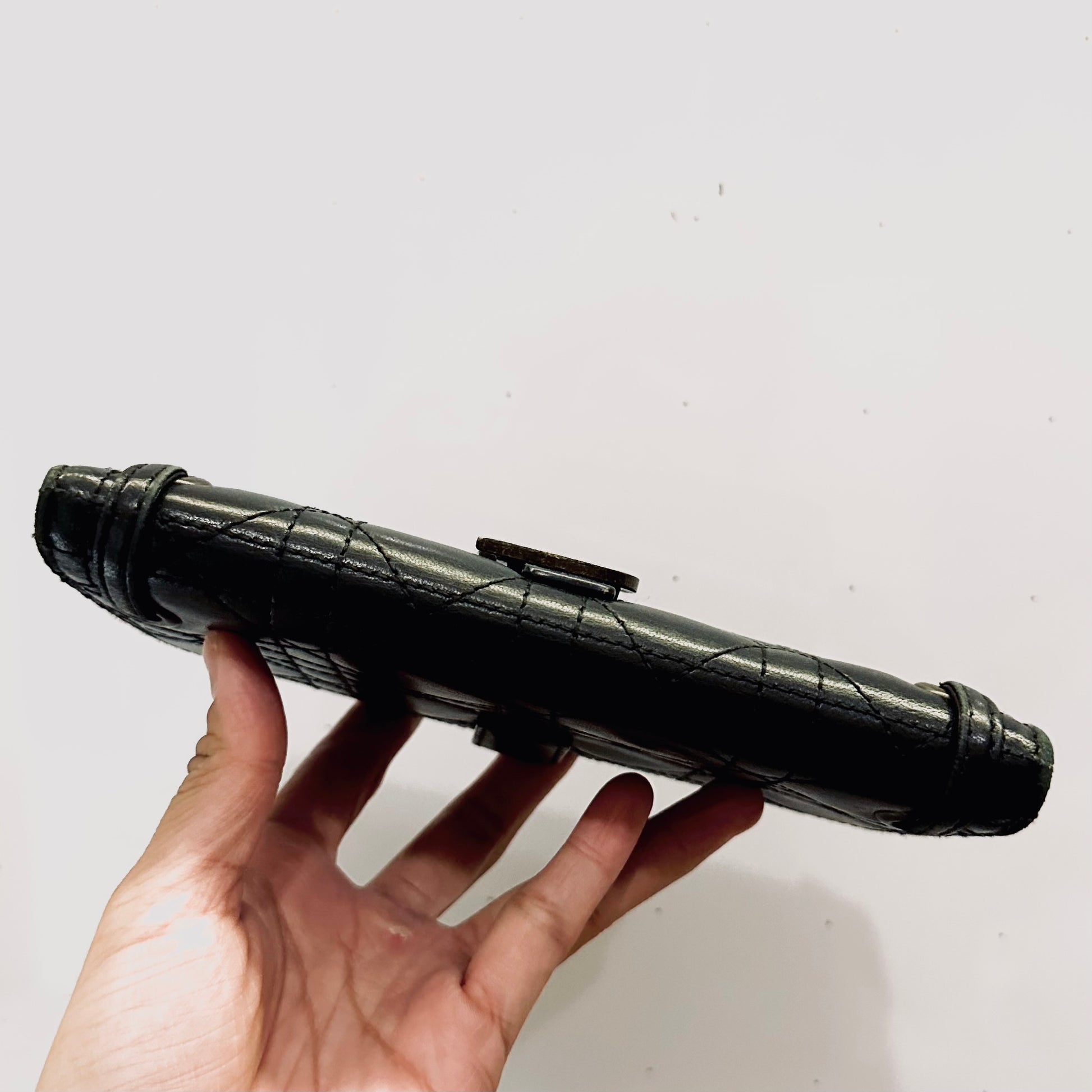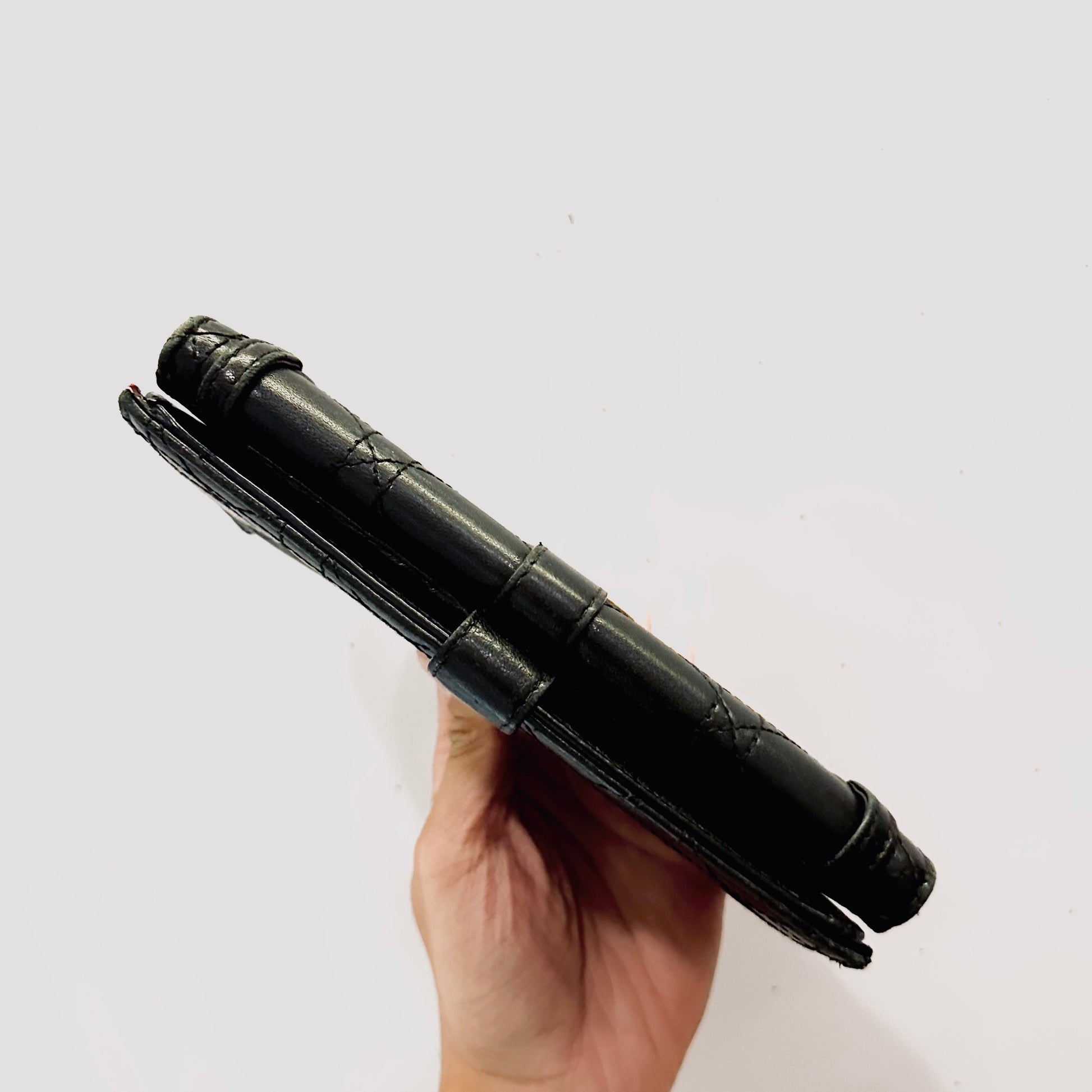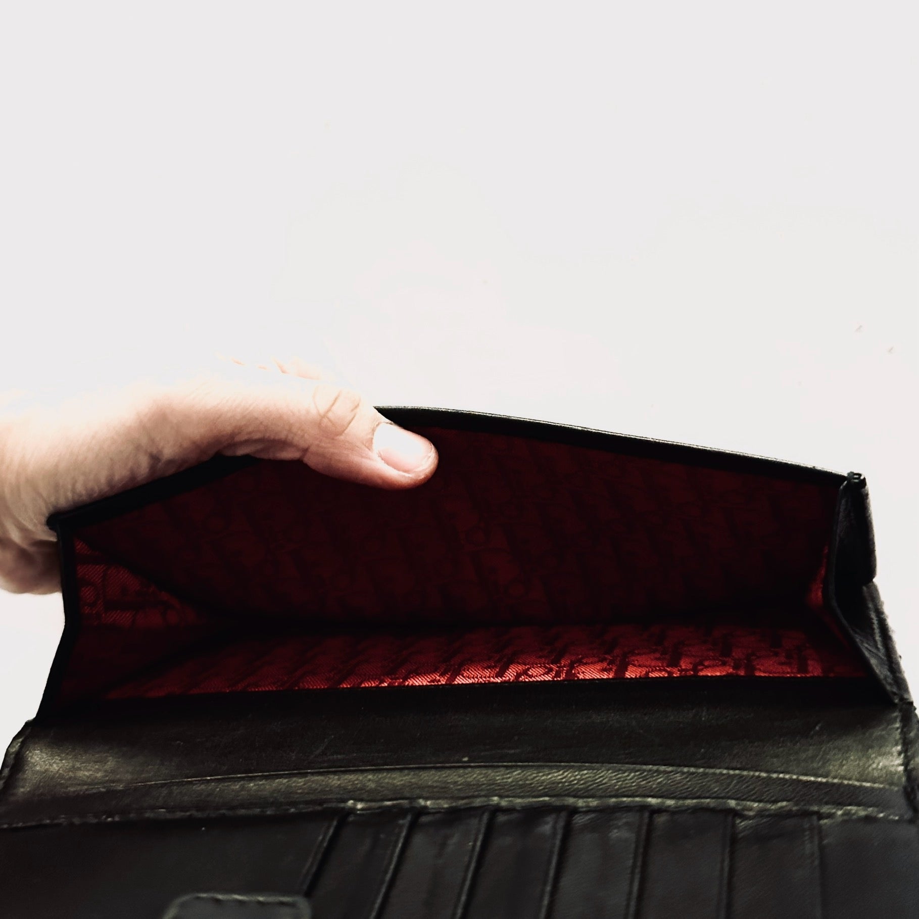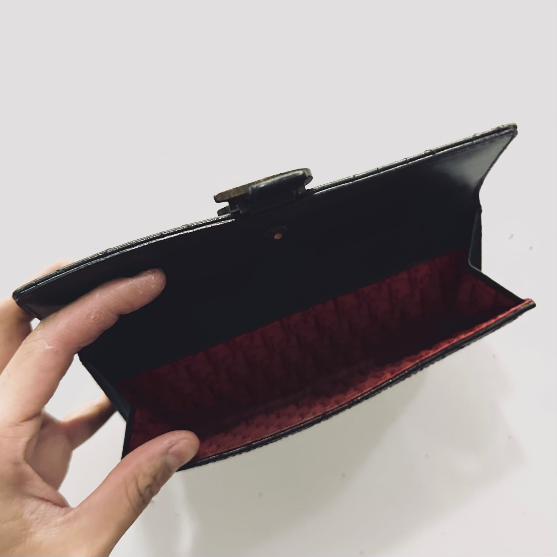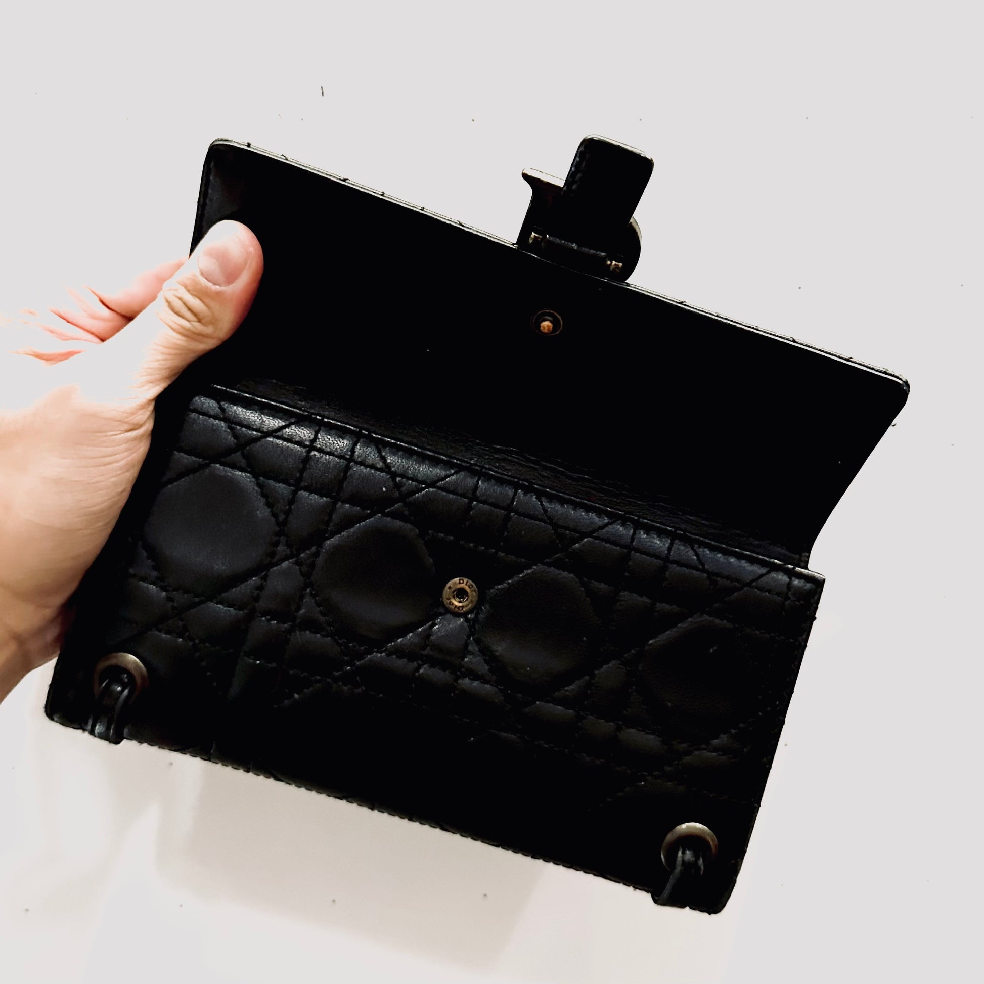 Christian Dior CD Lady Dior Black Cannage Quilted Lambskin Giant Monogram Logo Flap Bifold Long Wallet