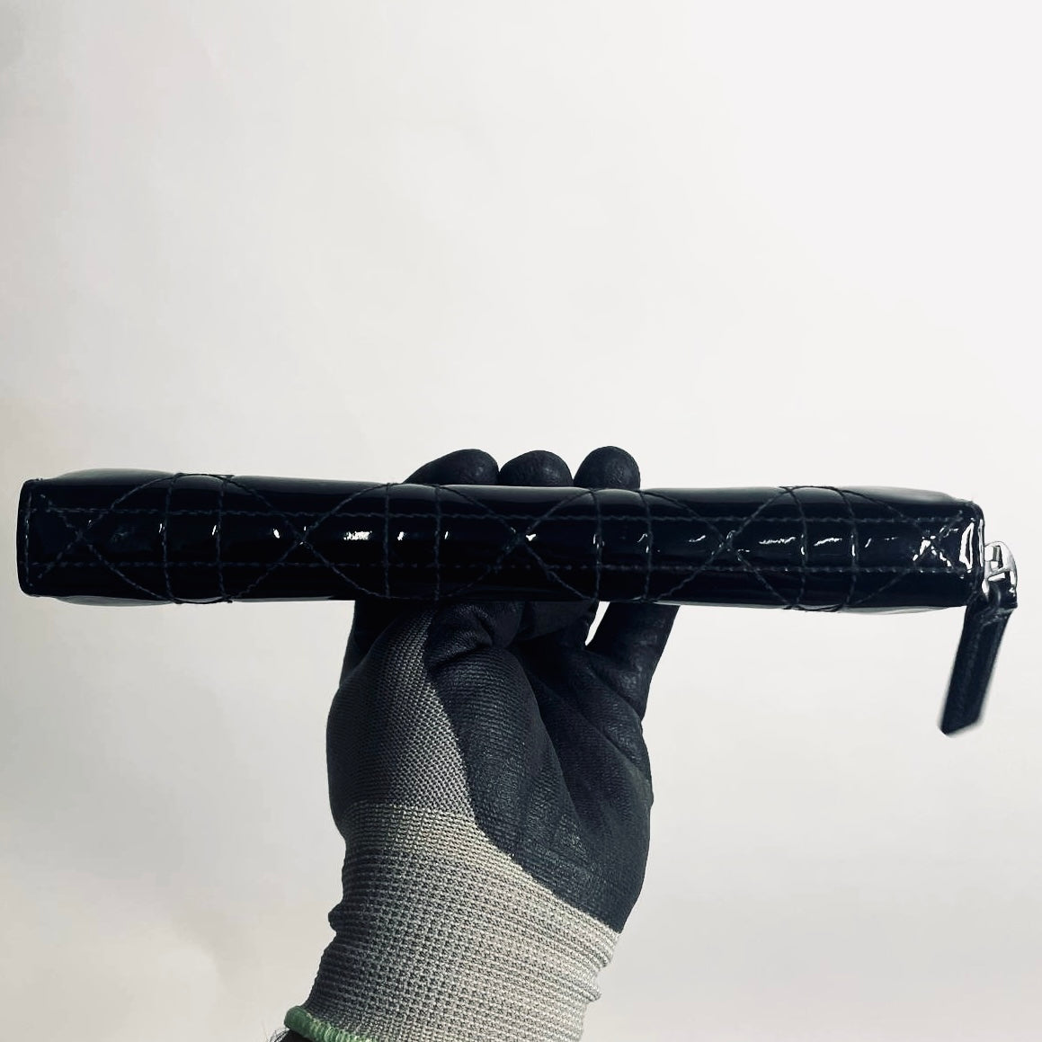Christian Dior CD Lady Dior Black Cannage Quilted Patent Monogram Logo Long Zippy Zip Around Wallet
