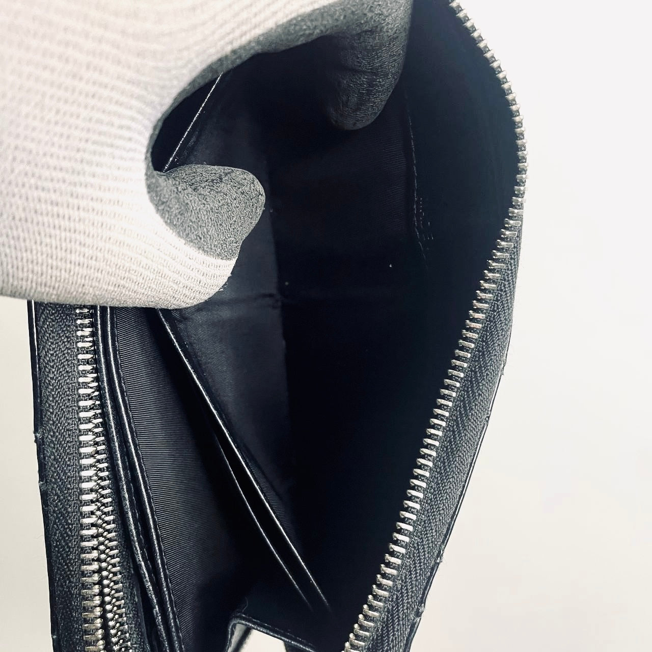 Preloved 9.5/10. This has a zip closure, central compartments, zip pocket, card slots and slip pockets. This measures 18.5x10x2cm.
