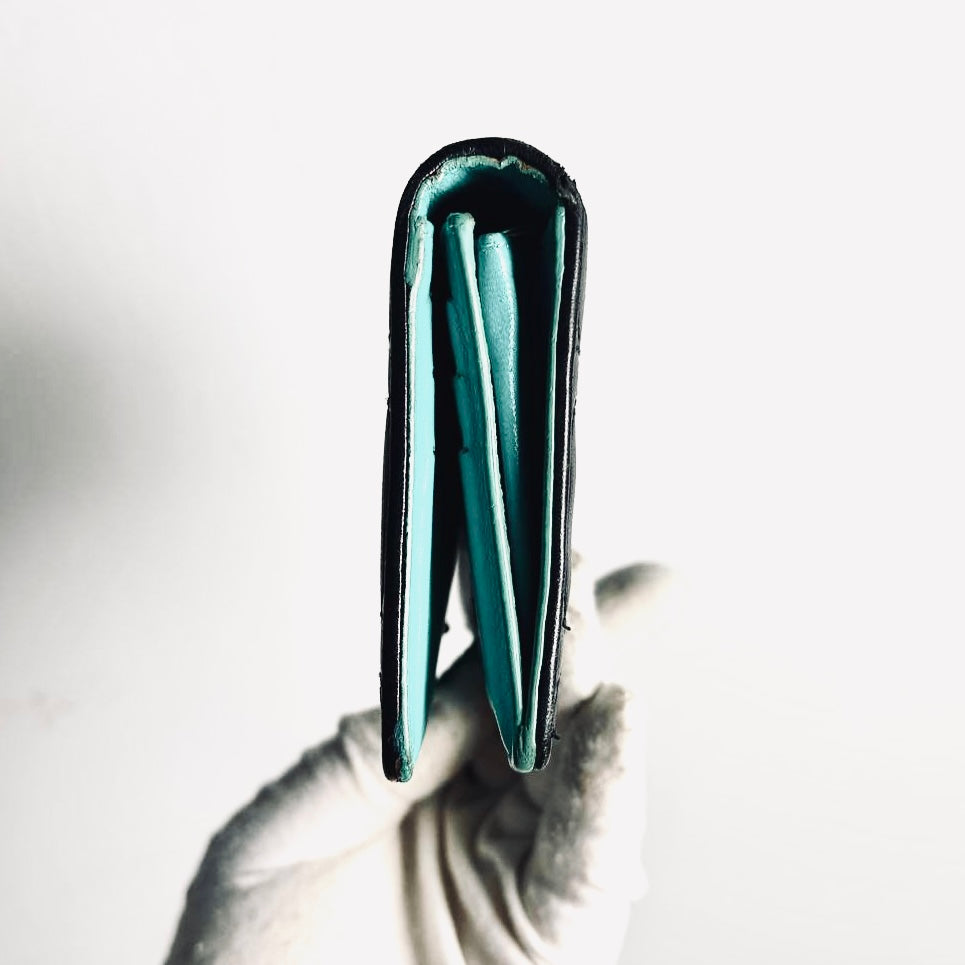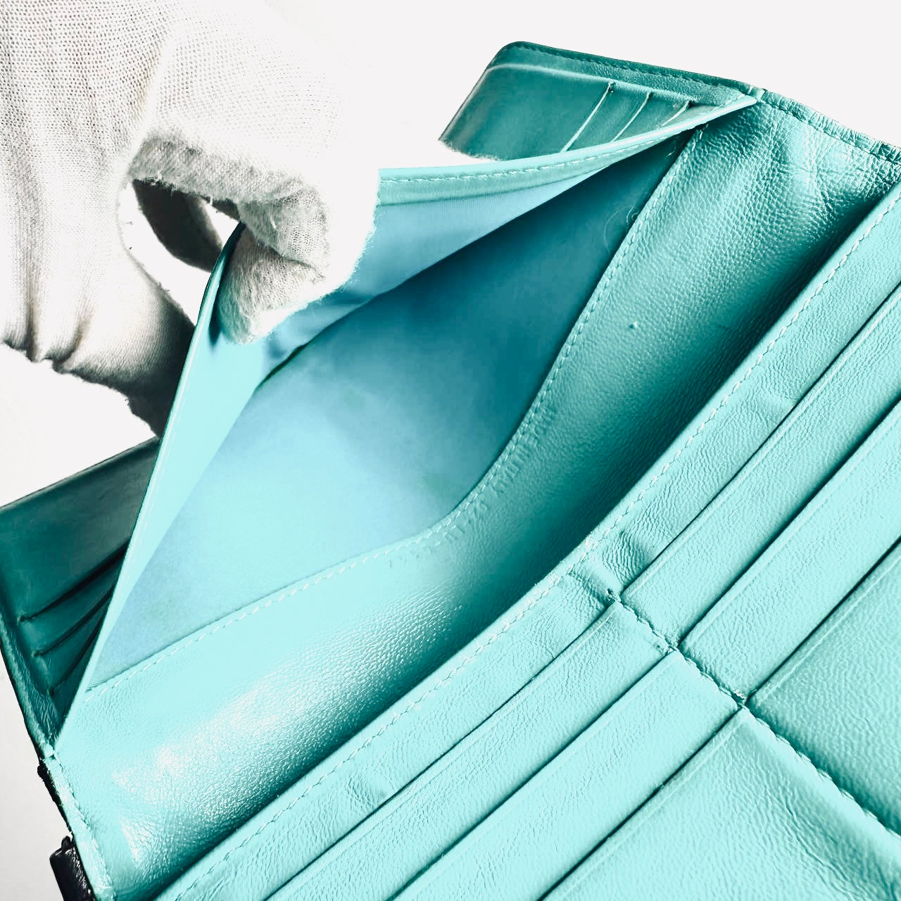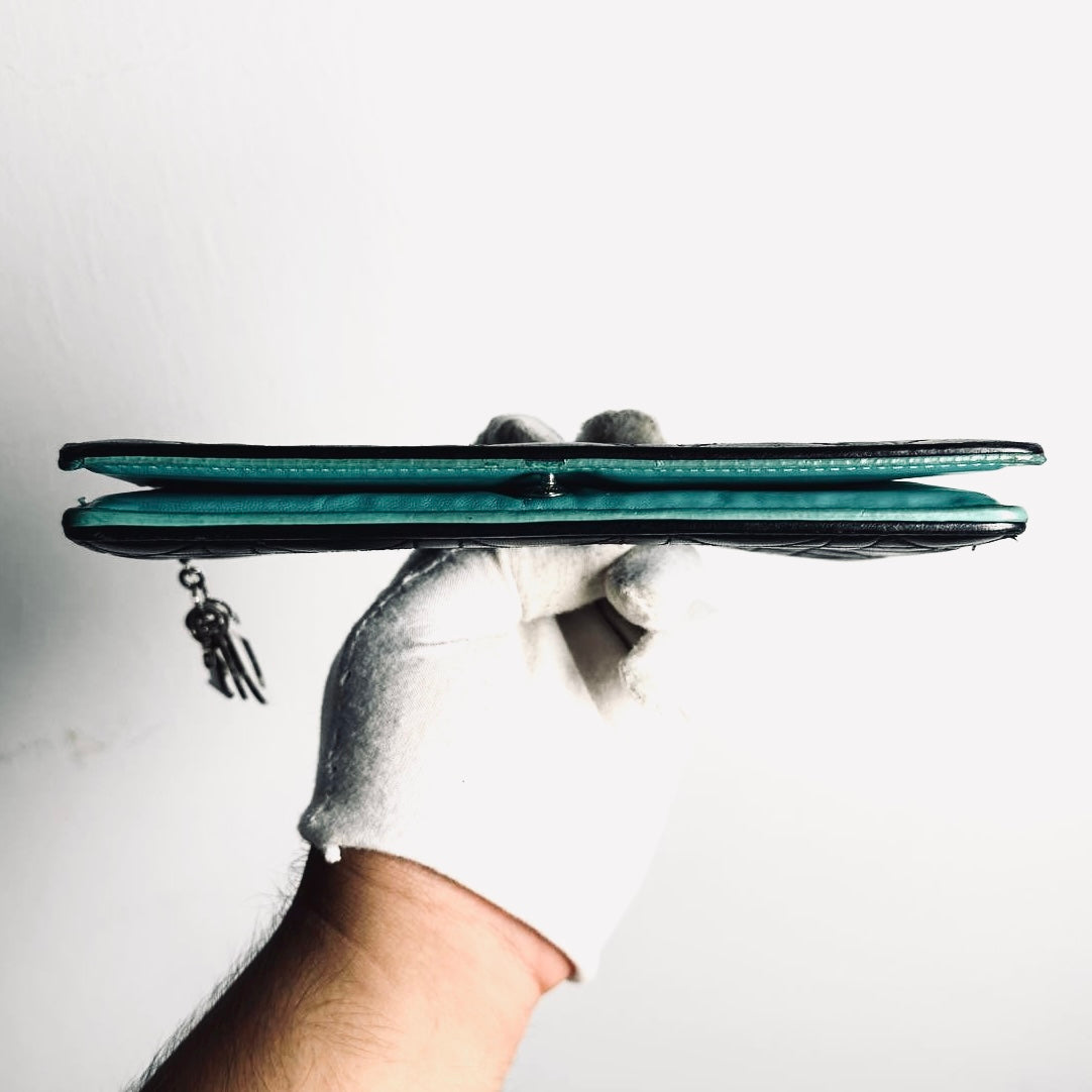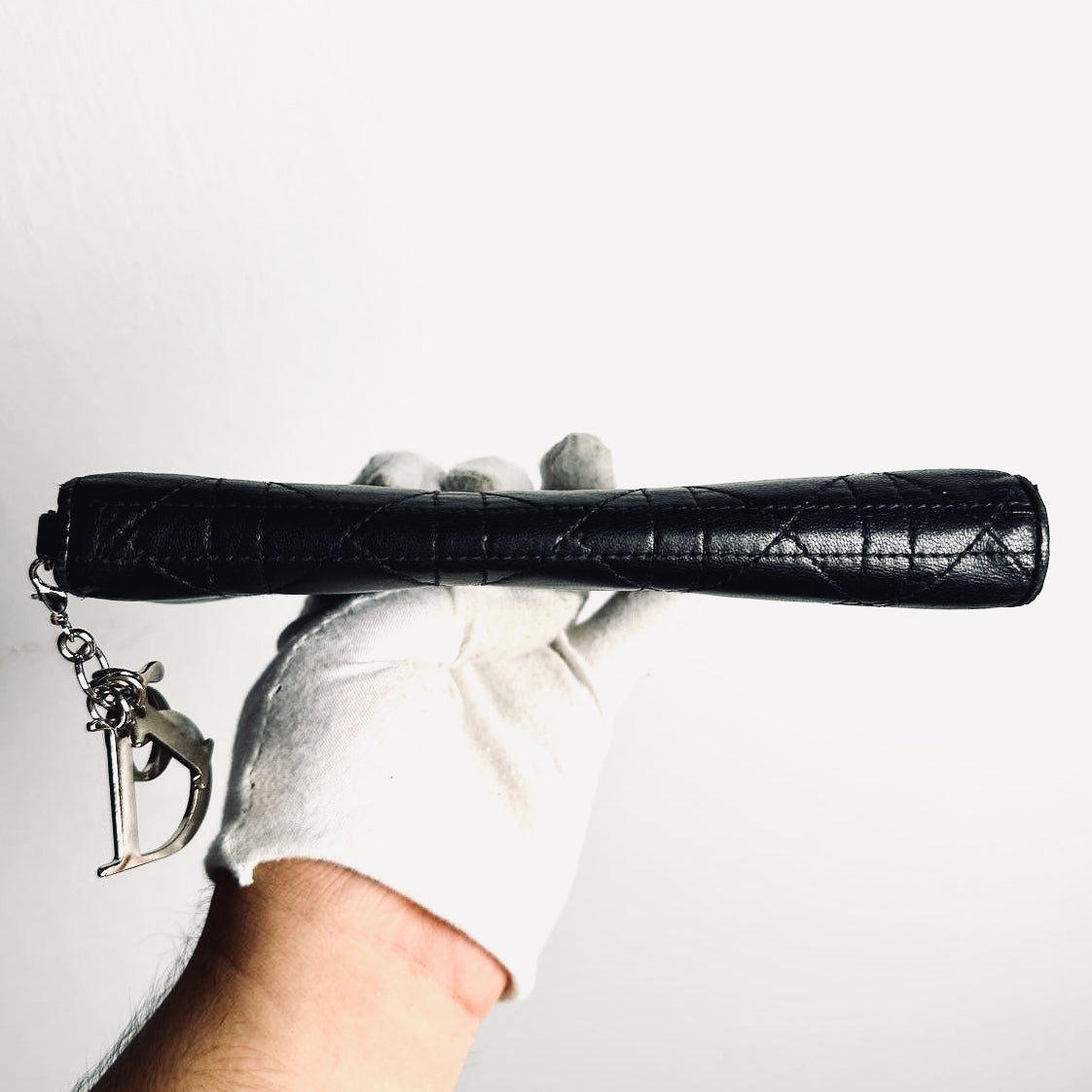 Christian Dior CD Lady Dior Black / Turquoise Charms Monogram Logo Cannage Quilted Lambskin Long Flap Bifold Wallet