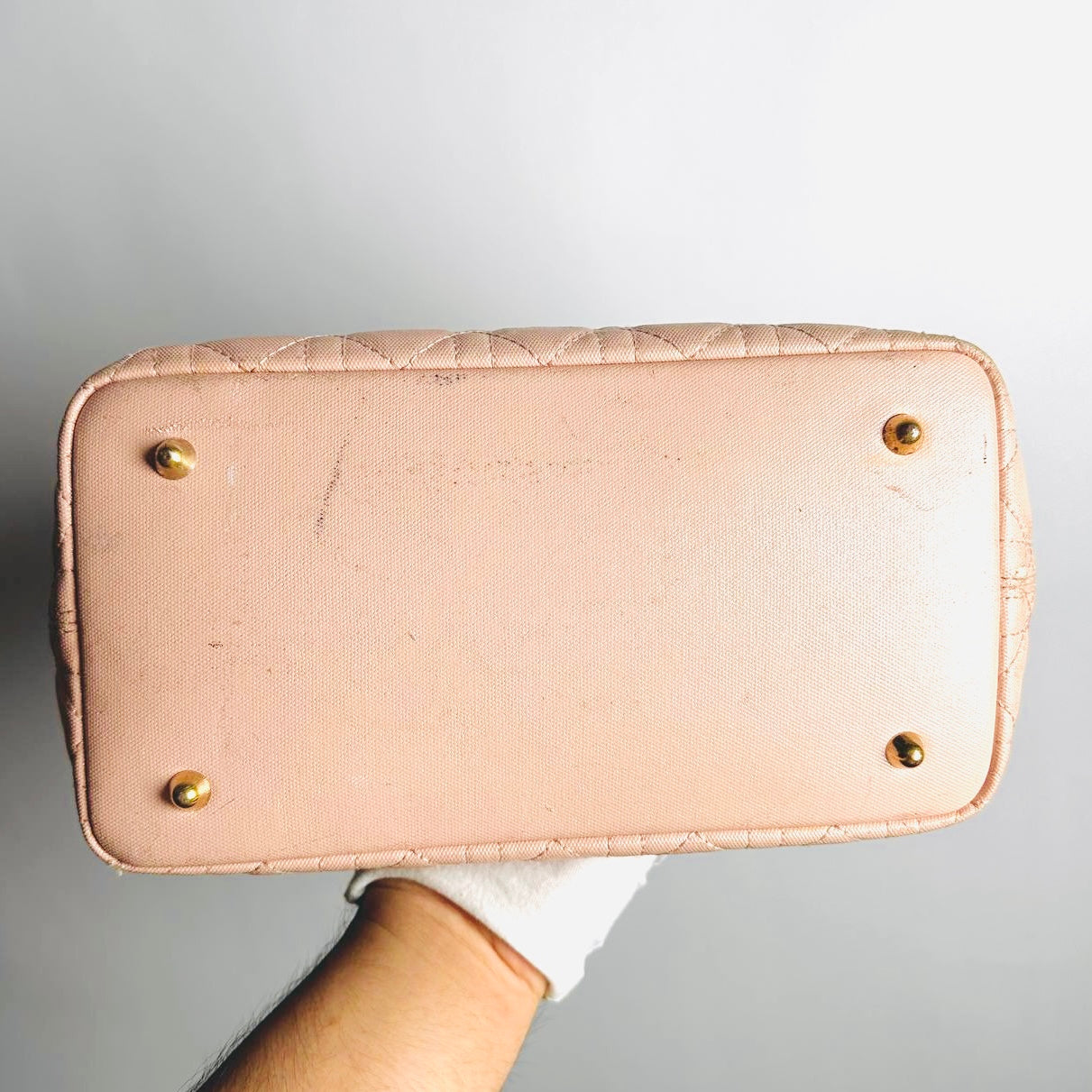 Christian Dior CD Lady Dior Blush Powder Pink GHW Cannage Quilted Small Shopper Shoulder Tote Bag