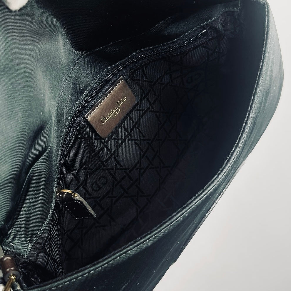 Christian Dior CD Malachite Jade Green Malice GHW Monogram Logo & Leather Hobo Baguette Flap Pochette Shoulder Bag