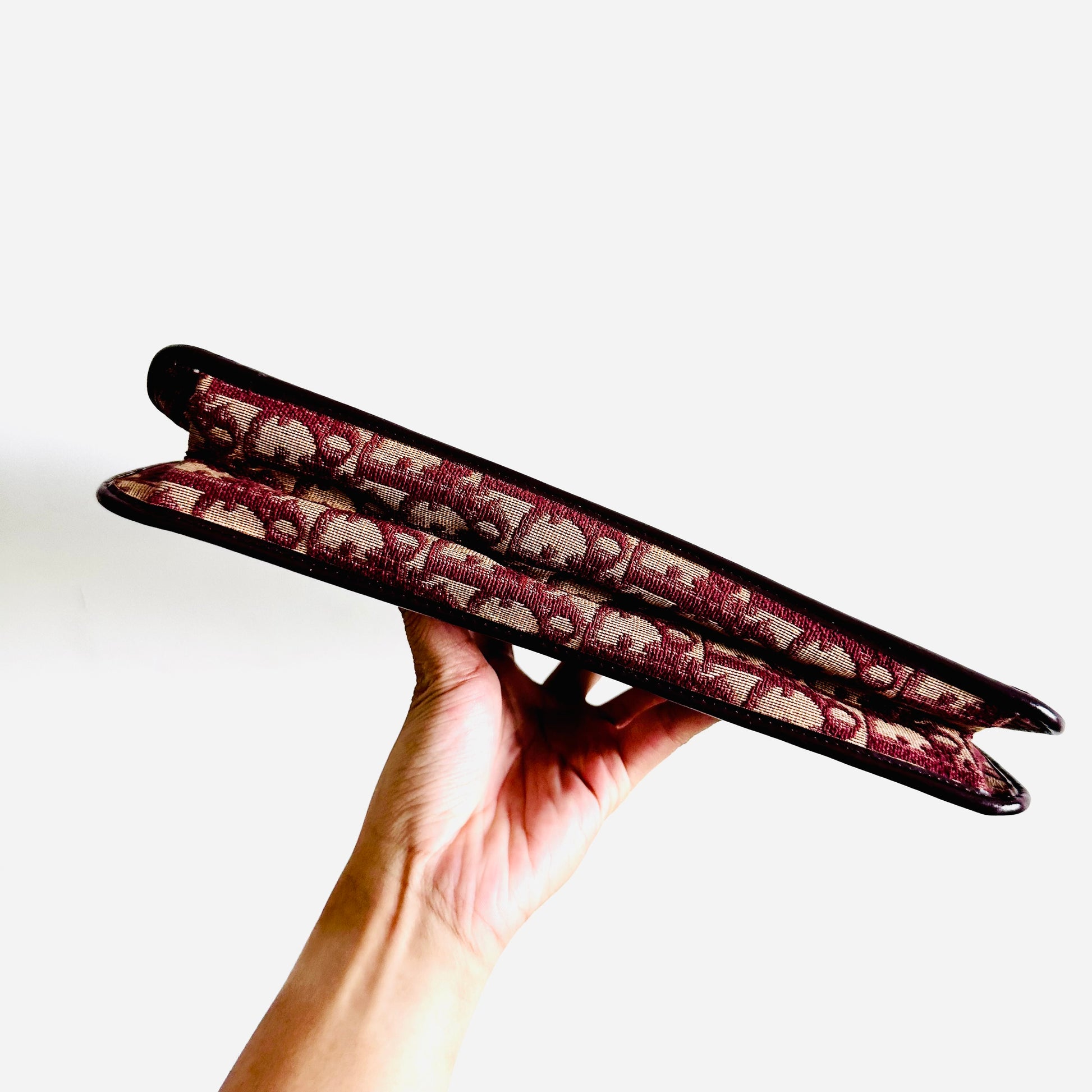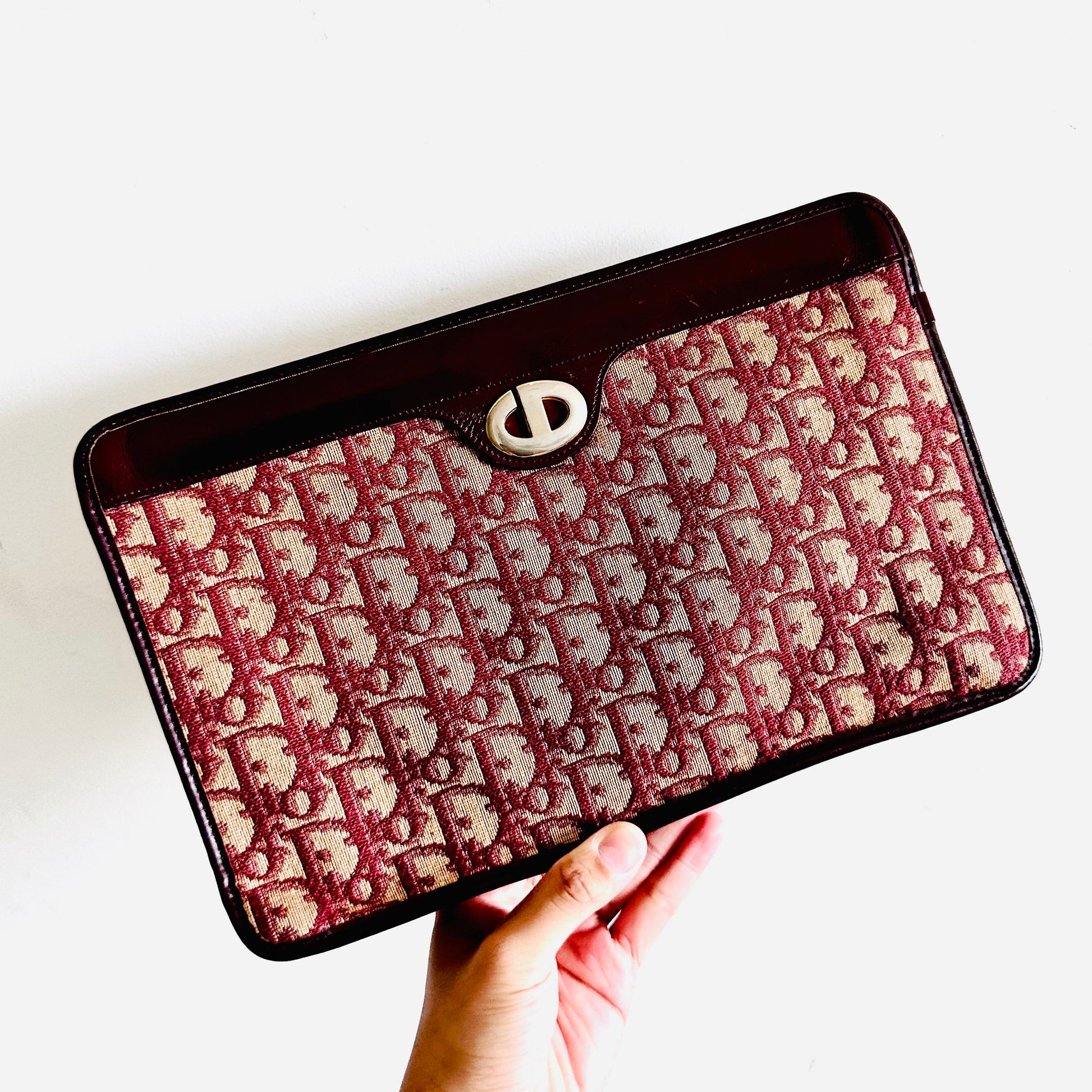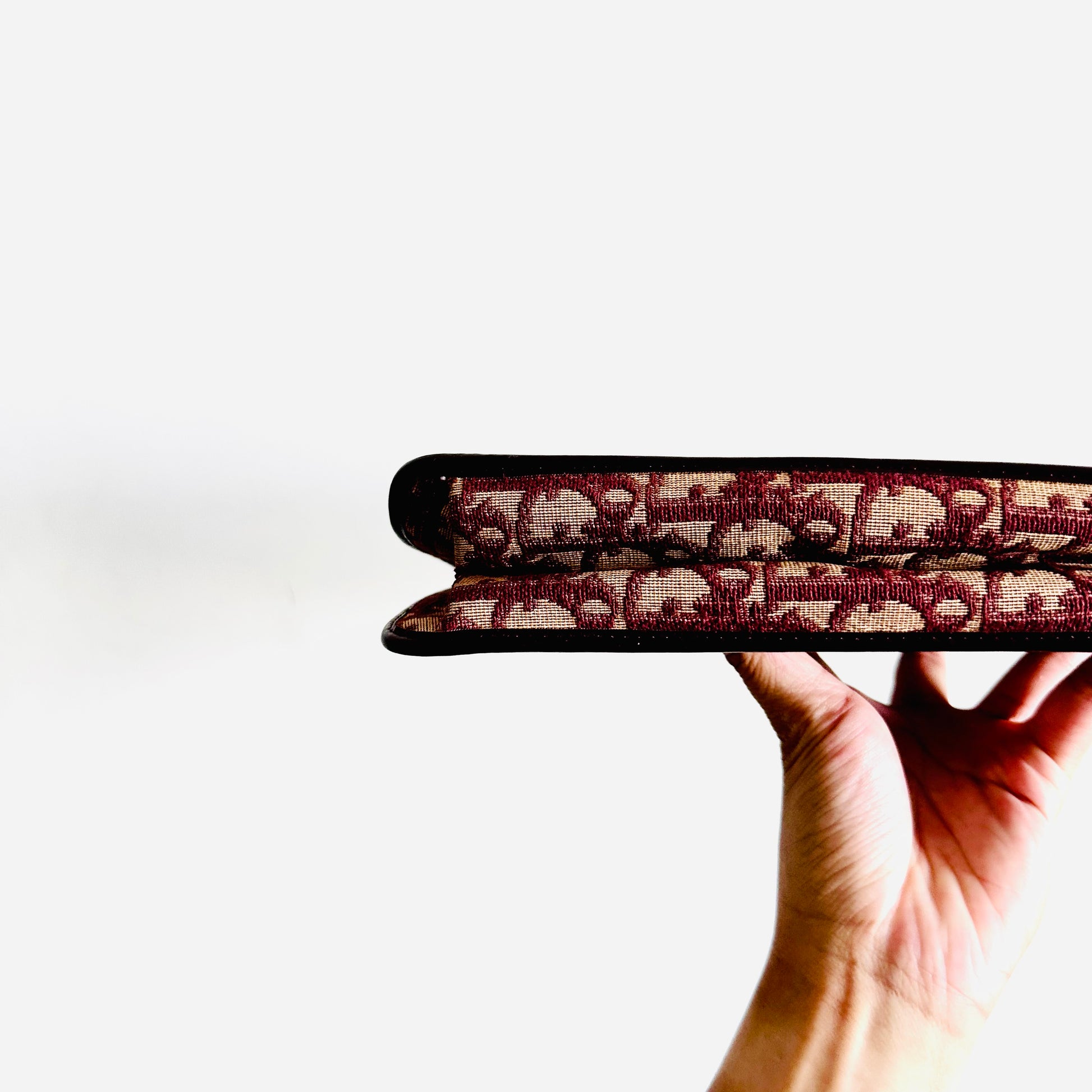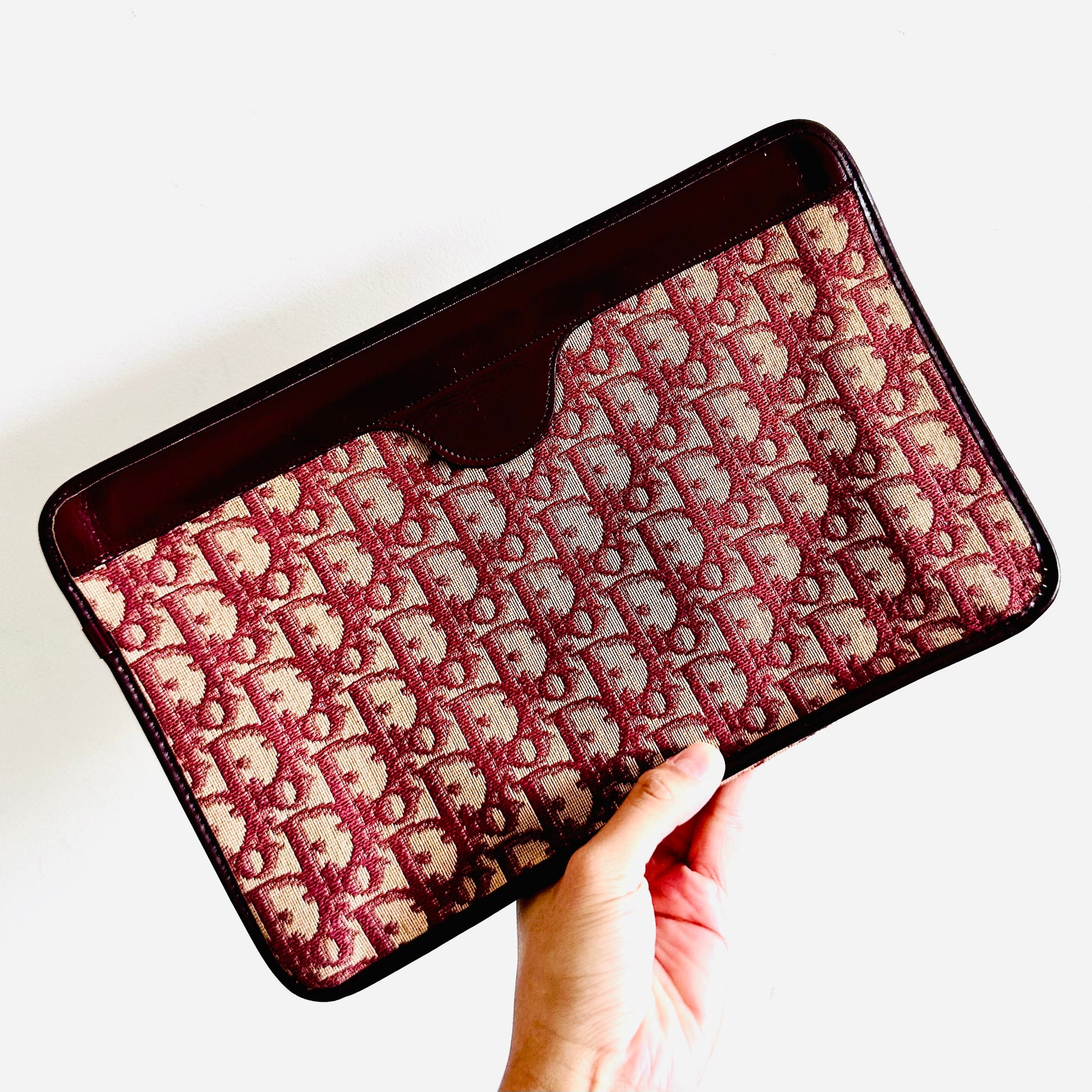 Christian Dior CD Maroon Red GHW Oblique Monogram Logo Clutch Pouch Case