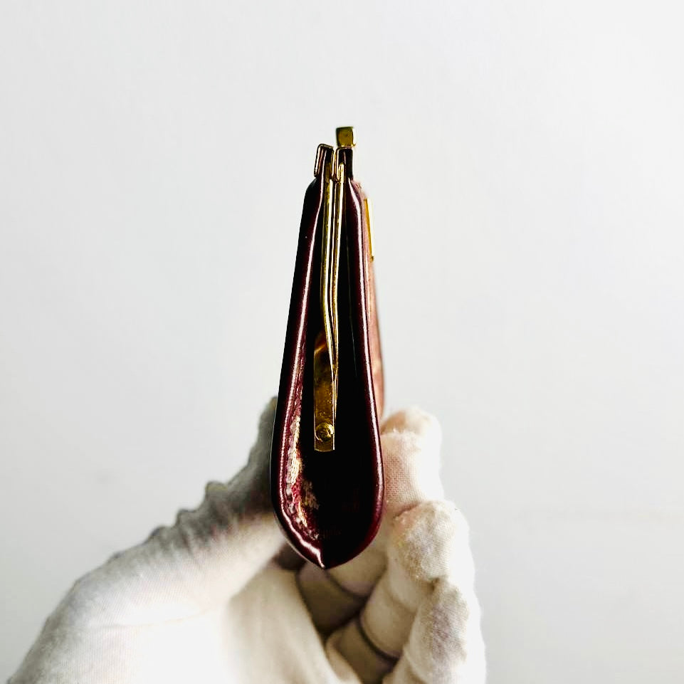 Christian Dior CD Maroon Red GHW Oblique Monogram Logo Coin Purse Pouch Case Wallet