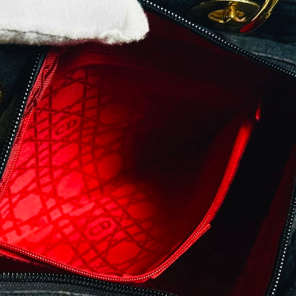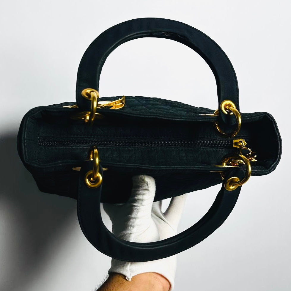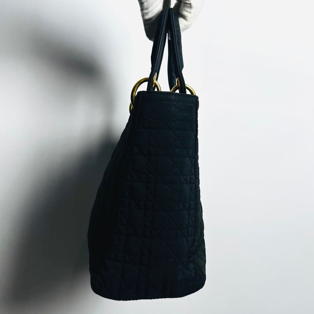 Christian Dior CD Medium Lady Dior Black GHW Quilted Cannage Jersey Fabric Top Handle Shopper Tote Bag