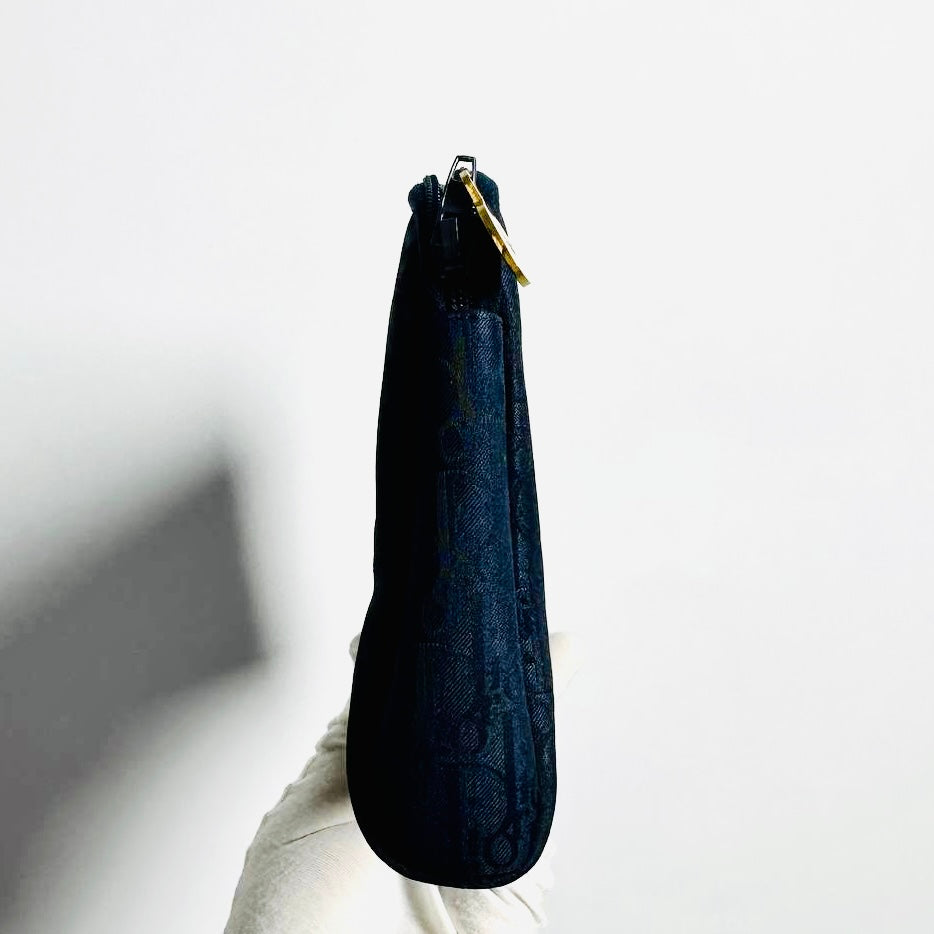 Christian Dior CD Navy Blue GHW Oblique Monogram Logo Clutch Case Pouch