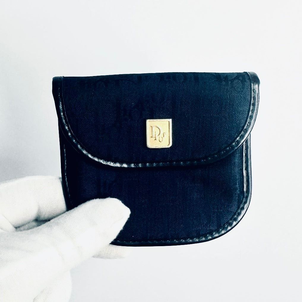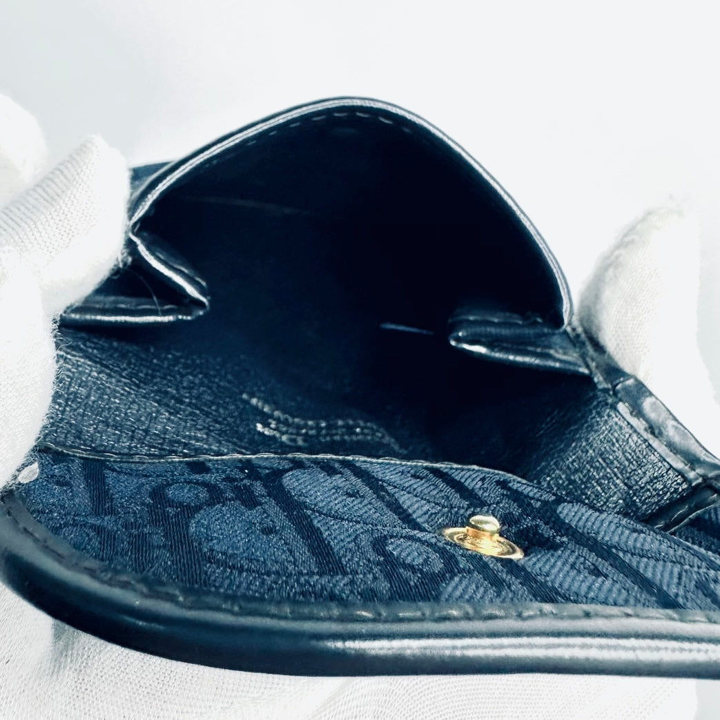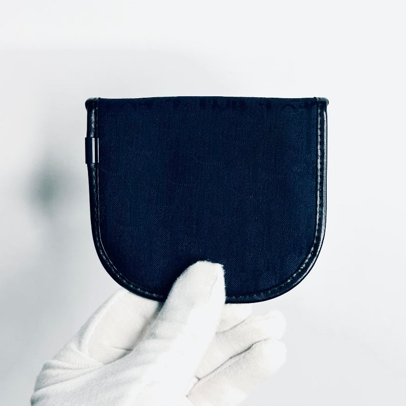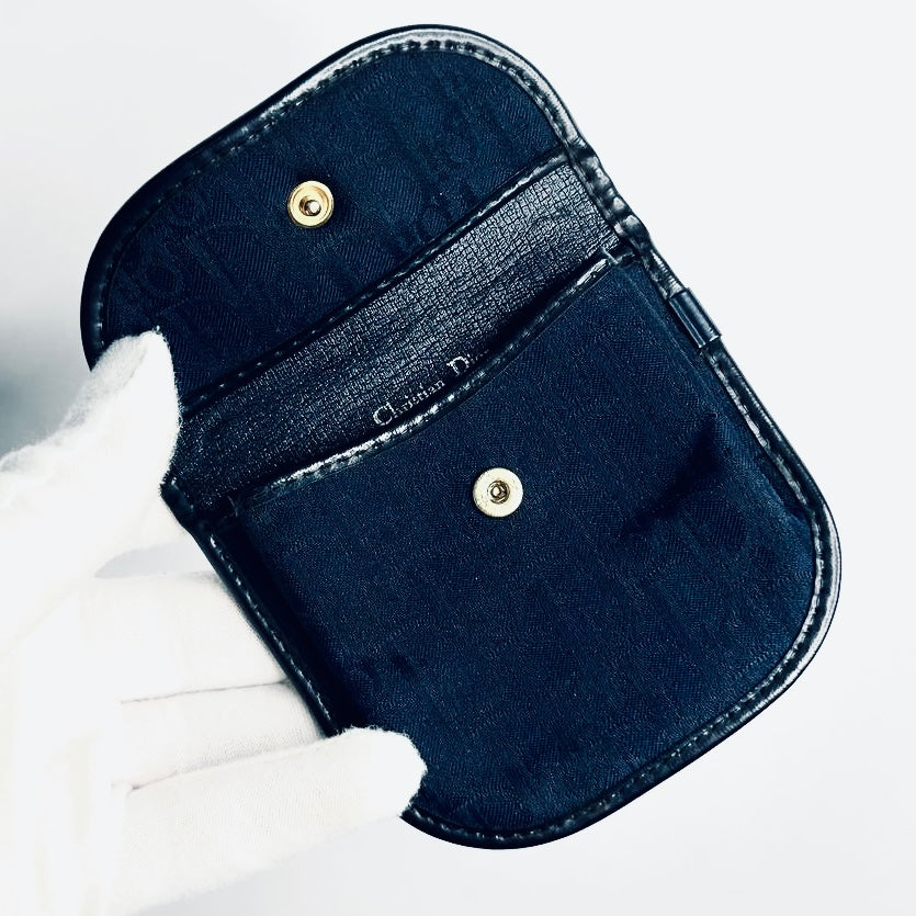 Christian Dior CD Navy Blue GHW Oblique Monogram Logo Flap Coin Pouch Case Wallet