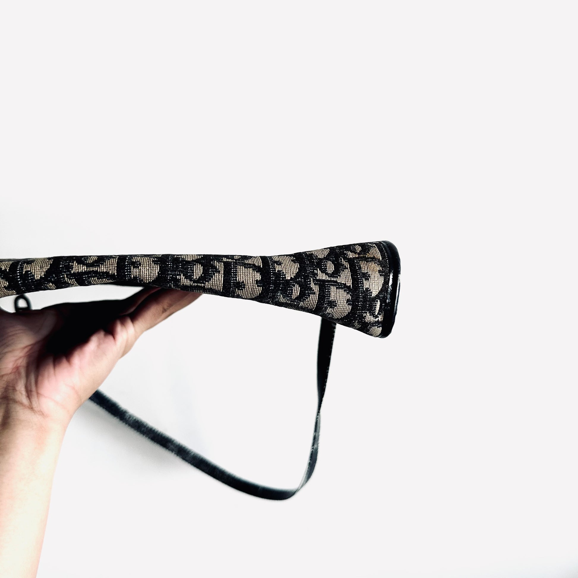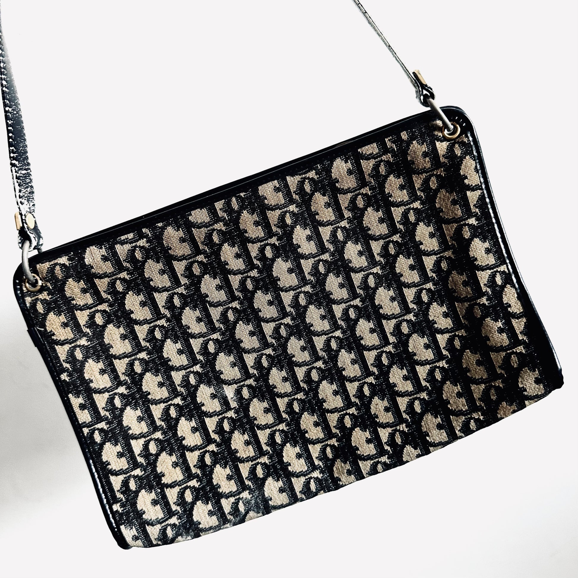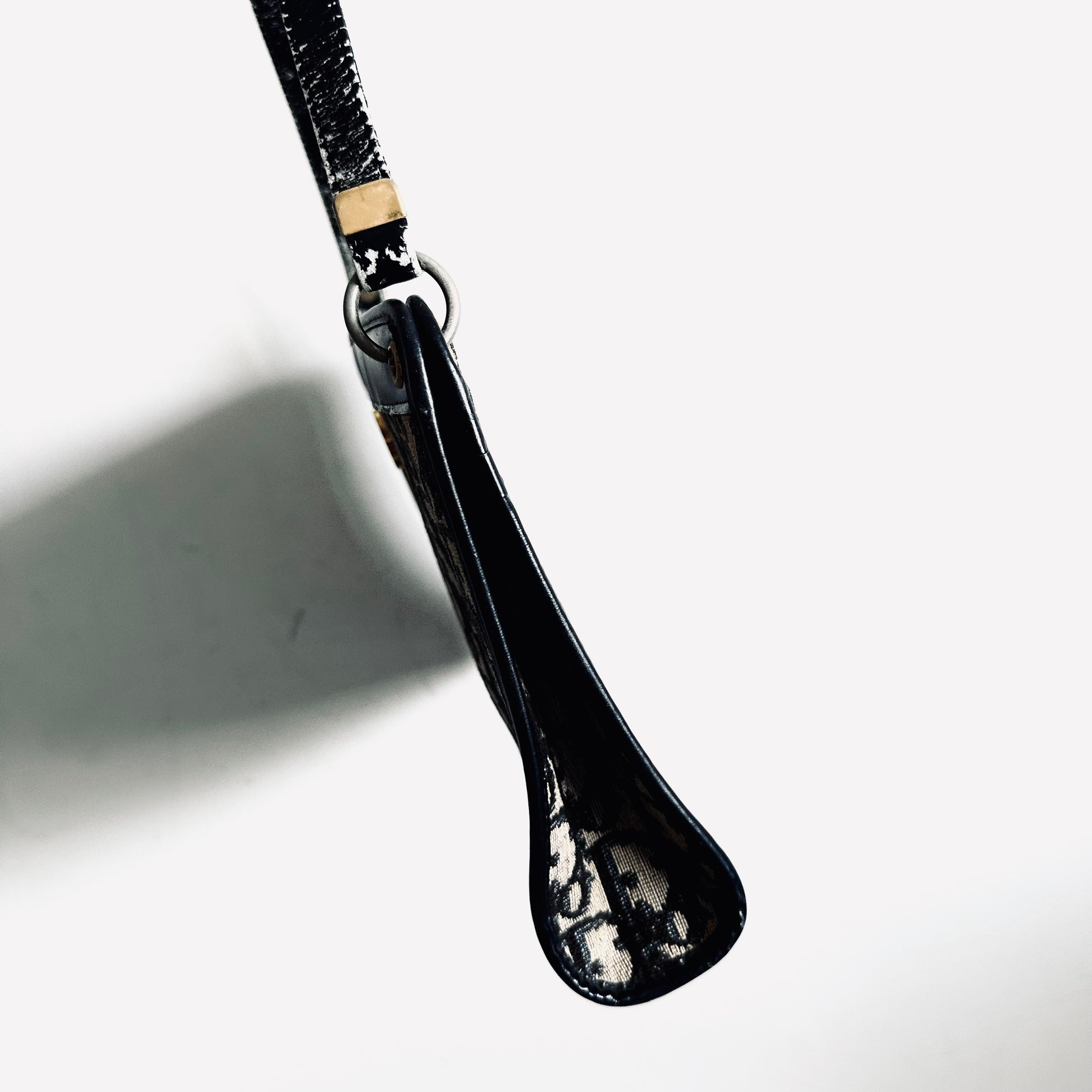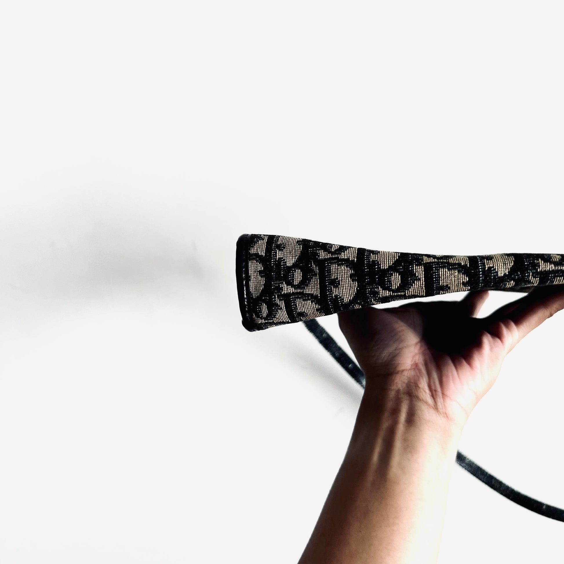 Christian Dior CD Navy Blue GHW Oblique Monogram Logo Zip Shoulder Sling Bag