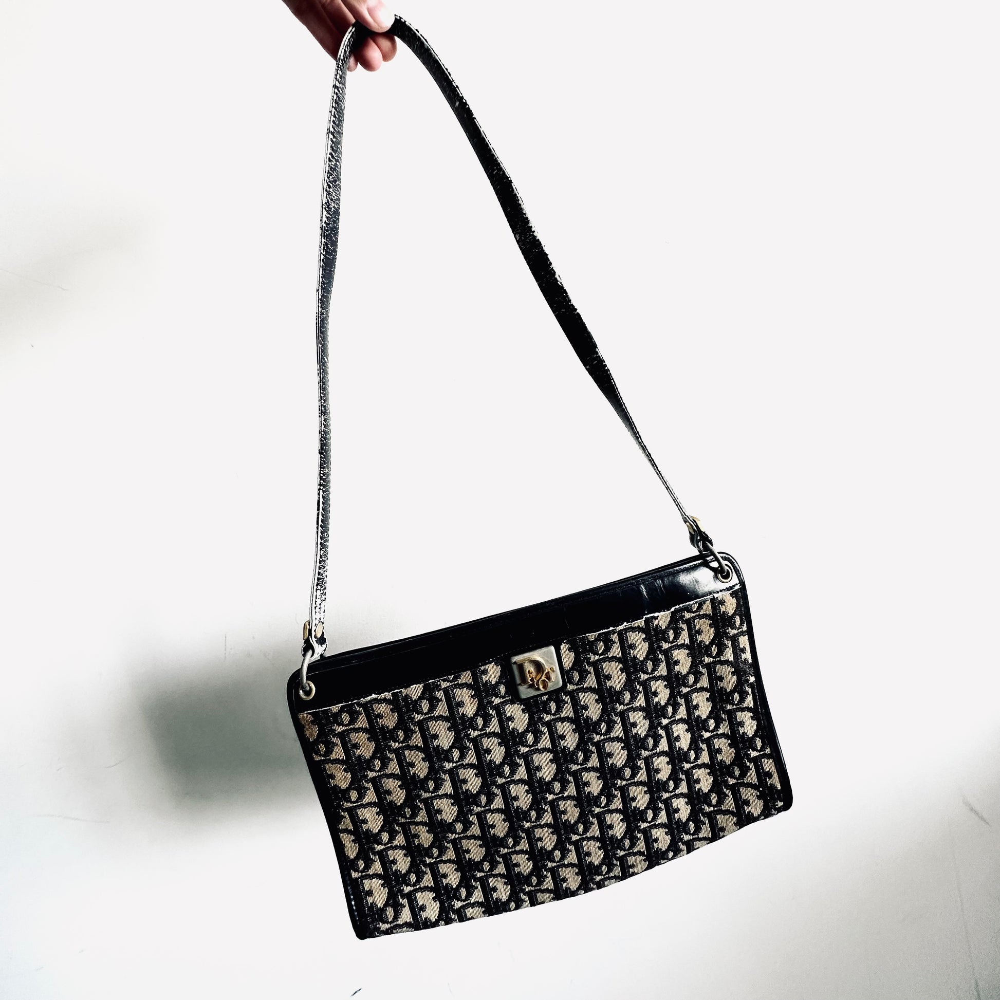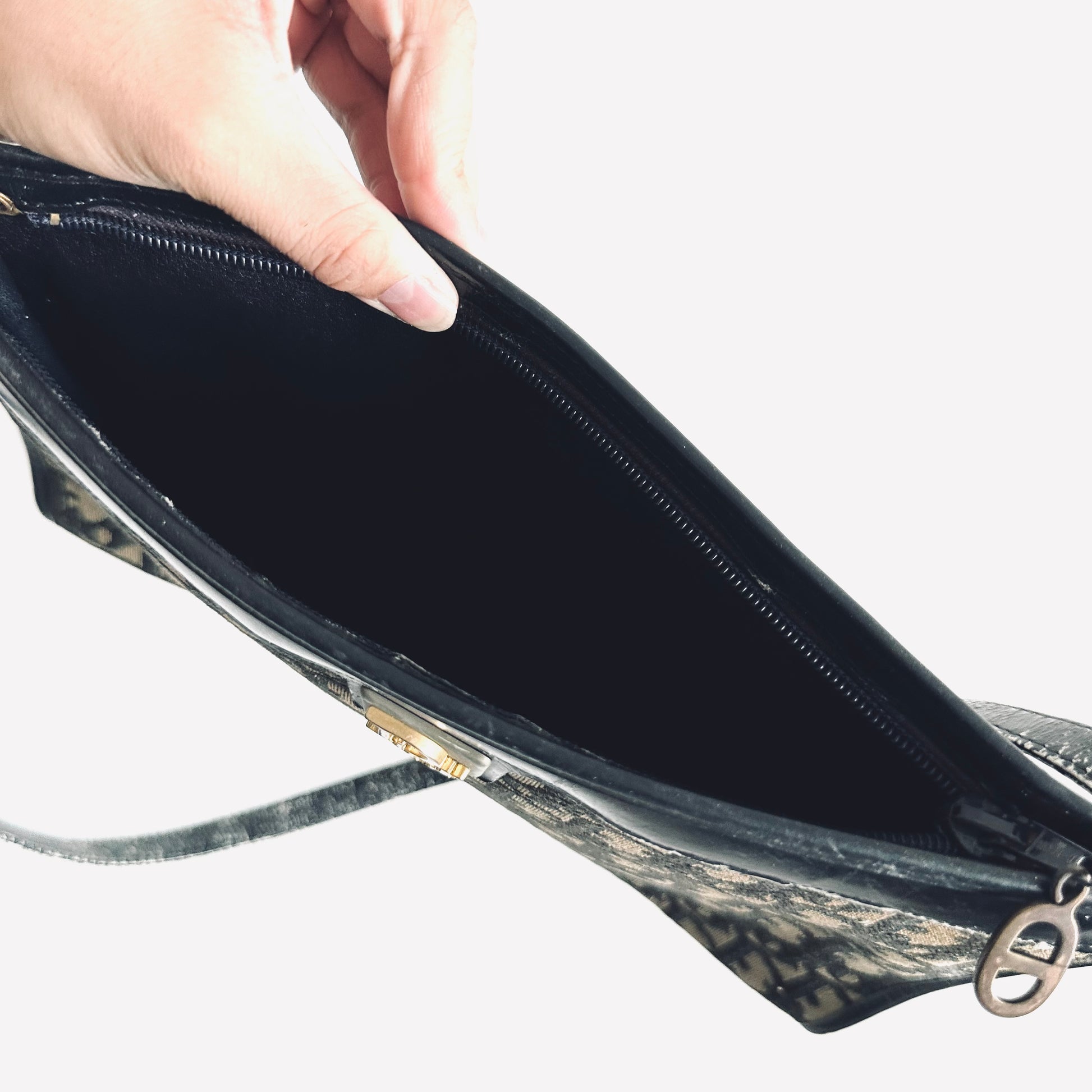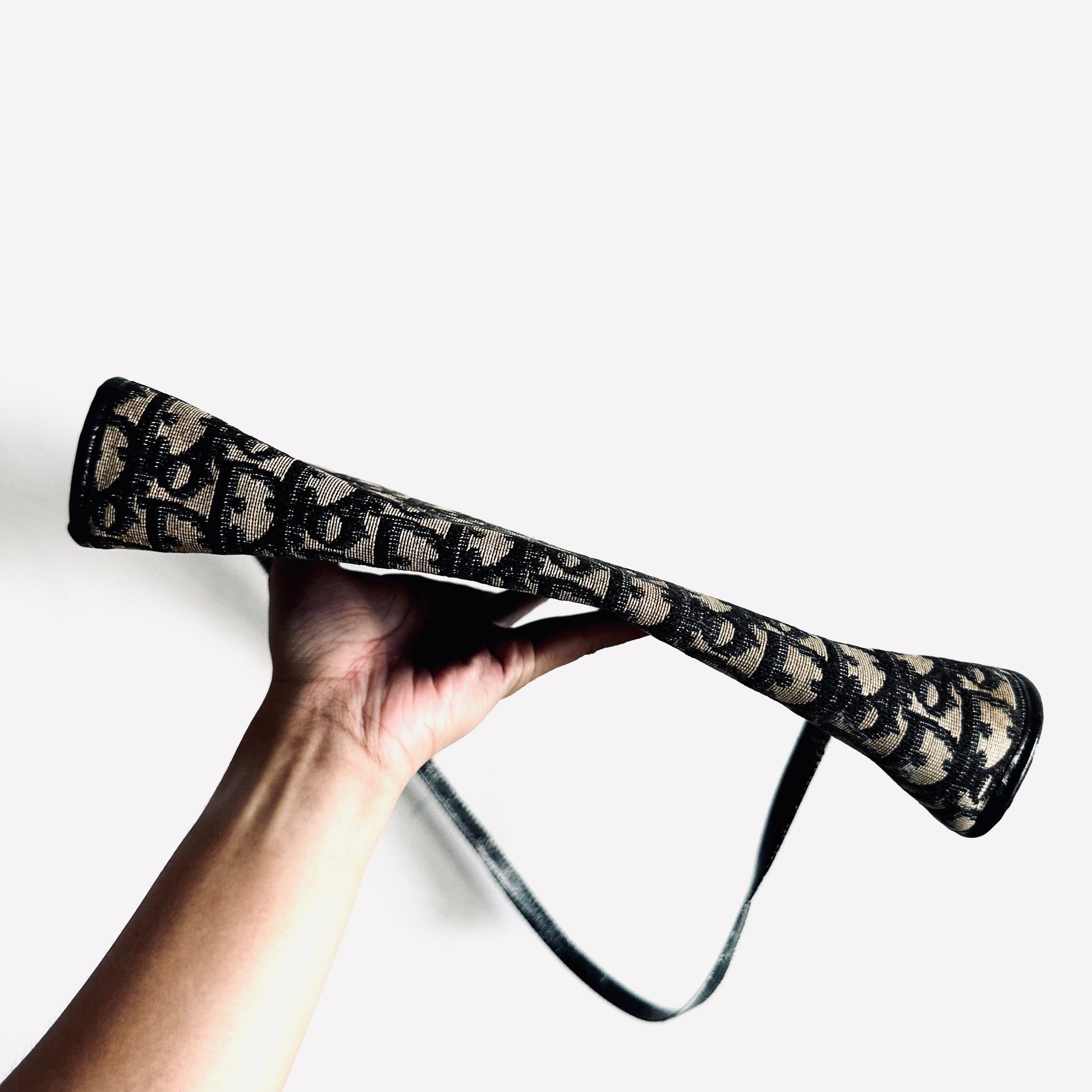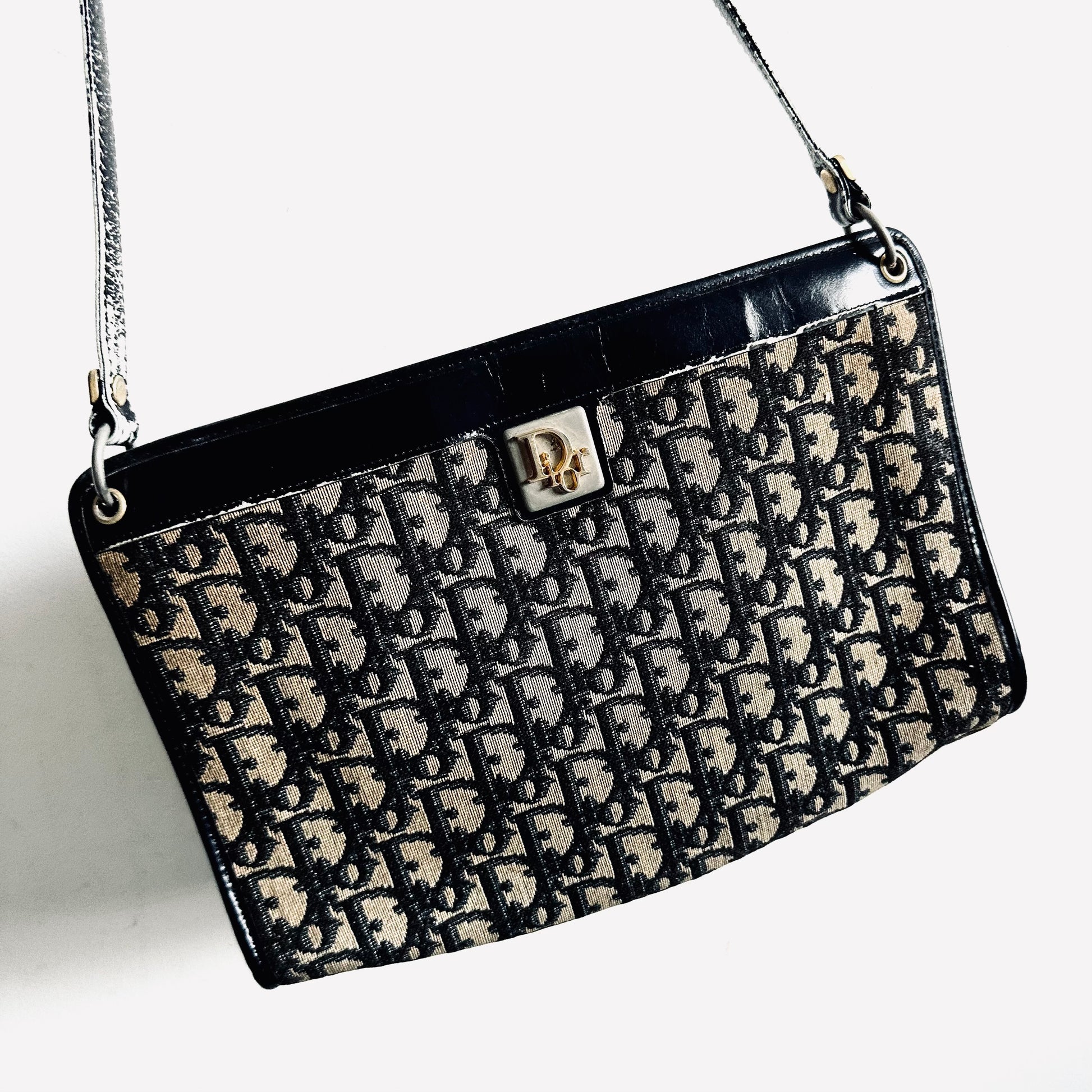 Christian Dior CD Navy Blue GHW Oblique Monogram Logo Zip Shoulder Sling Bag