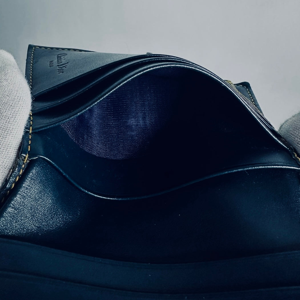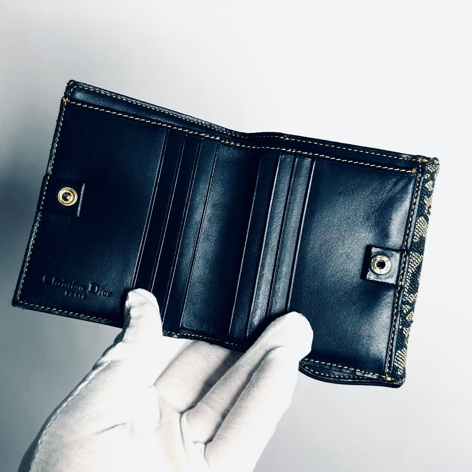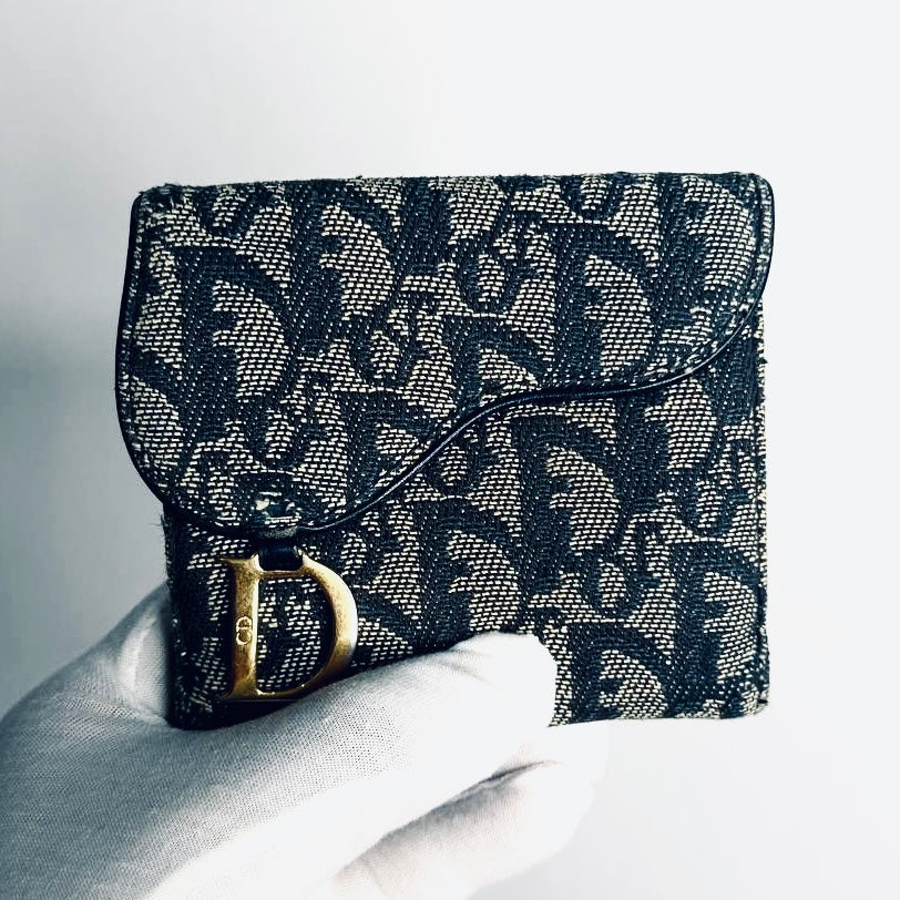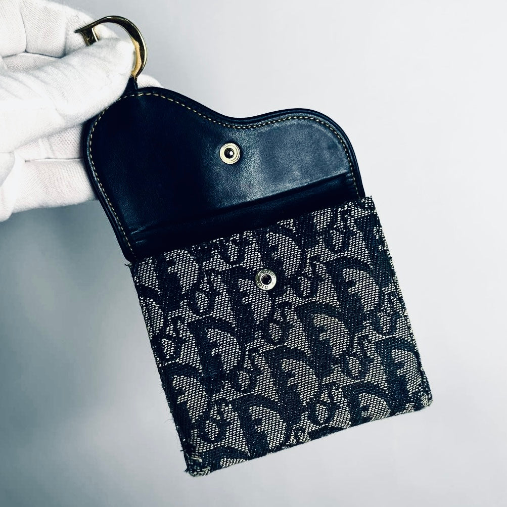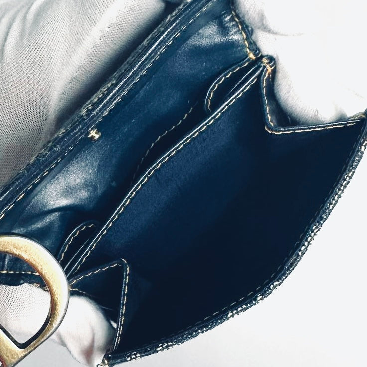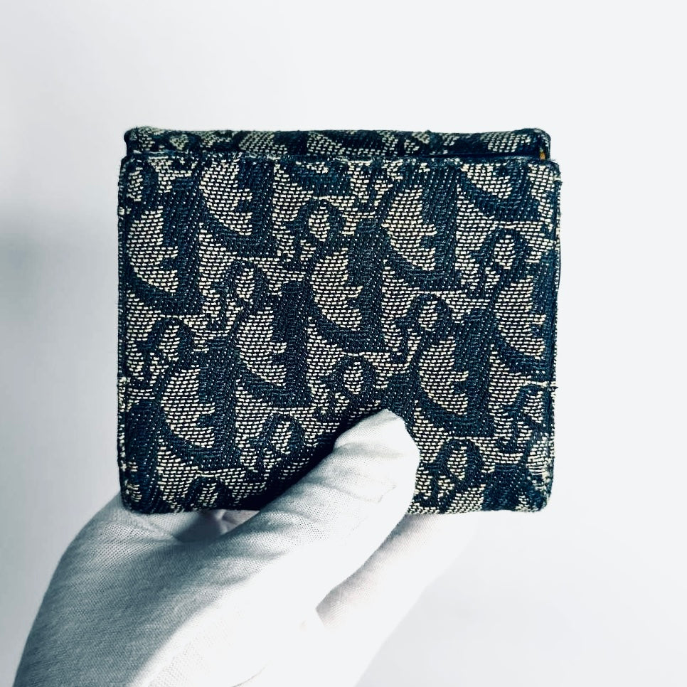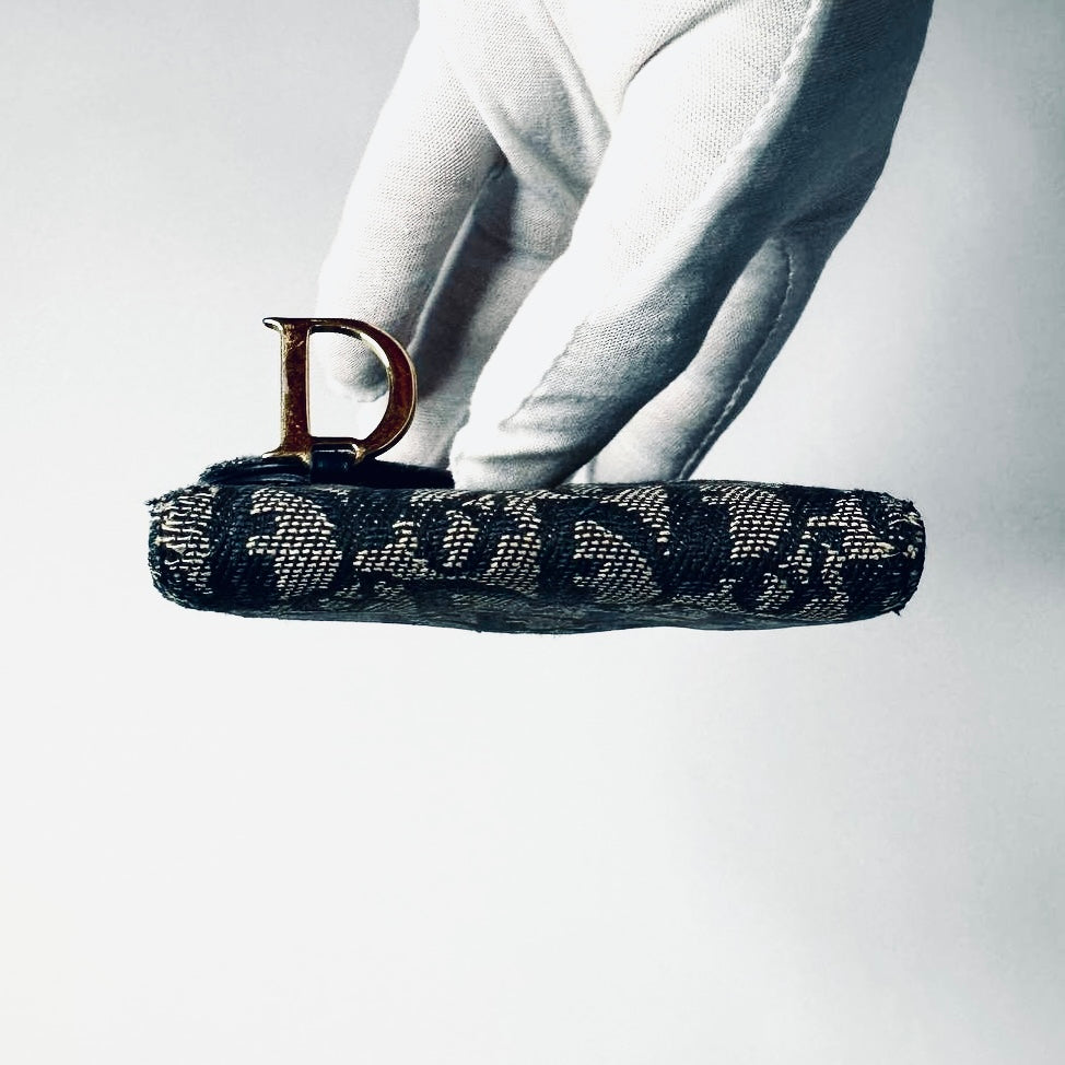 Christian Dior CD Saddle Dark Navy Blue GHW Oblique Monogram Logo Vintage Bifold Compact Wallet