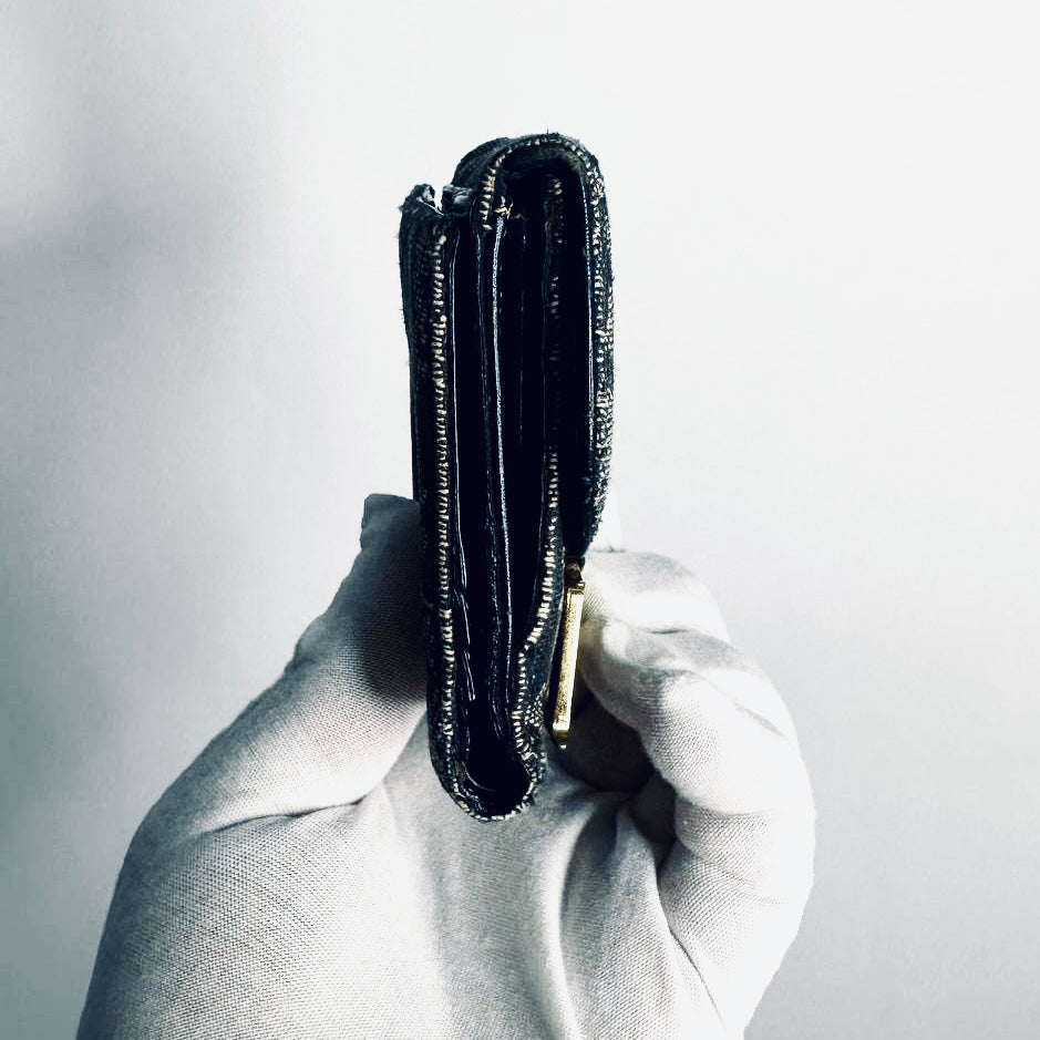 Preloved 9.4/10. This has a snap button closure divided coin purse, button closure, notes compartment, card slots and slip pockets. This measures 10.5x9x2cm.