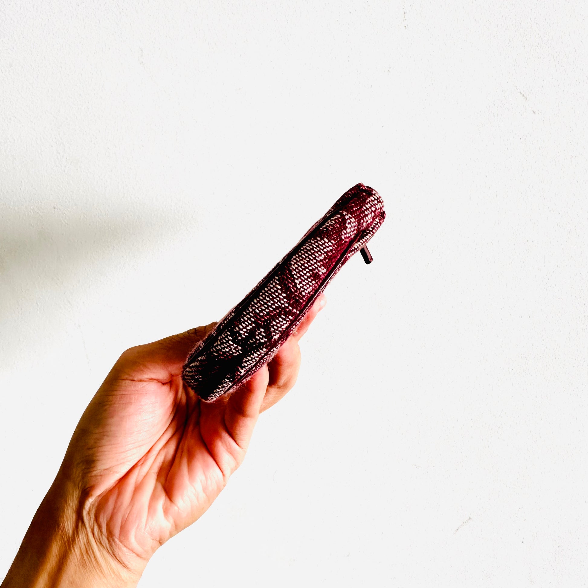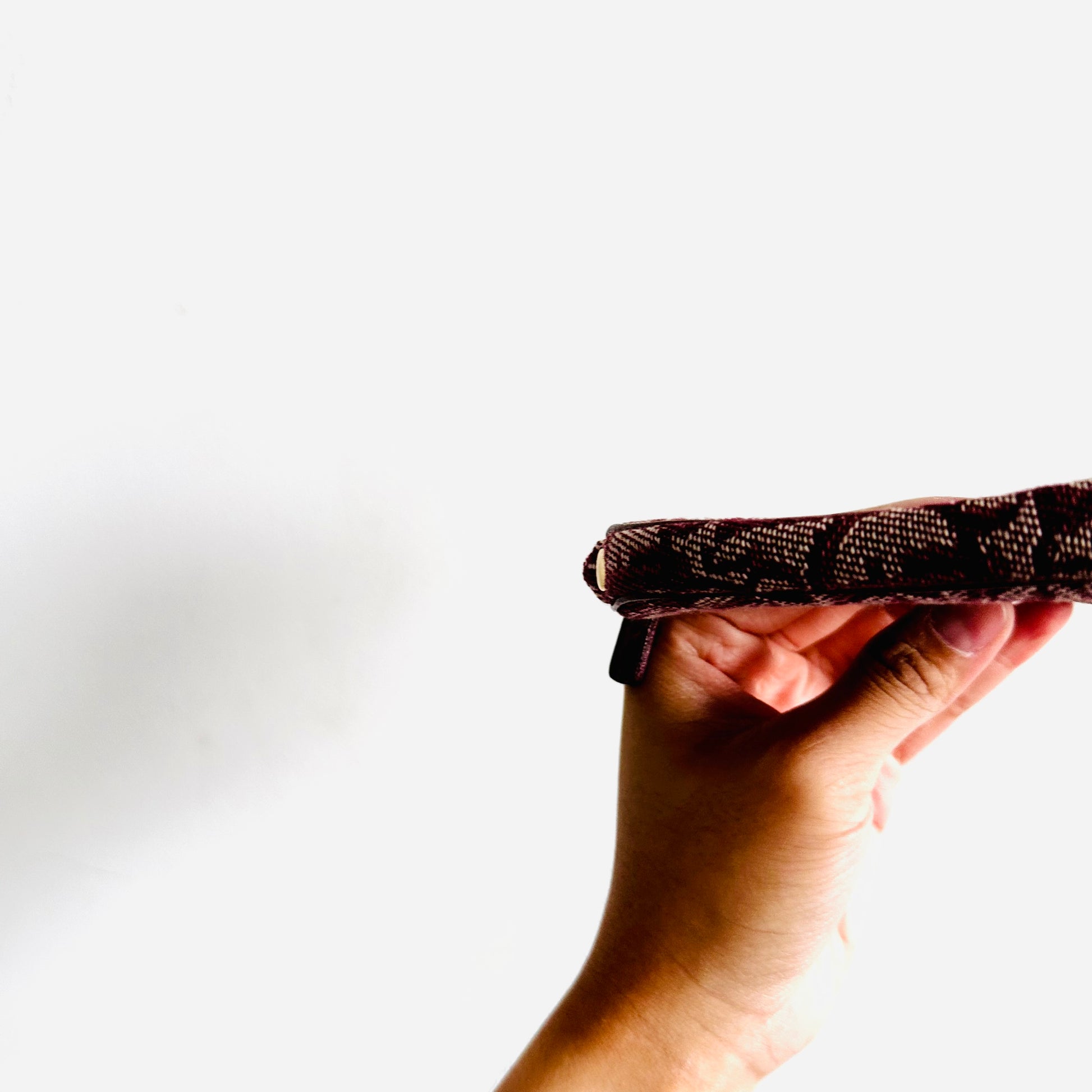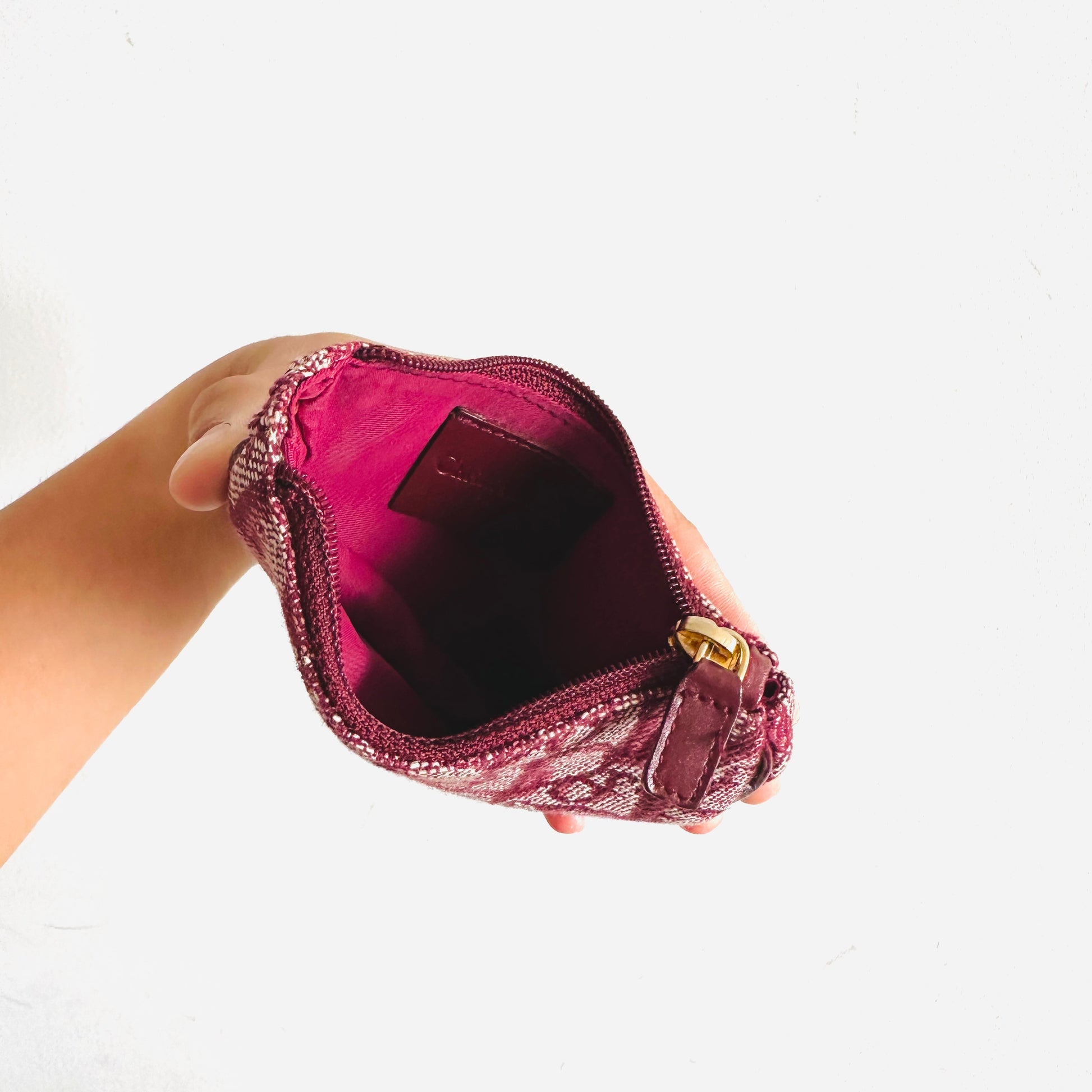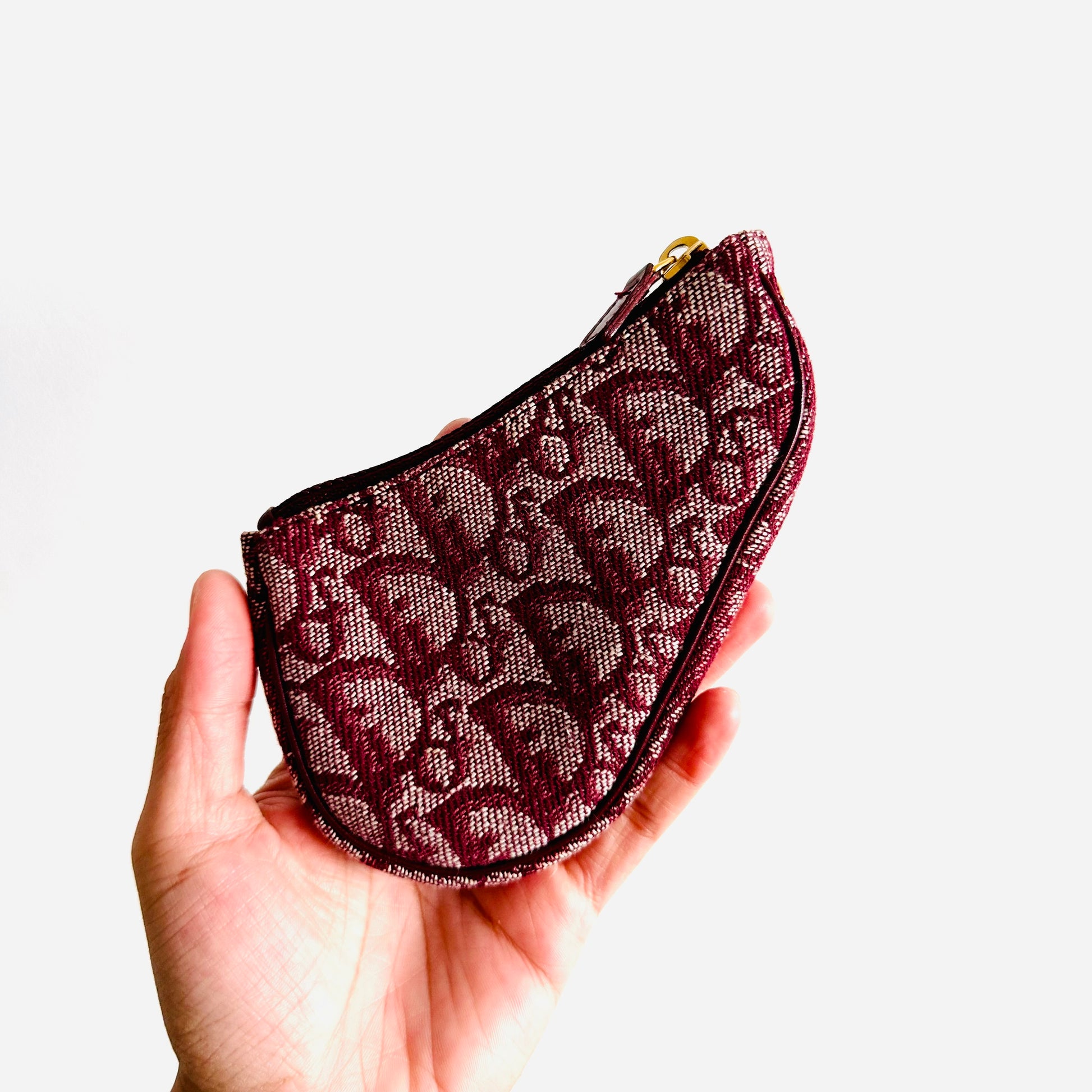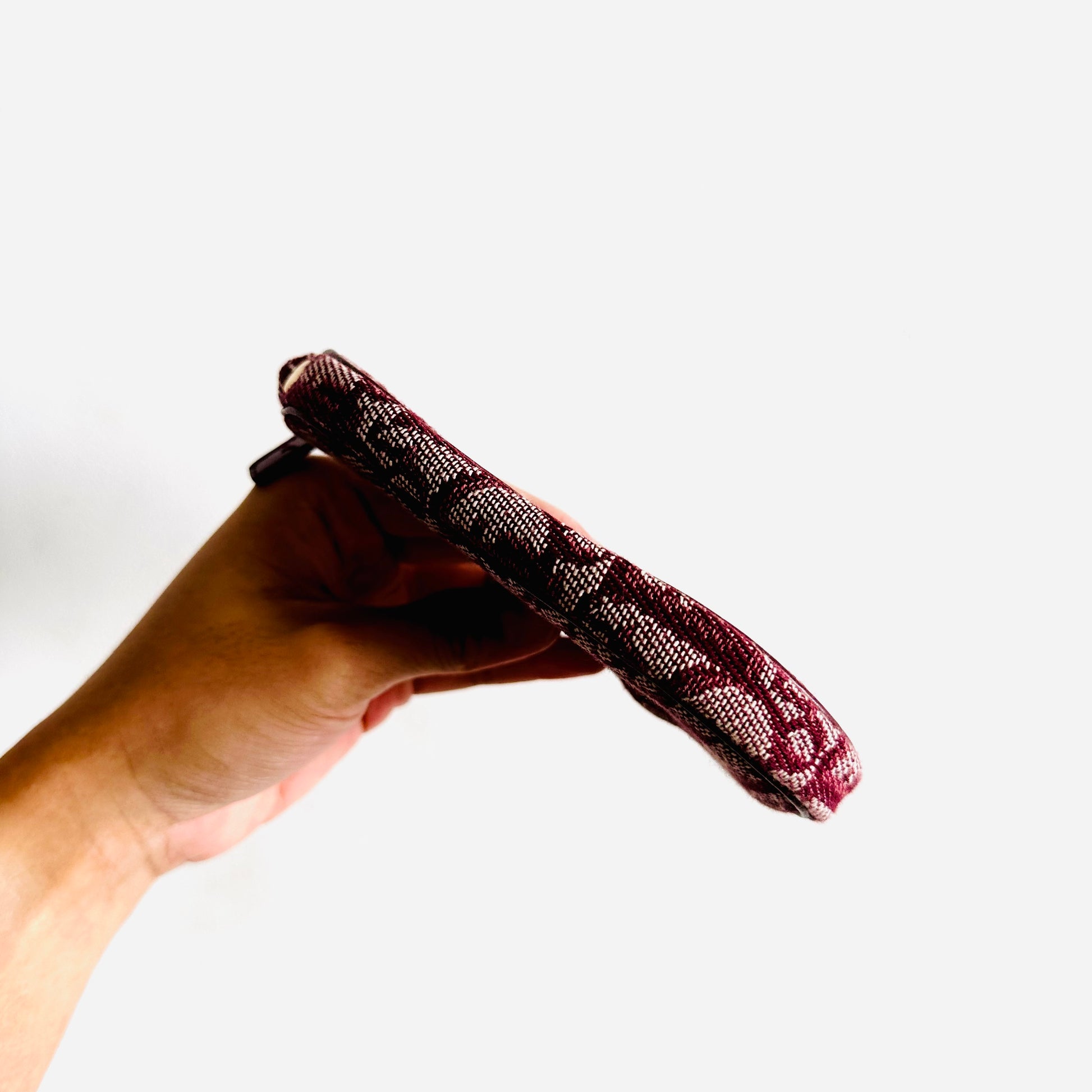Christian Dior CD Saddle Maroon GHW Oblique Monogram Logo Zip Compact Wallet Pouch Case