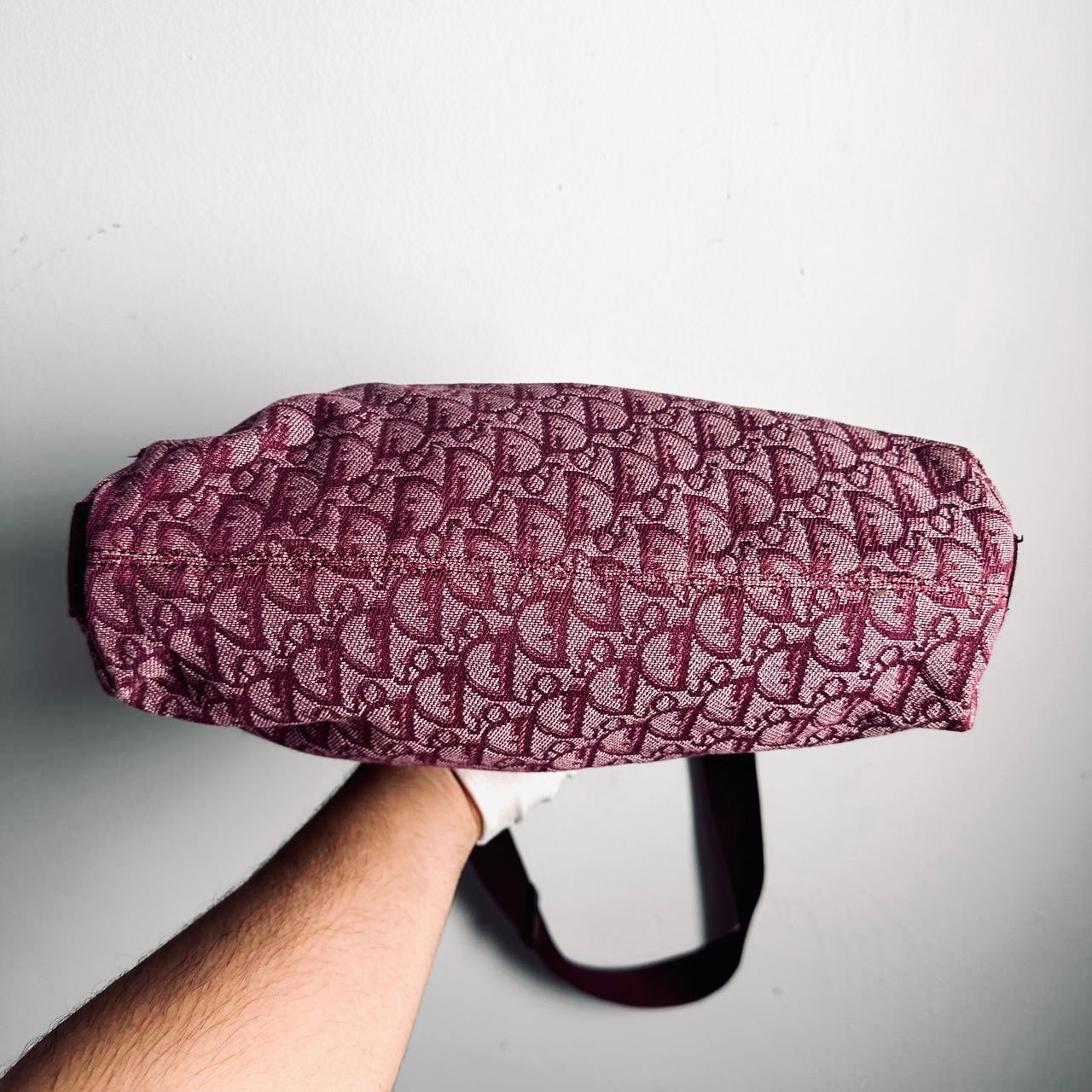 Christian Dior CD Saddle Maroon Red Oblique Monogram Logo Hobo Baguette Shoulder Sling Bag