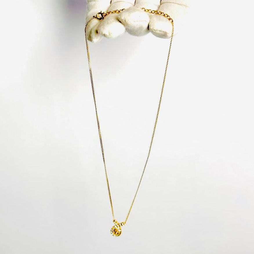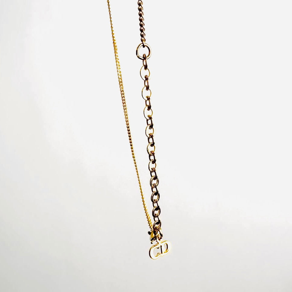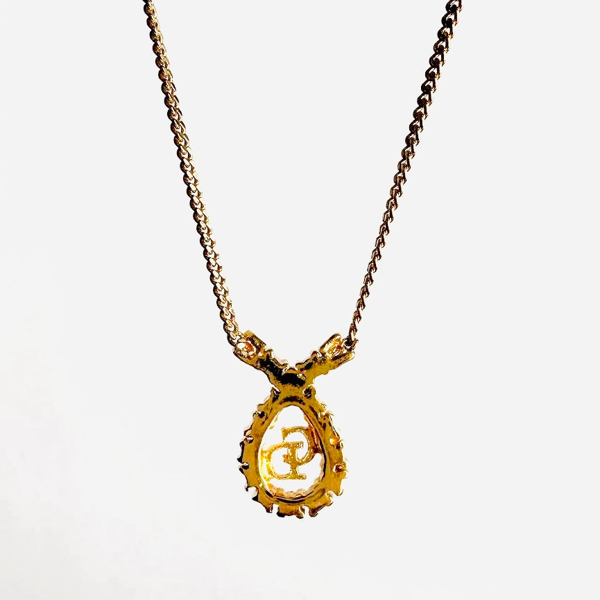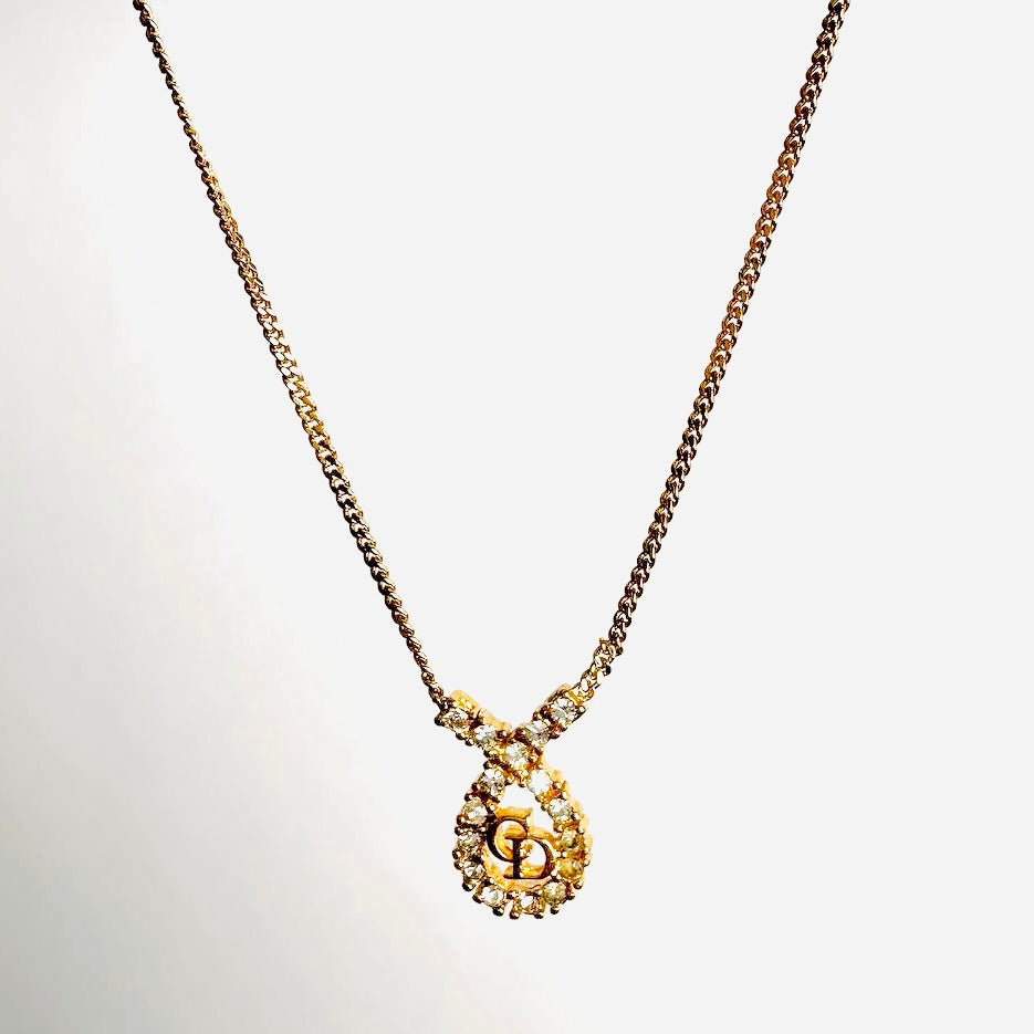 Christian Dior CD Teardrop Gold & Crystals Monogram Logo Signature Pendant Necklace