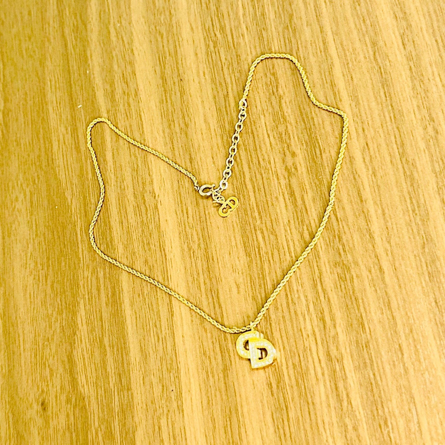 Christian Dior Monogram Logo CD Giant Gold & Crystals Necklace