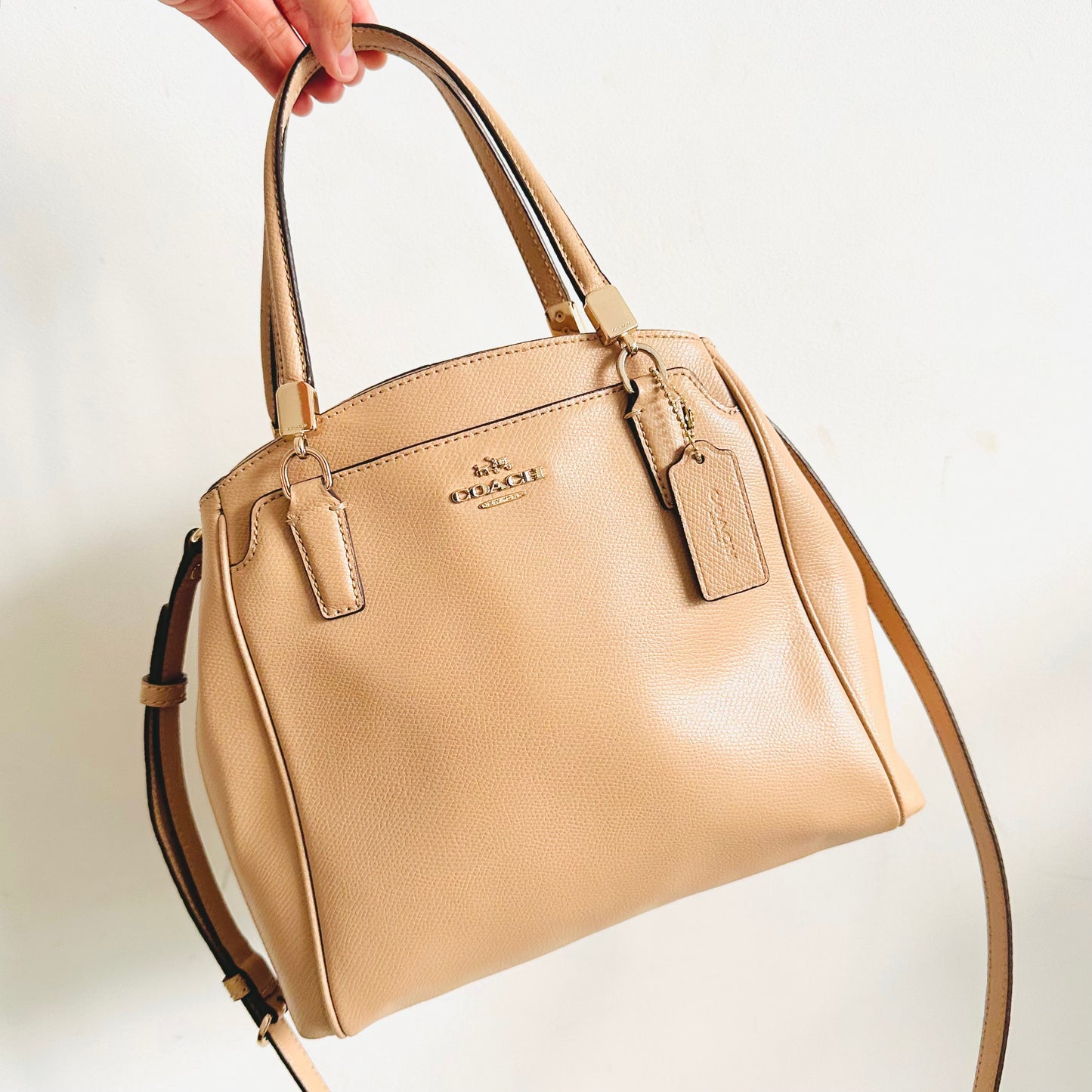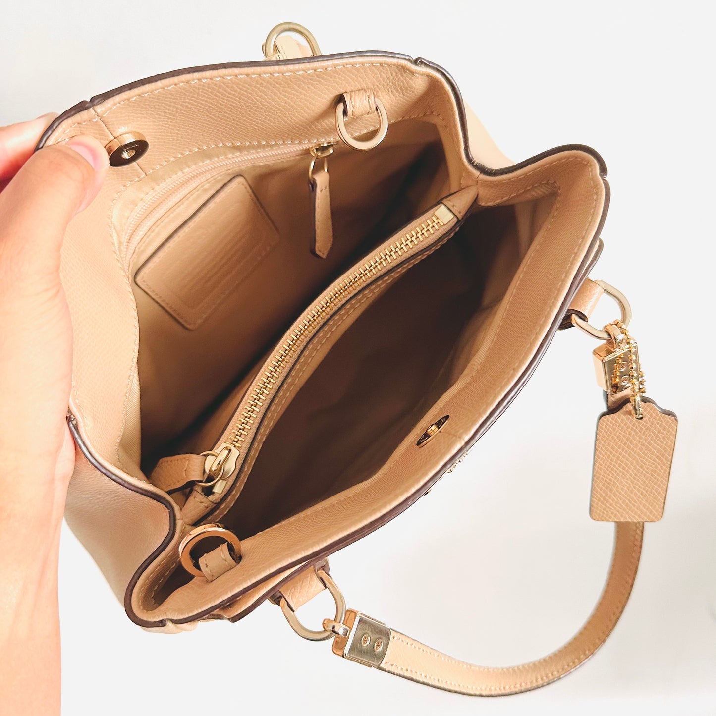 Coach Blush Pink Beige Minetta Satchel Carryall 2-Way Top Handle Shoulder Sling Crossgrain Leather Tote Bag