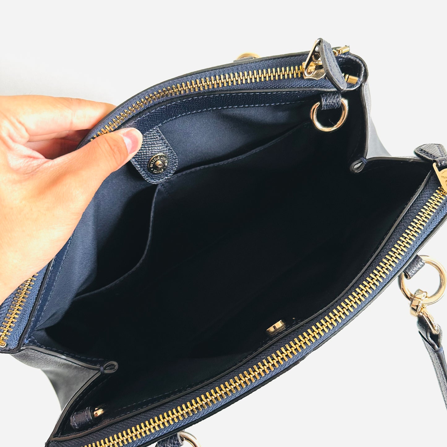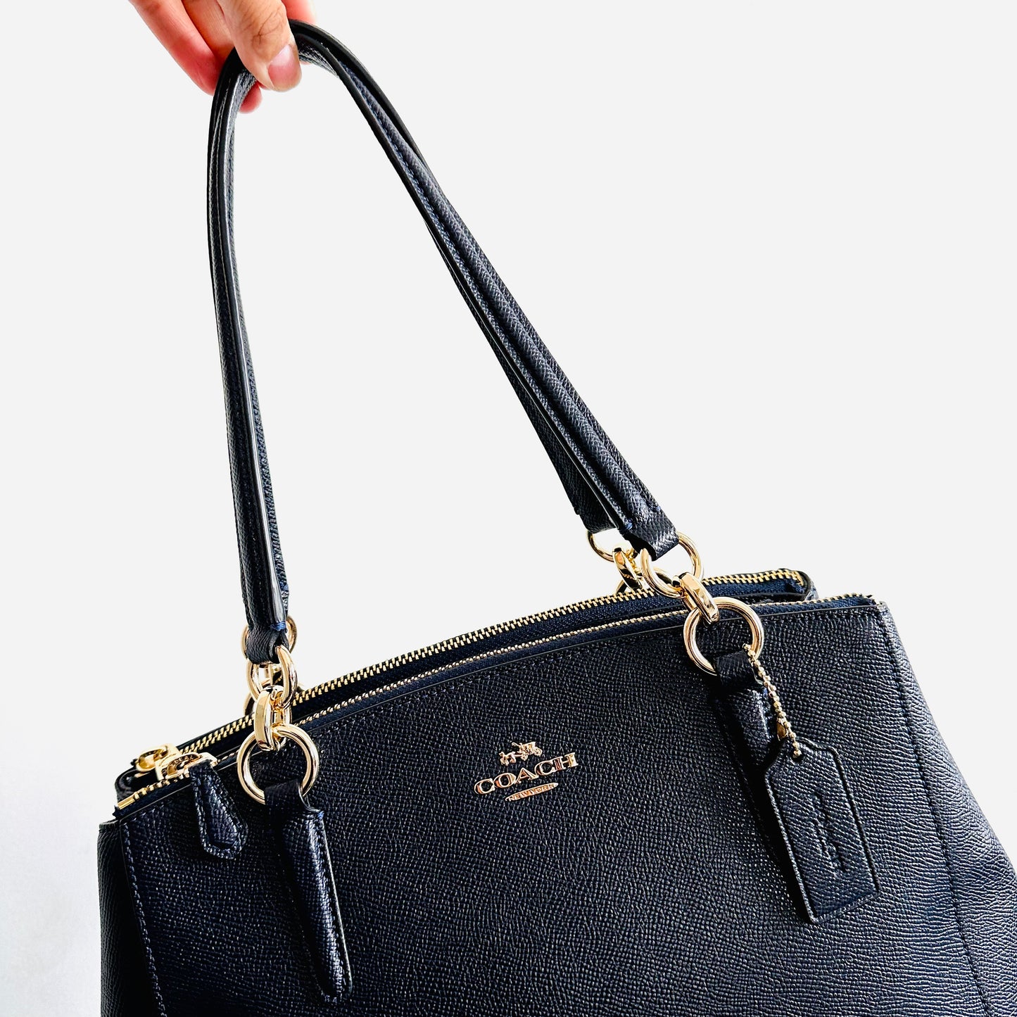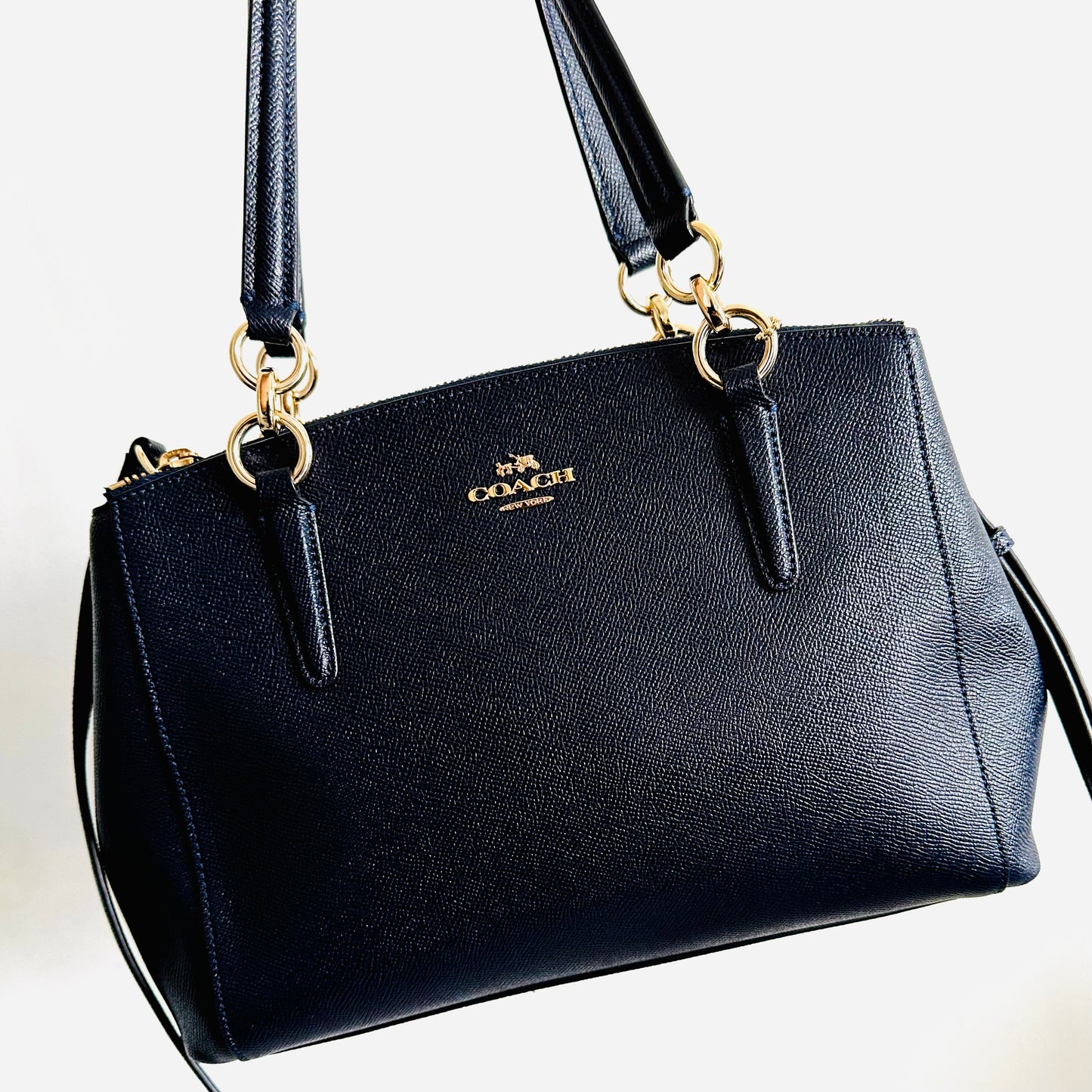 Coach Midnight Navy Blue Christie Satchel Carryall 2-Way Top Handle Shoulder Sling Crossgrain Leather Tote Bag